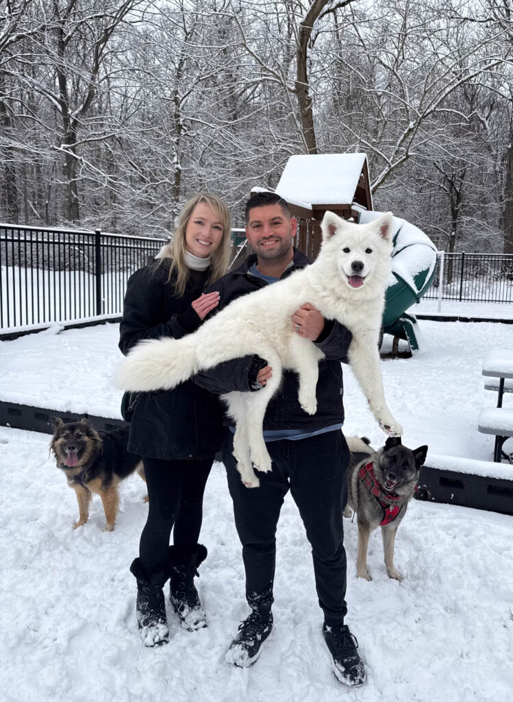 These days our house is full of puppy energy, snowy walks, and lots of peanut butter-filled Kong toys. Life with three dogs is definitely busy, but it’s also incredibly fun. Watching Rocky, Maya, and Callie grow together has been one of the happiest experiences.As someone who spends so much time photographing love stories across New Jersey, it feels extra special to have our own little family story unfolding at home too.