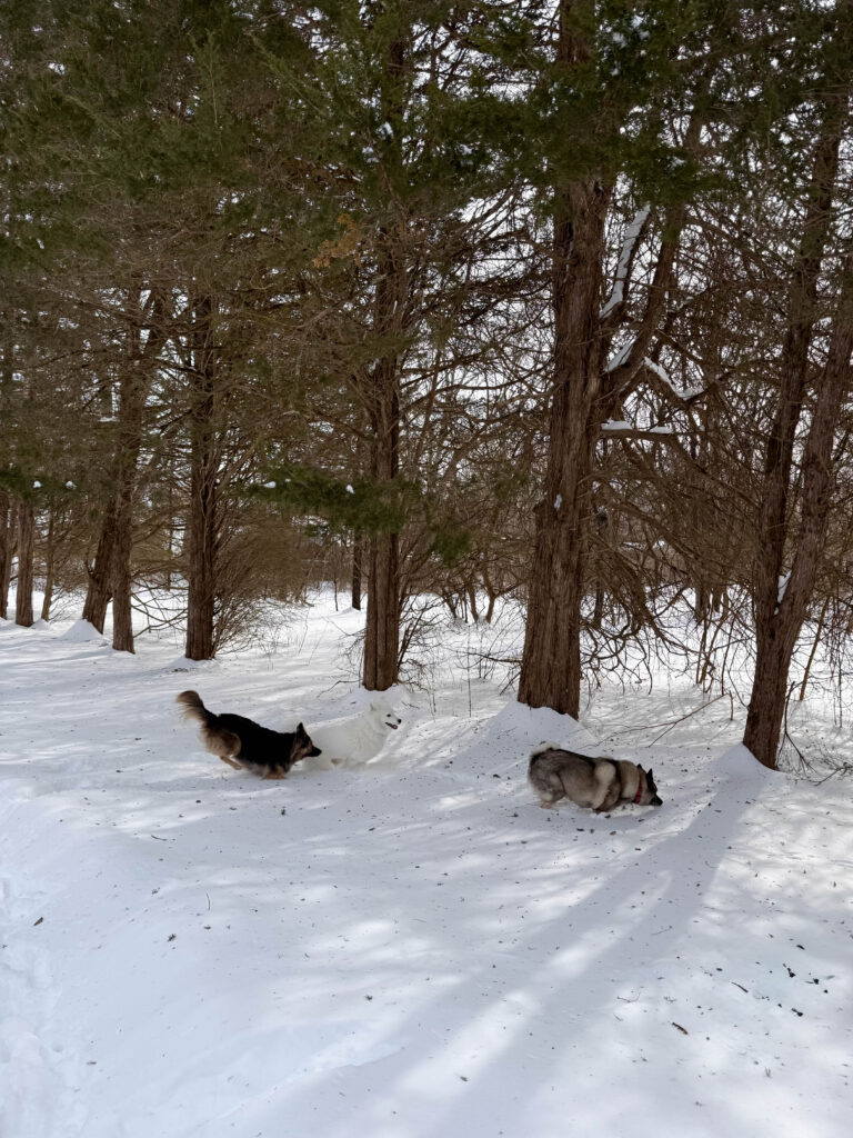 The dogs ran and played in the foster’s fenced yard like they had known each other forever. Watching them zoom around in the snow made us so happy. The moment felt easy and natural. That day, we brought Callie home and officially started our life together.
