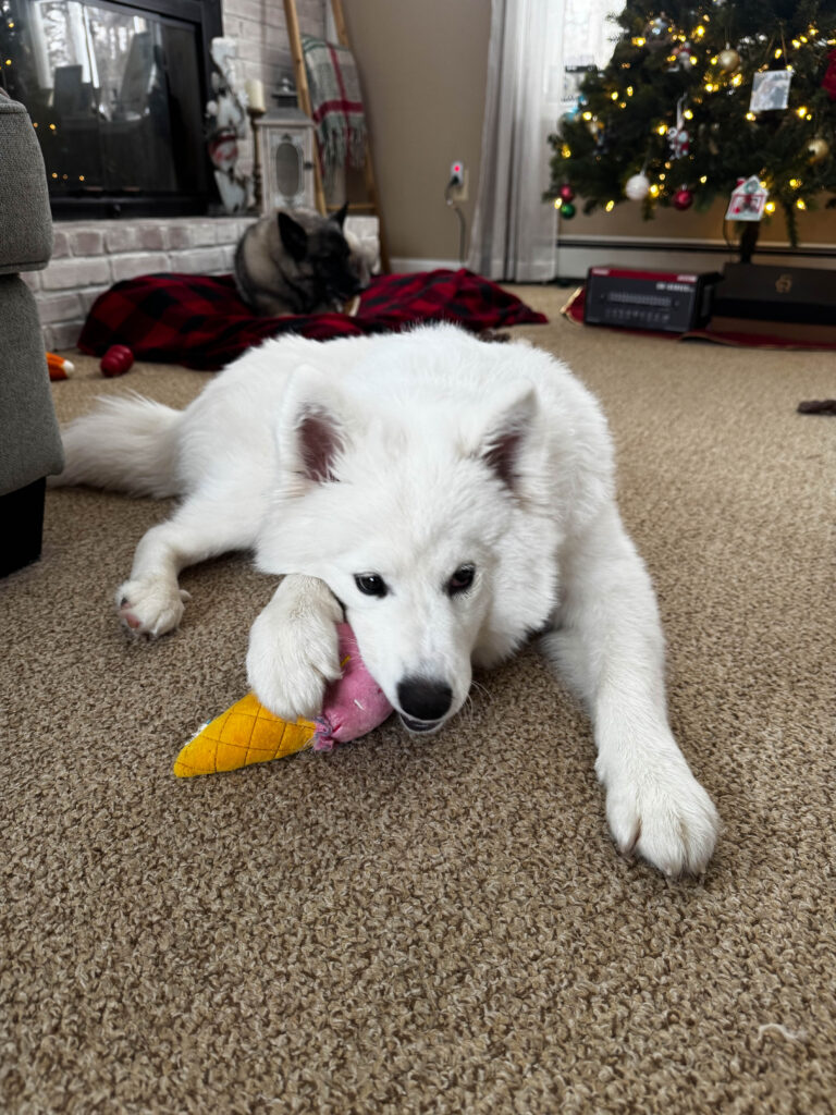 Rocky, of course, is still his goofy self. He enjoys the fun but also appreciates his space and quiet time. Don’t worry though he and Maya are still getting plenty of love and snuggles, even though a lot of our energy has gone toward caring for a puppy.