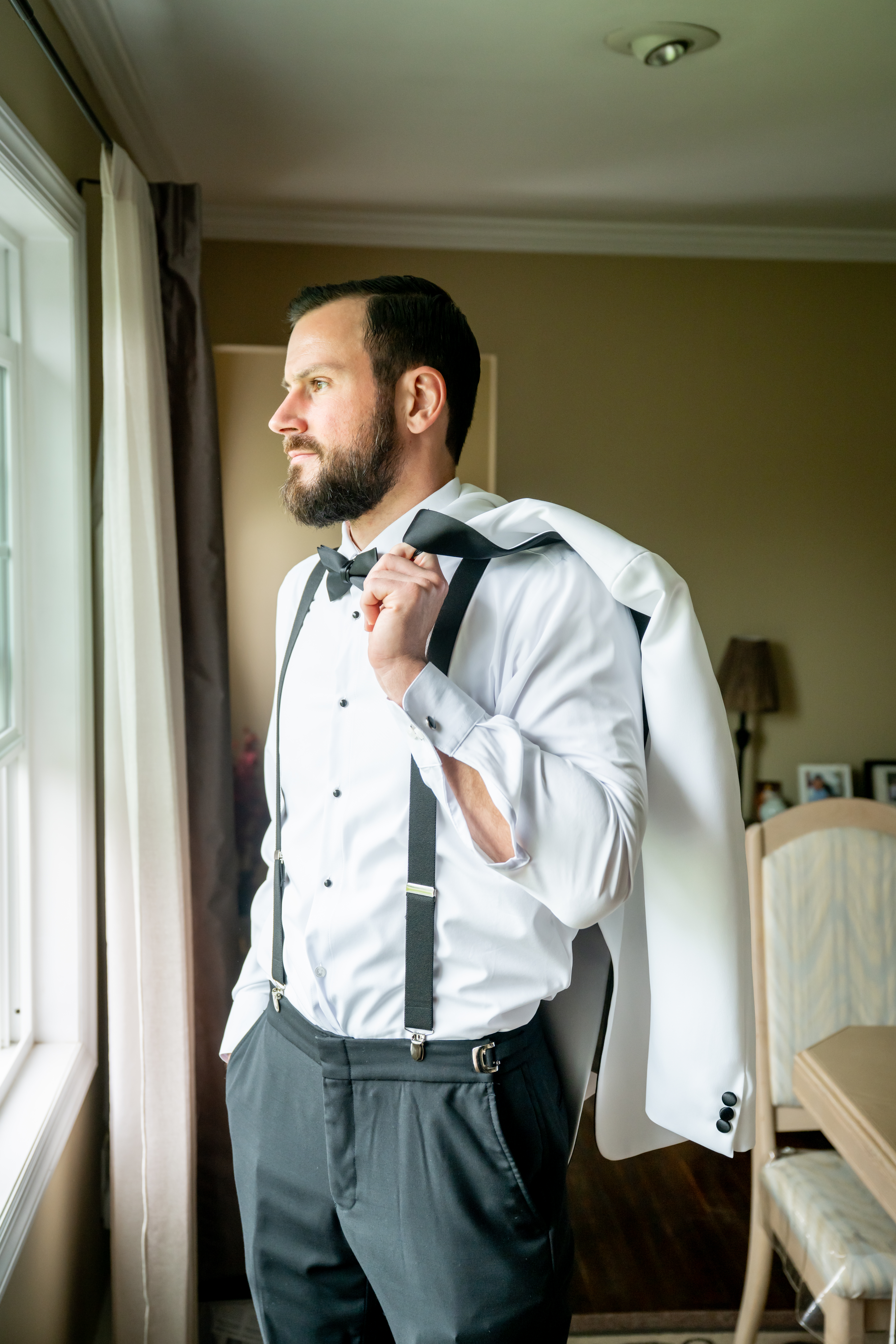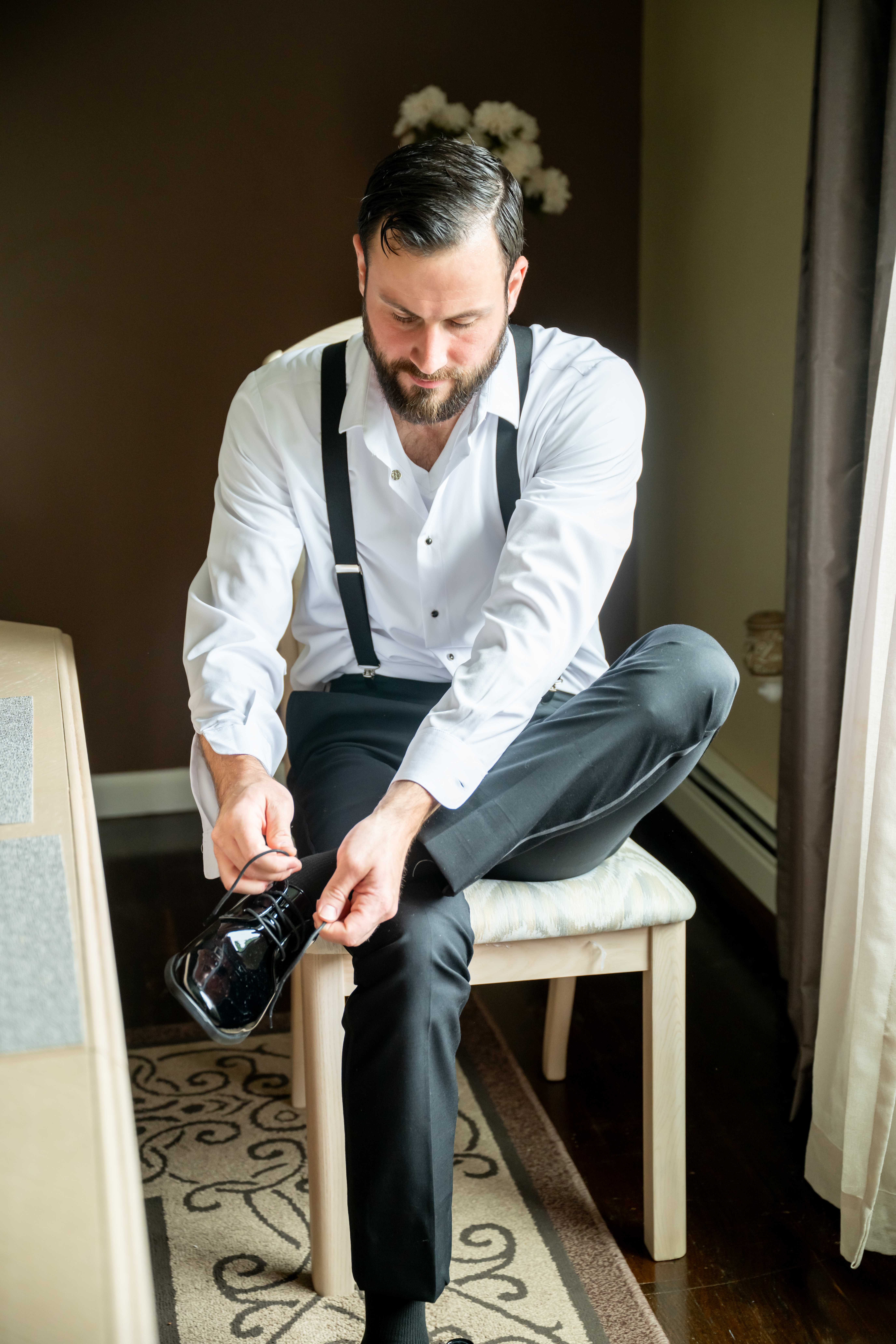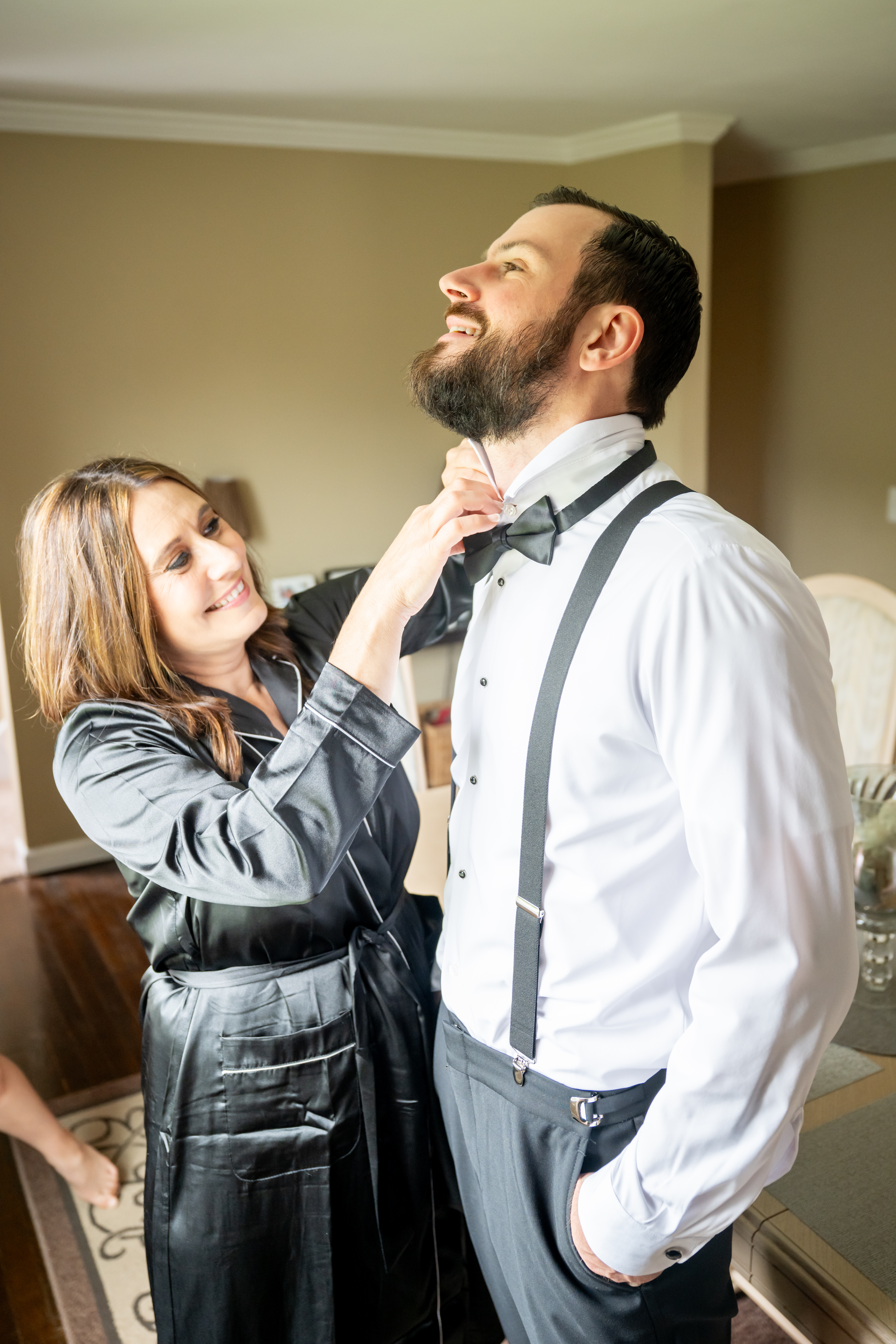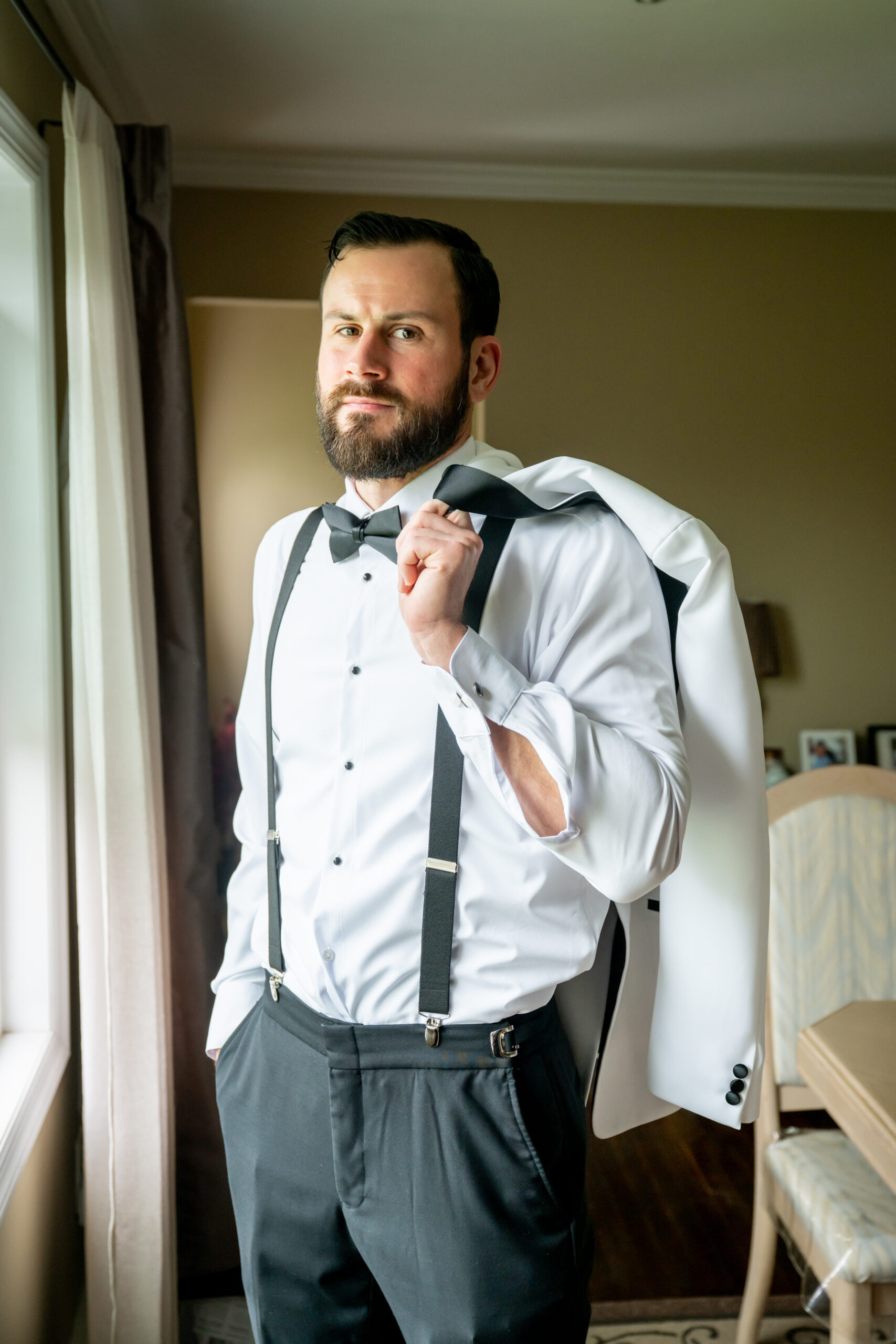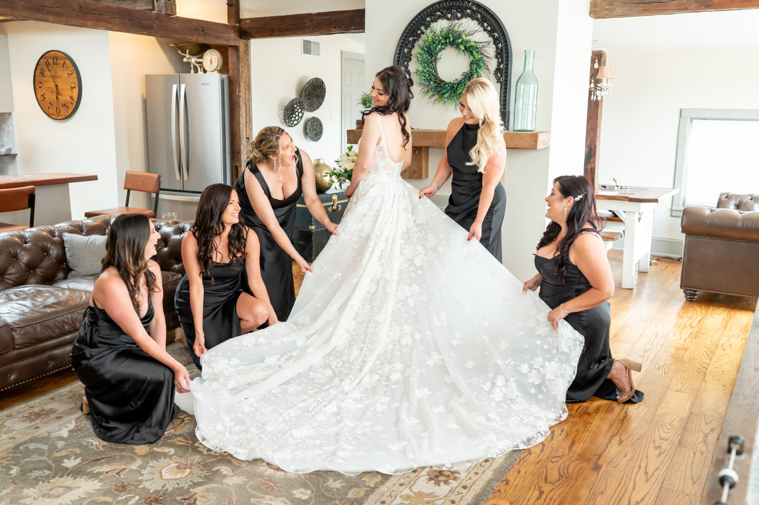 The day began where history meets romance. Inside the beautiful bridal suite at David’s Country Inn. The atmosphere was filled with joy and laughter as Jess and her bridesmaids, all in sleek matching black robes, prepared for the day ahead. For me, this wedding was a little extra special, Jess and I go way back to high school days, and many of her bridesmaids were familiar faces I hadn’t seen in years. Even the makeup artist was someone I knew from those days, it felt like a joyful reunion wrapped in satin and excitement.