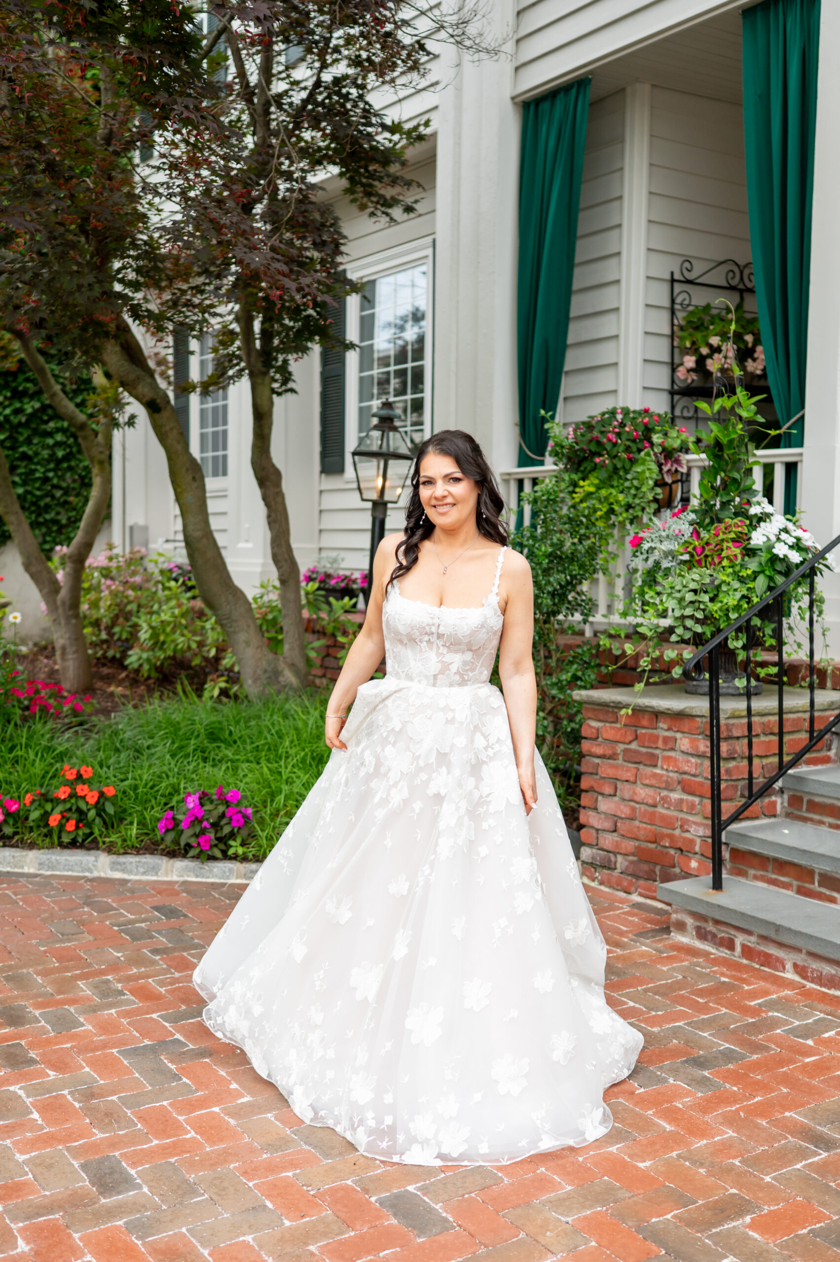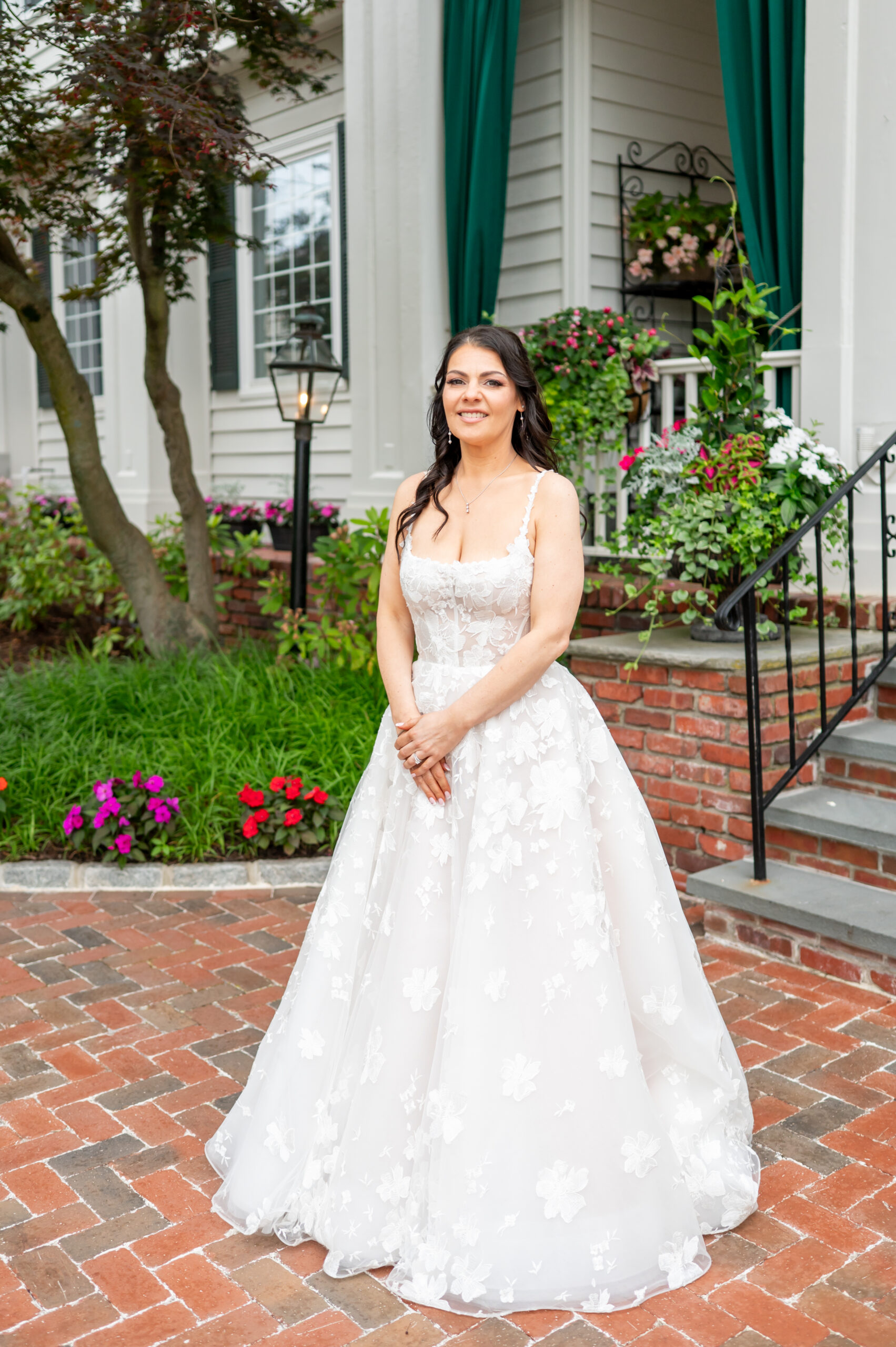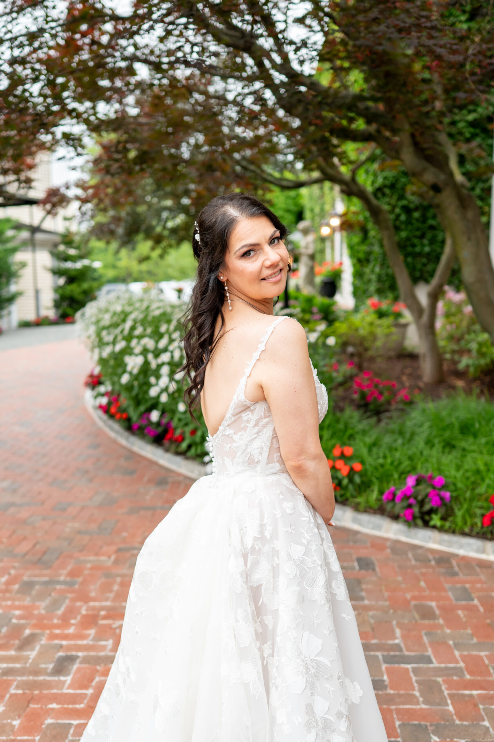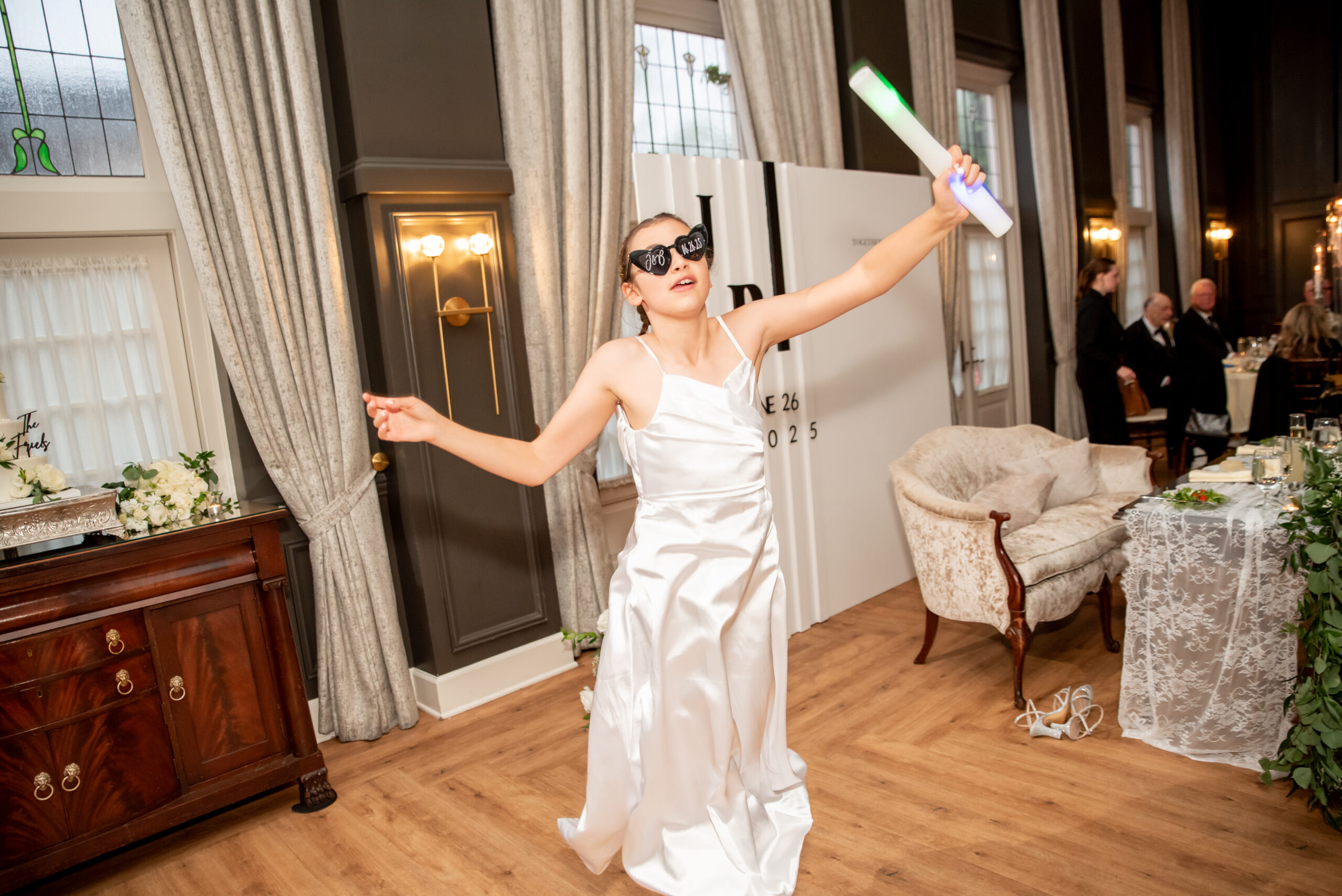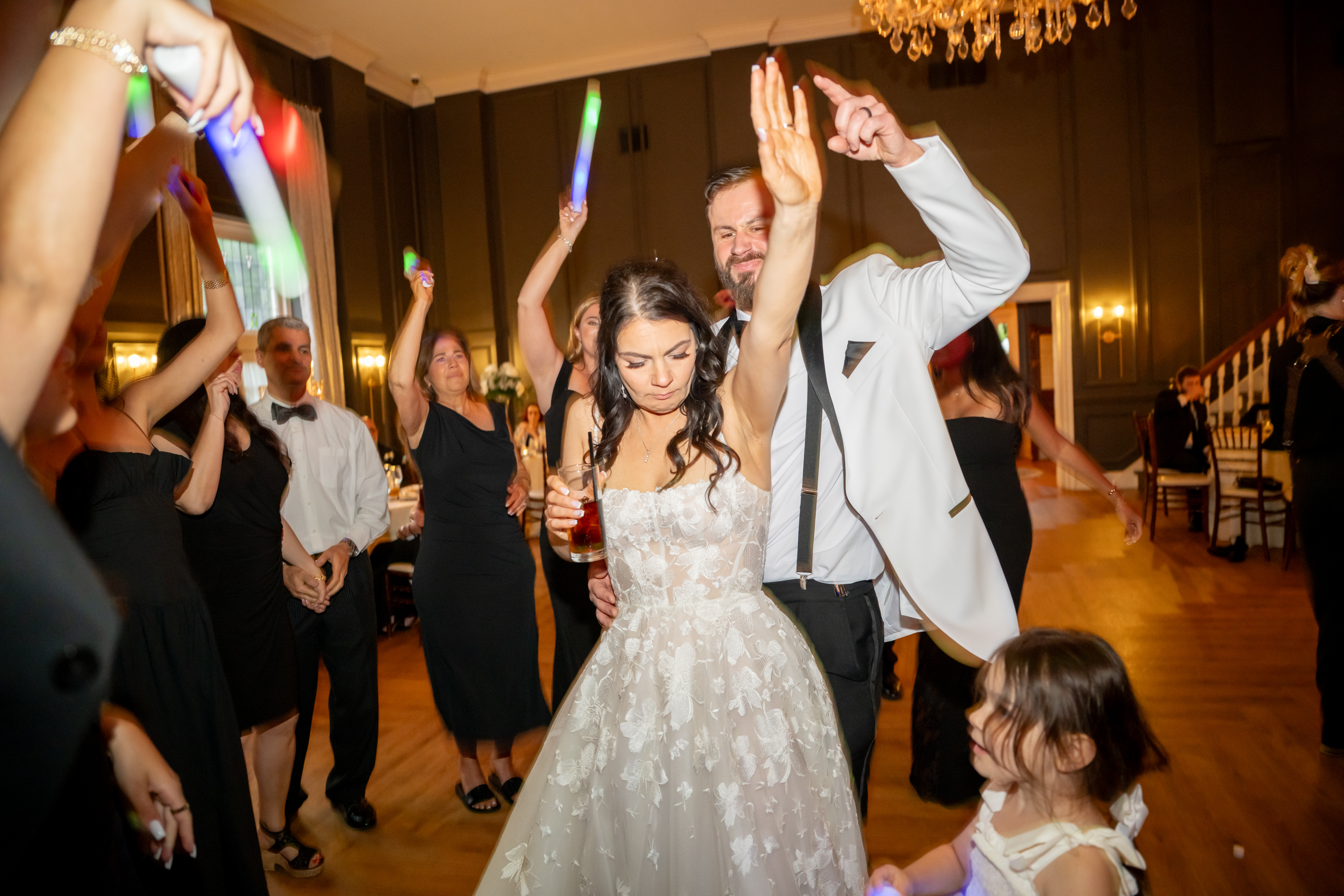 Their first look took place in the ceremony space, and it was as emotional as it was beautiful. Brian’s face said it all. Tears welled up as he saw Jess, and in that quiet moment, the world melted away. Not long after, their daughter Khloe joined us, running and playing nearby as we explored the grounds for portraits. The ivy-covered walls, black doors, and Tiffany glass details added to the charm of this incredible venue, while the surrounding gardens brought softness and light.