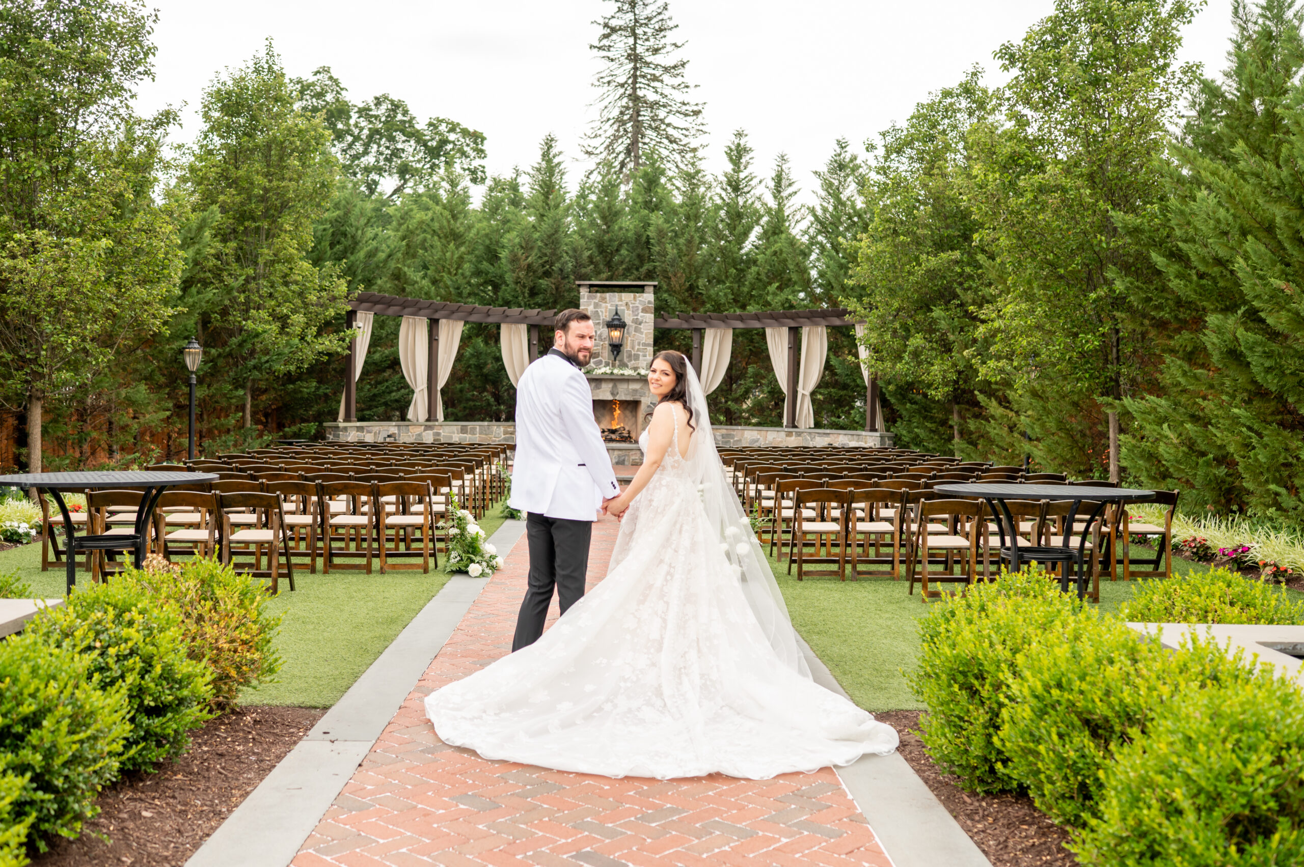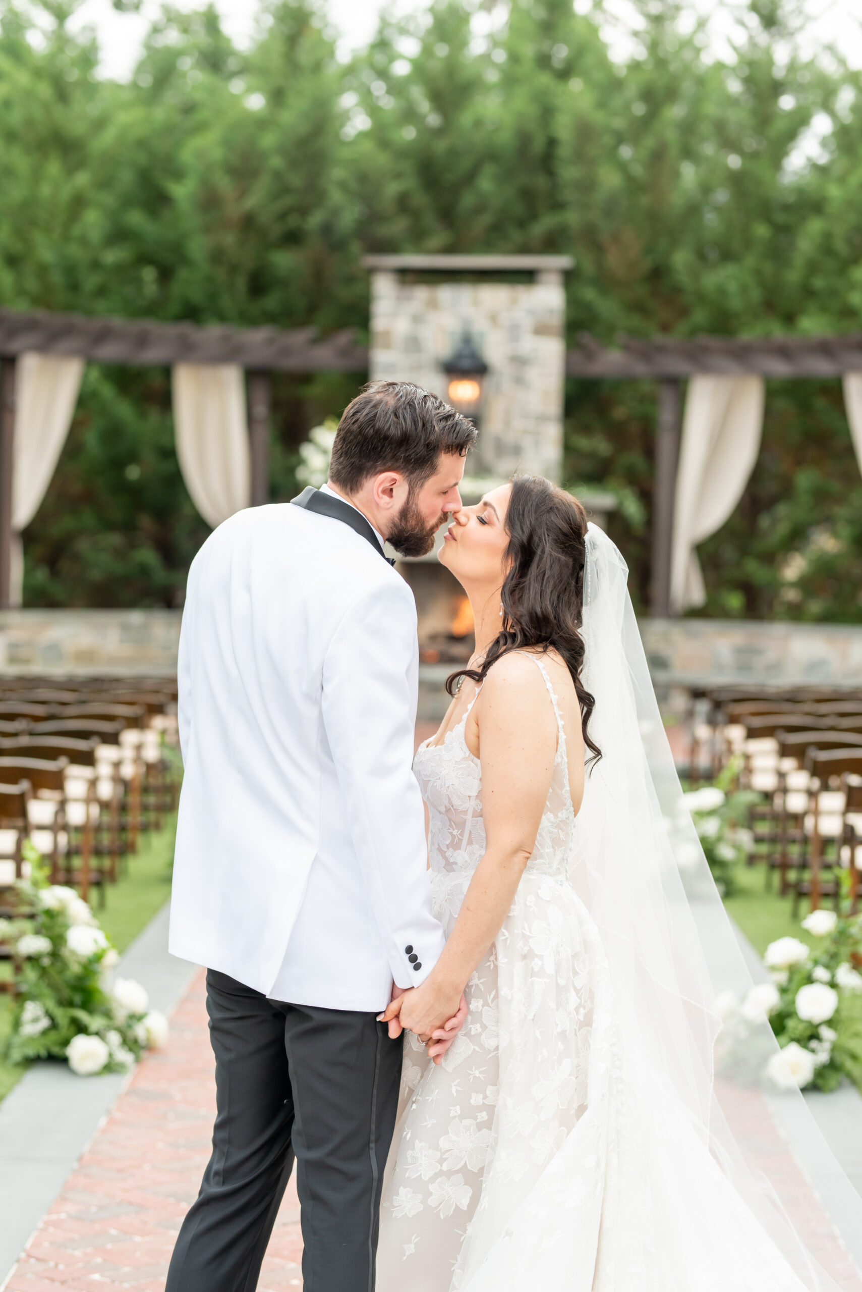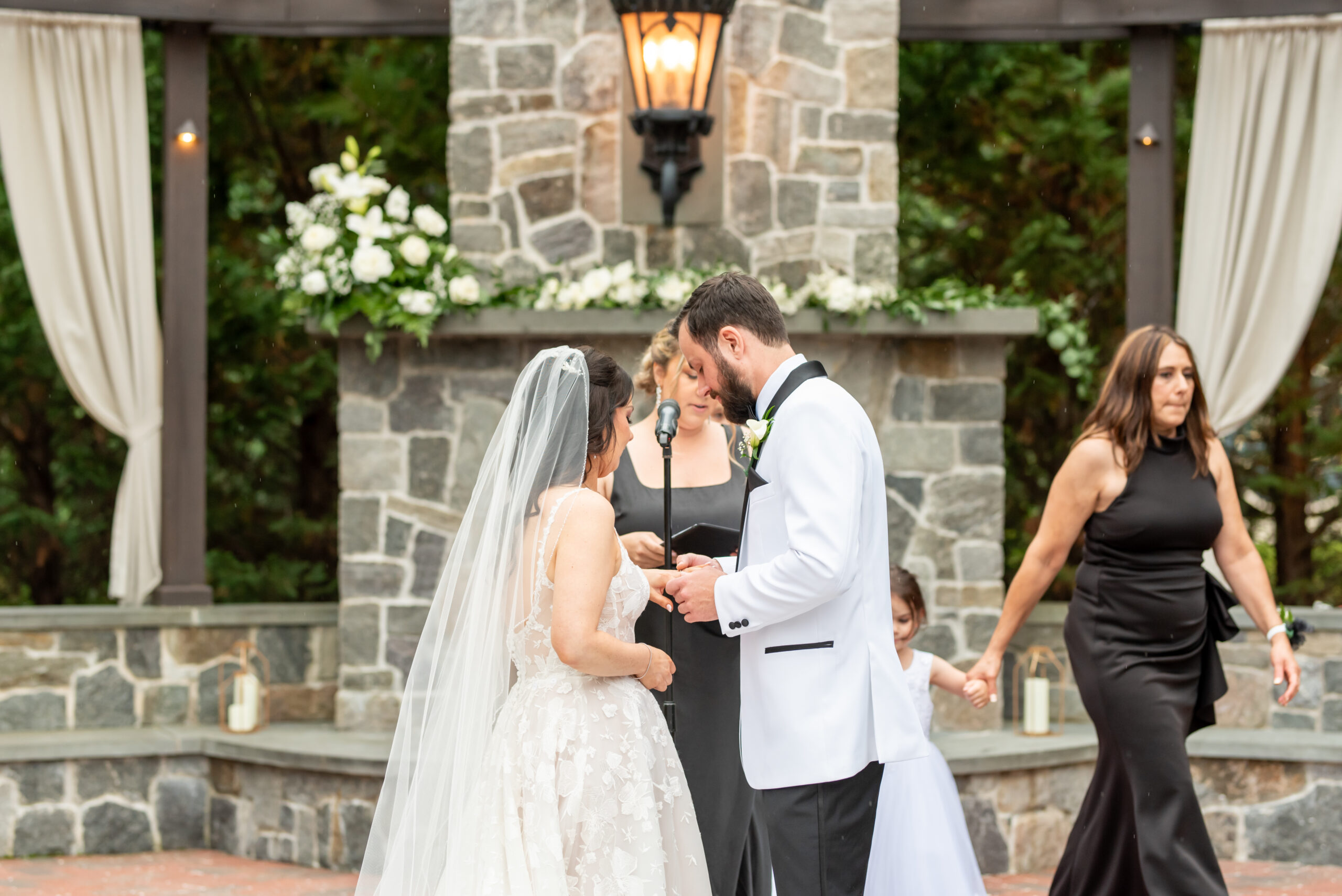 As fate would have it, the rain gently began to fall midway through. But instead of dampening spirits, it only added to the magic. Clear umbrellas floated above guests, and Amanda gracefully wrapped the ceremony with vows and a kiss just as the raindrops settled in. With laughter and happy tears, Jess and Brian walked back down the aisle, officially married and glowing.