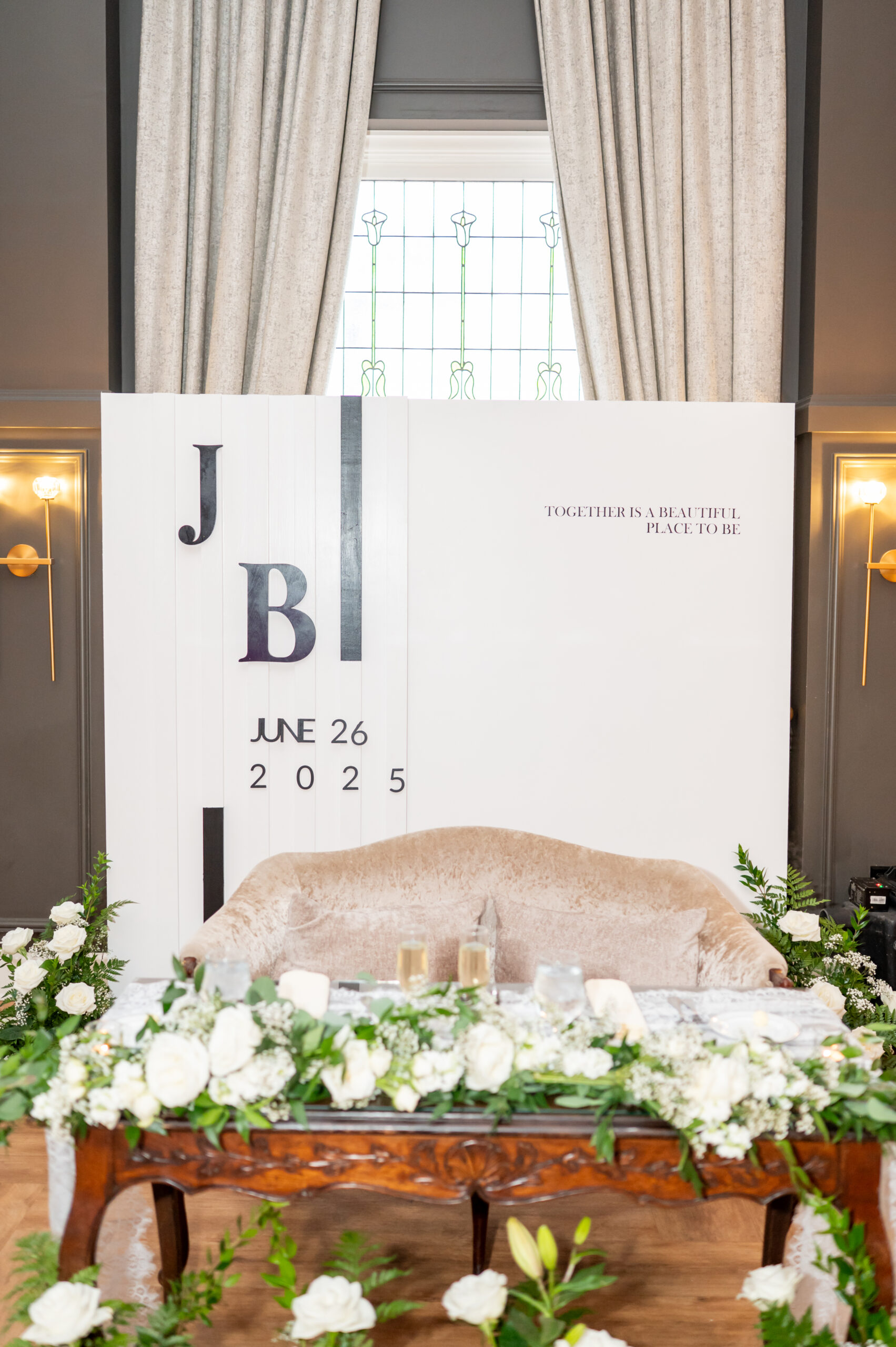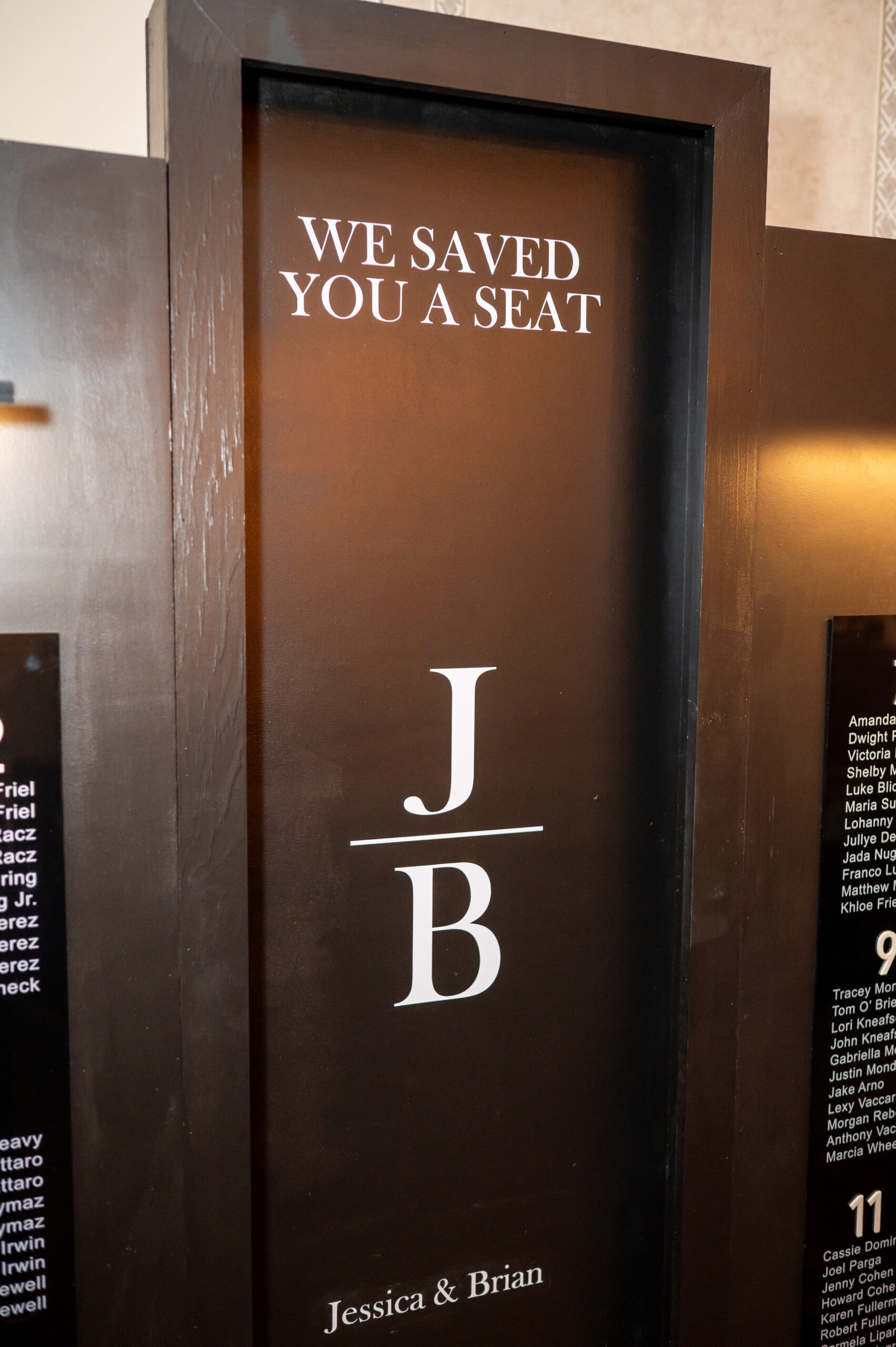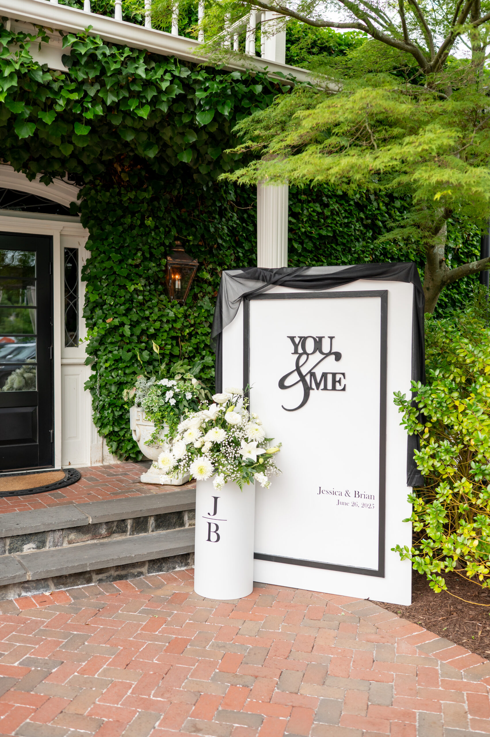 Jess and Brian’s entire wedding design echoed timeless sophistication with a modern twist. With a palette of black and white, the couple asked their guests to dress in all black. A unique touch that elevated the entire aesthetic. Jess, a talented designer herself, crafted the wedding signage, including the bold welcome sign, a chic seating chart, and the beautiful custom backdrop behind their sweetheart table. The look was cohesive, minimal, and incredibly stylish. A perfect fusion of vintage elegance and modern romance.