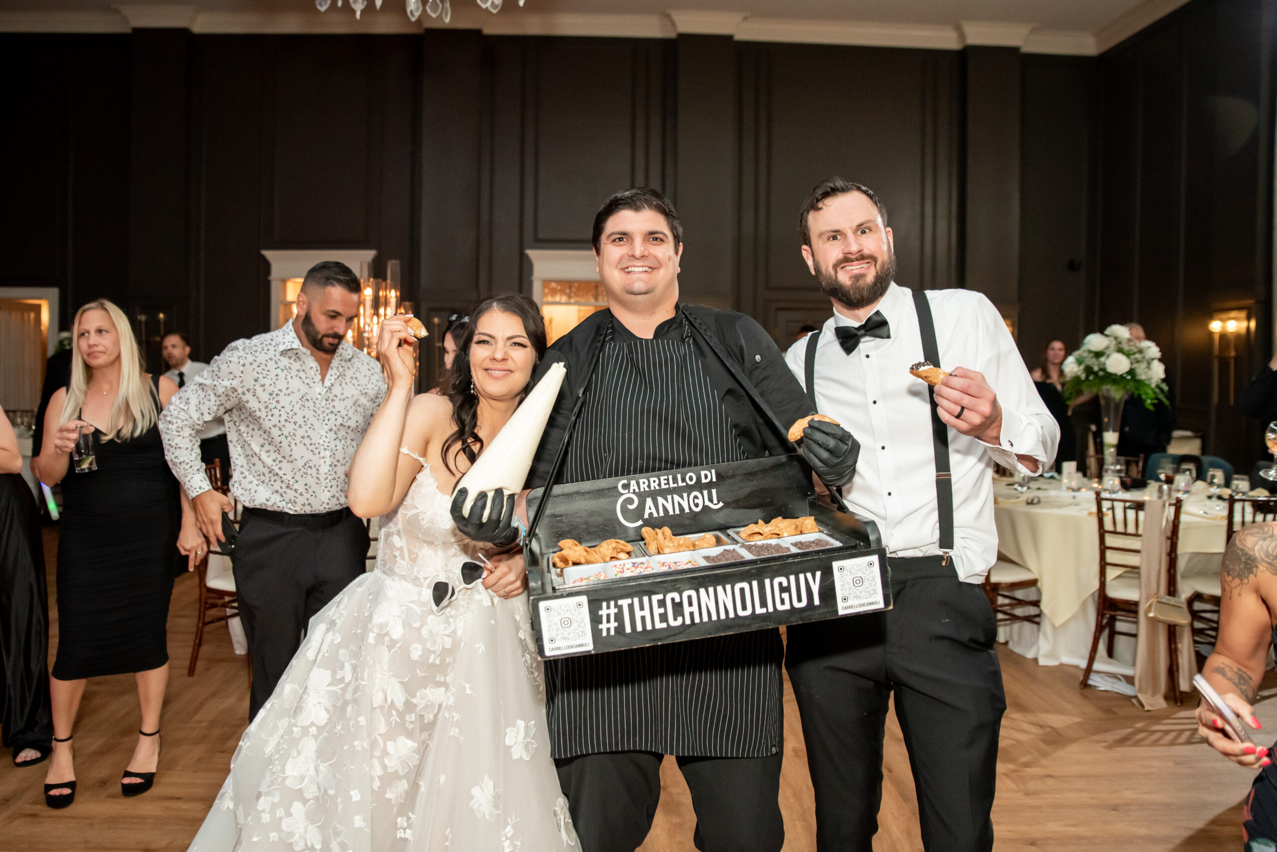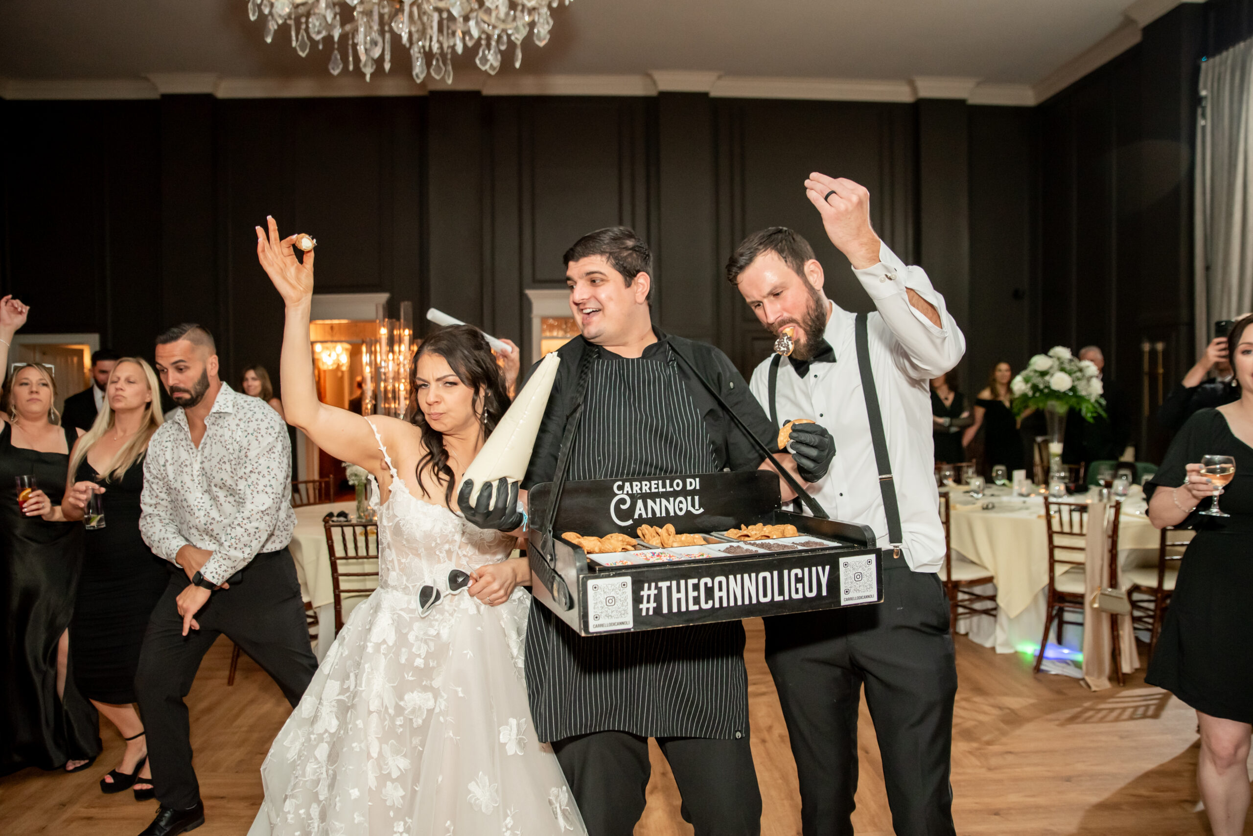 And when it was time to party, this crowd knew how to celebrate. ERE Entertainment kept the energy high (Ariel, the DJ, even played at my own wedding!). The CO2 cannons, the nostalgic hits, and the joy on everyone’s faces turned the night into a true celebration. Then came the most delicious surprises, fresh cannolis served right on the dance floor. That was followed by pizza slices handed out from a trailer run by yet another high school friend. The night was fun, flavorful, and full of heart.