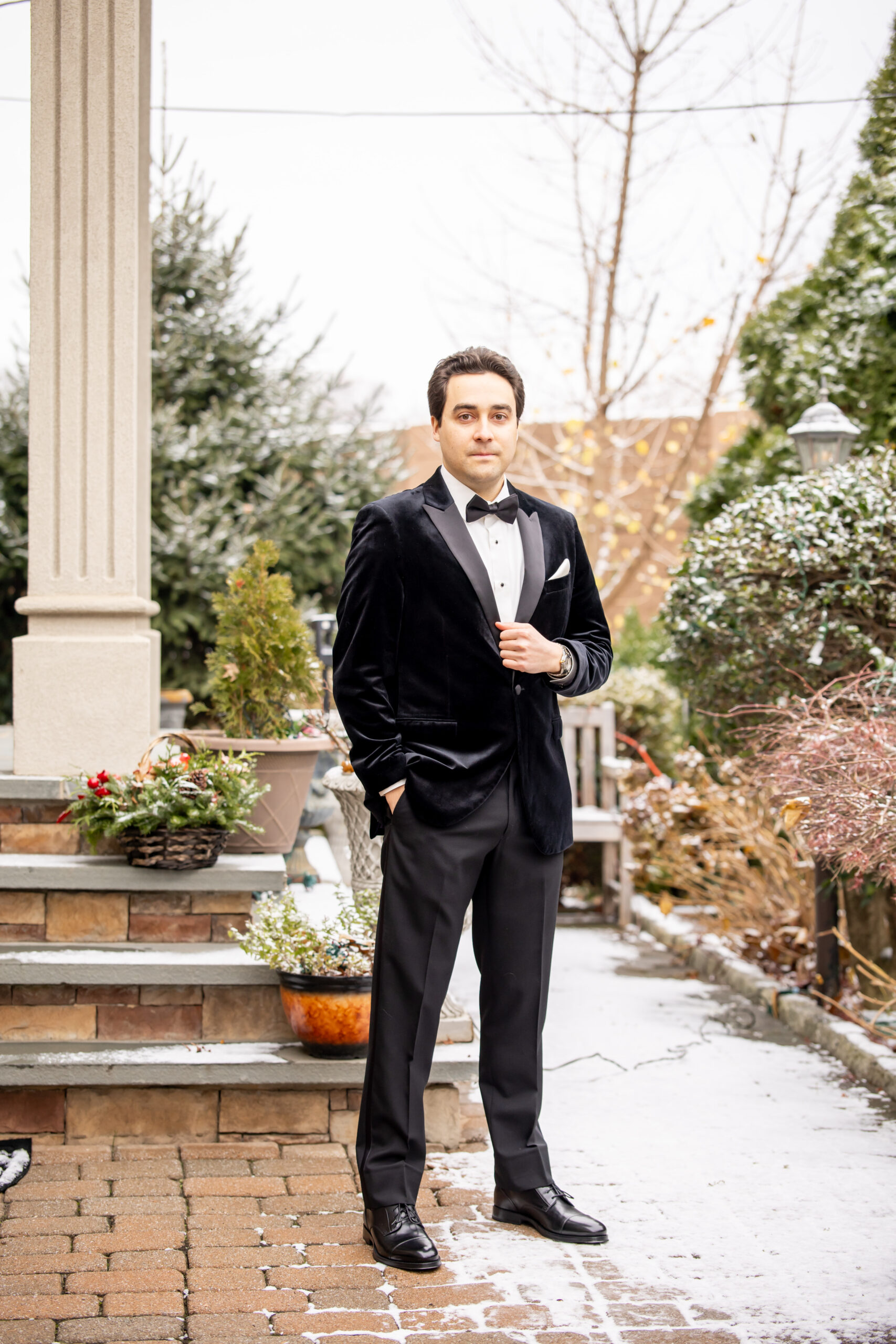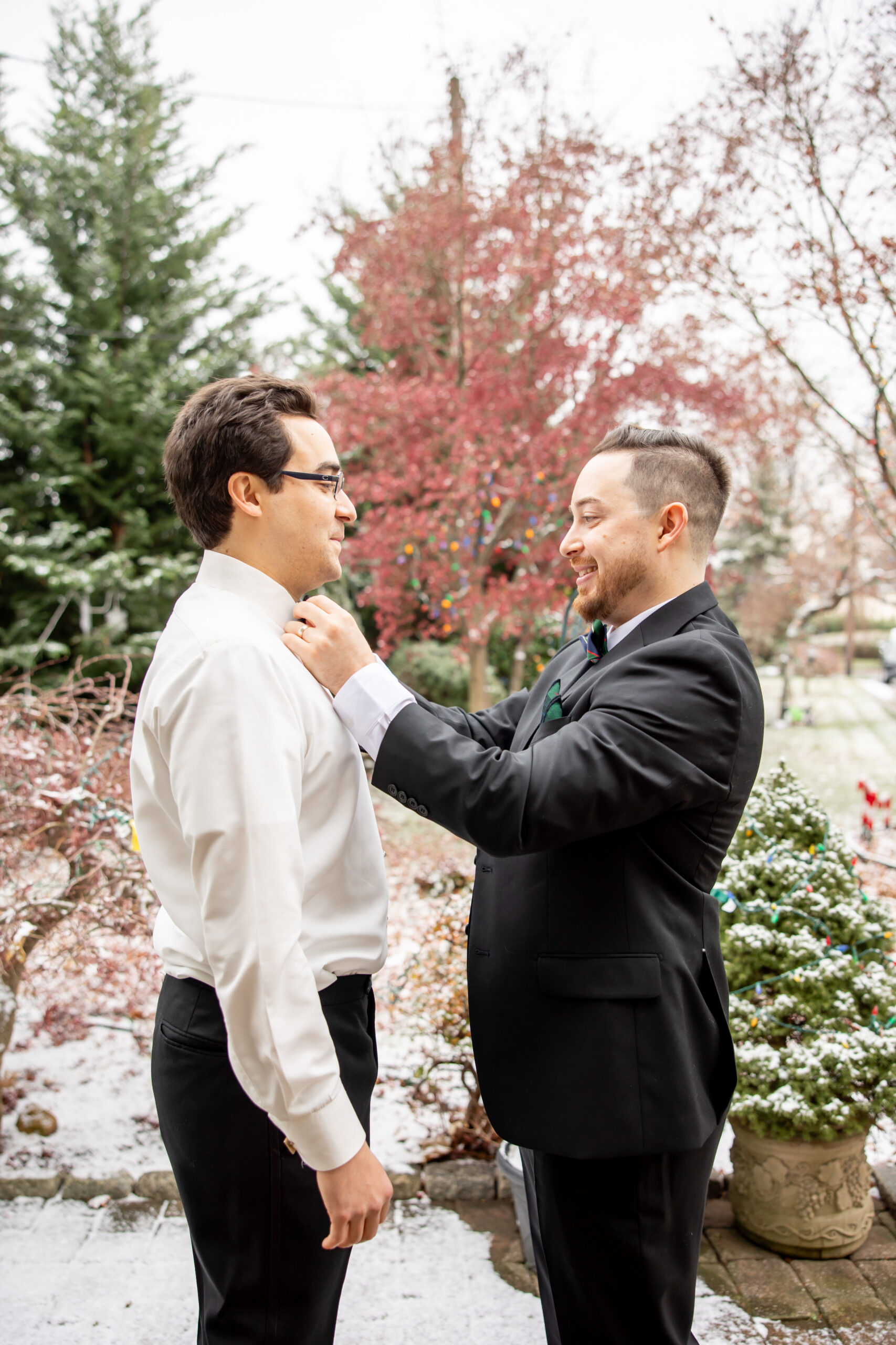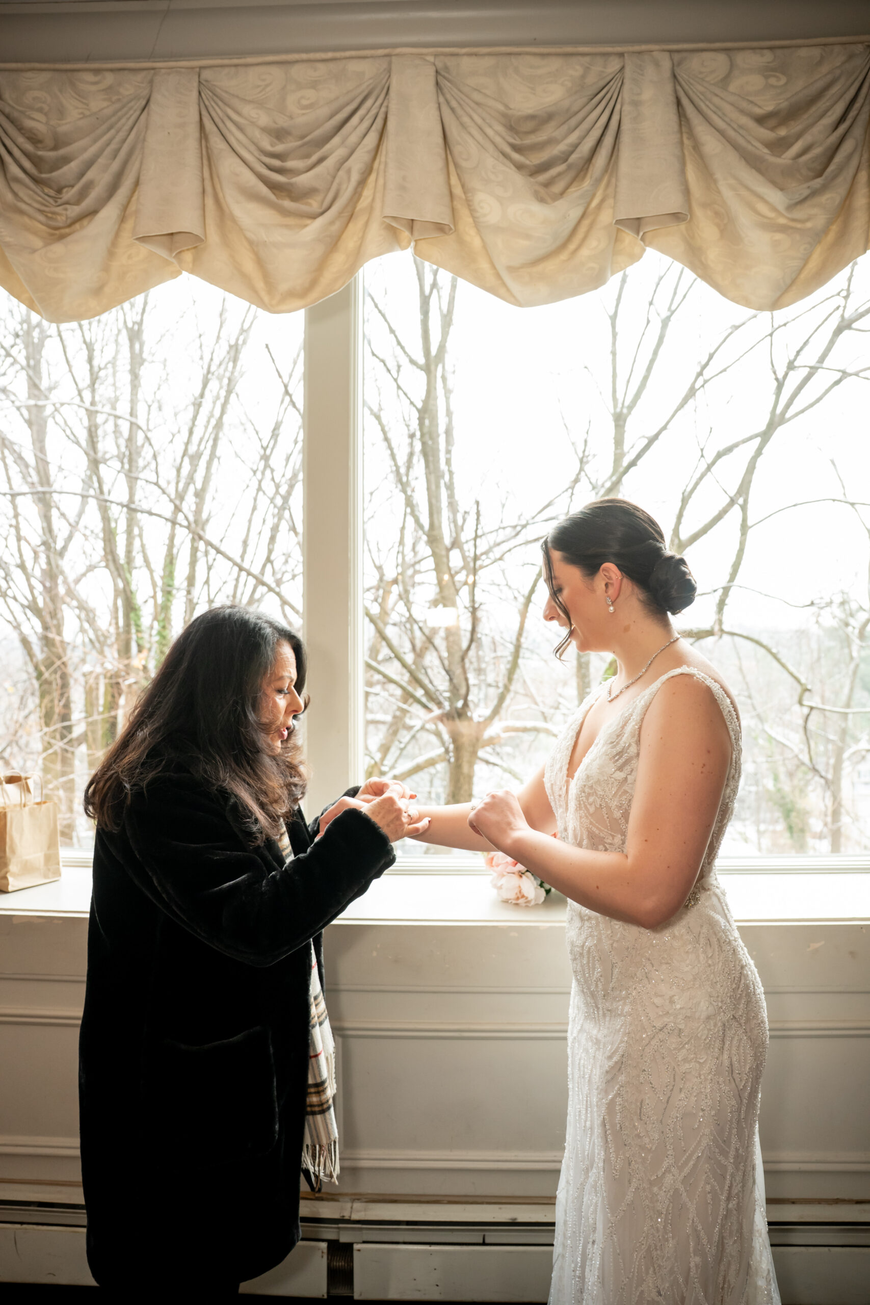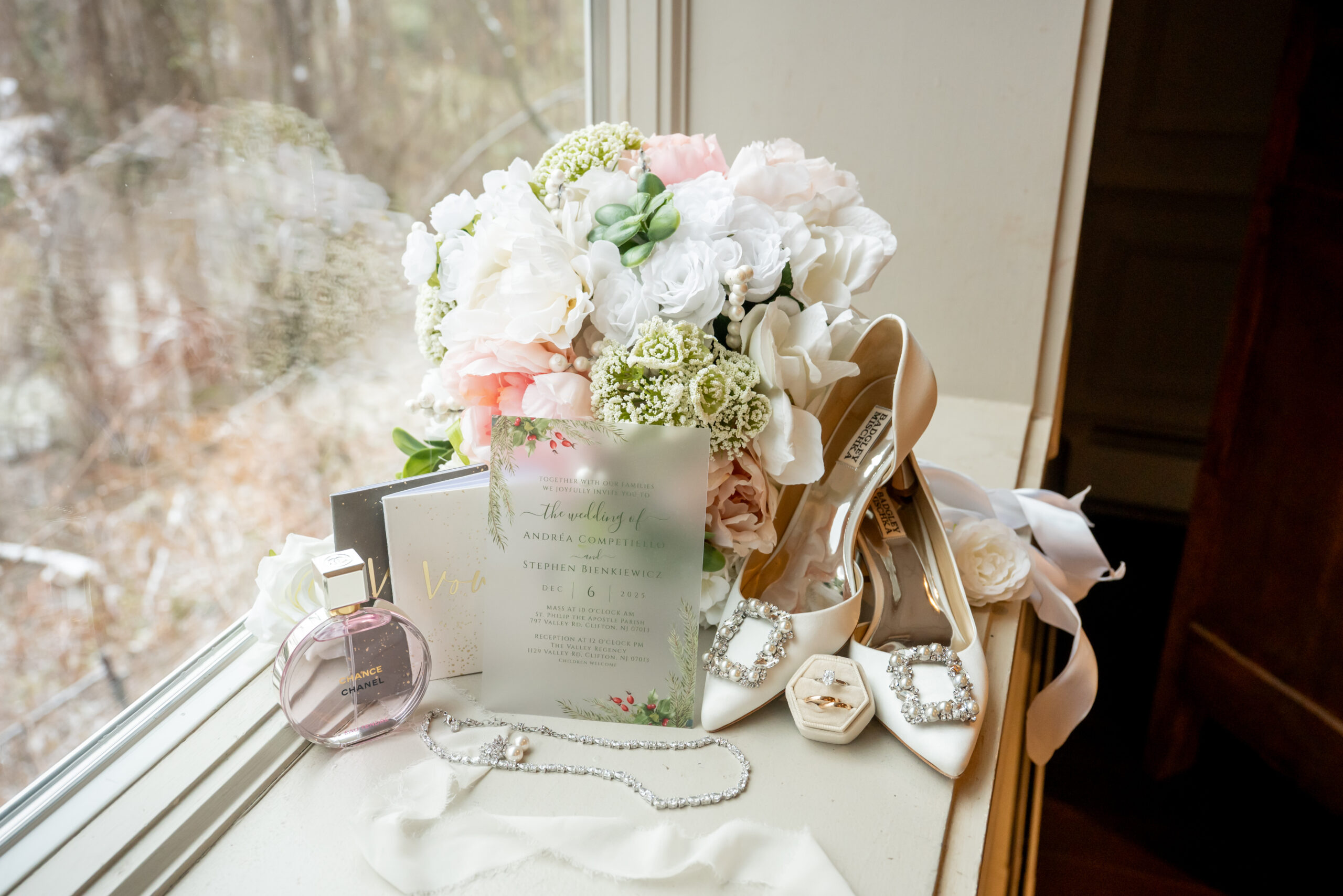 Early December brought the most magical start to Andréa and Stephen’s elegant Valley Regency wedding in Clifton, New Jersey. A light snowfall dusted the grounds that morning, creating a soft winter glow that felt straight out of a holiday movie. Between the cozy Christmas touches, the peaceful morning energy, and the fresh snow covering the estate, their wedding day felt warm, romantic, and incredibly special.