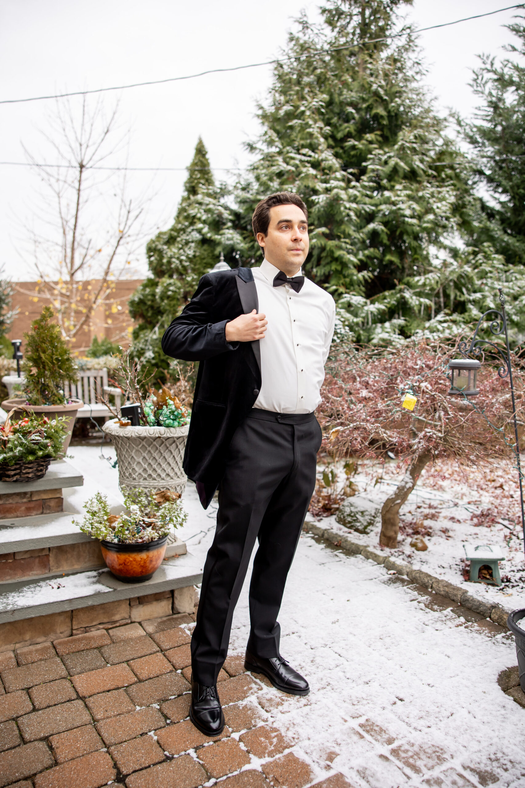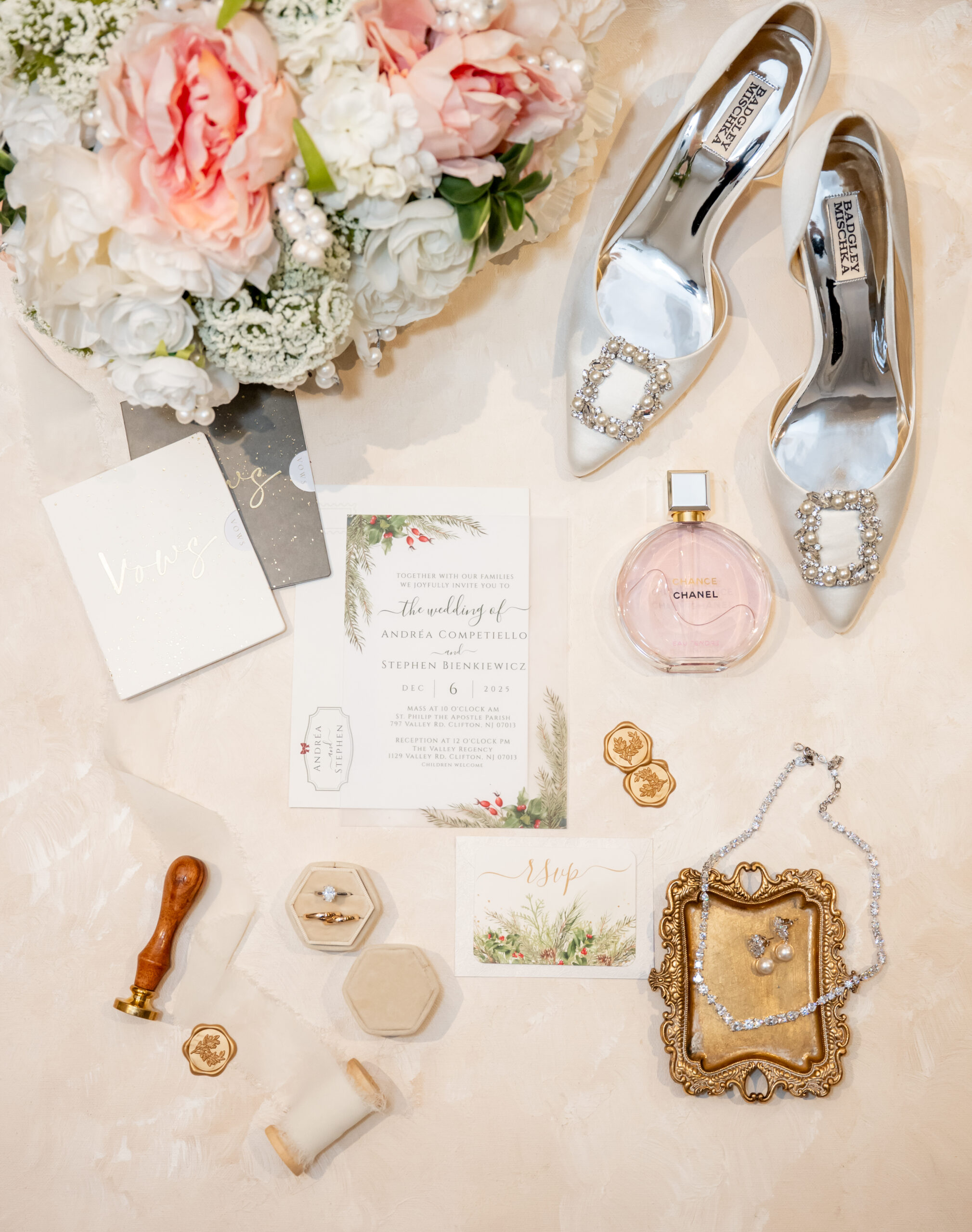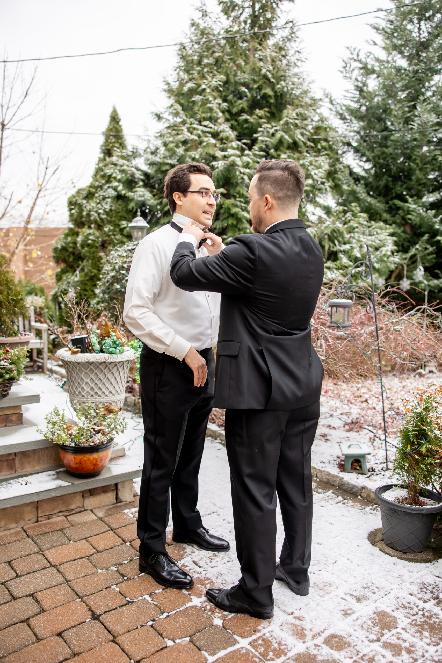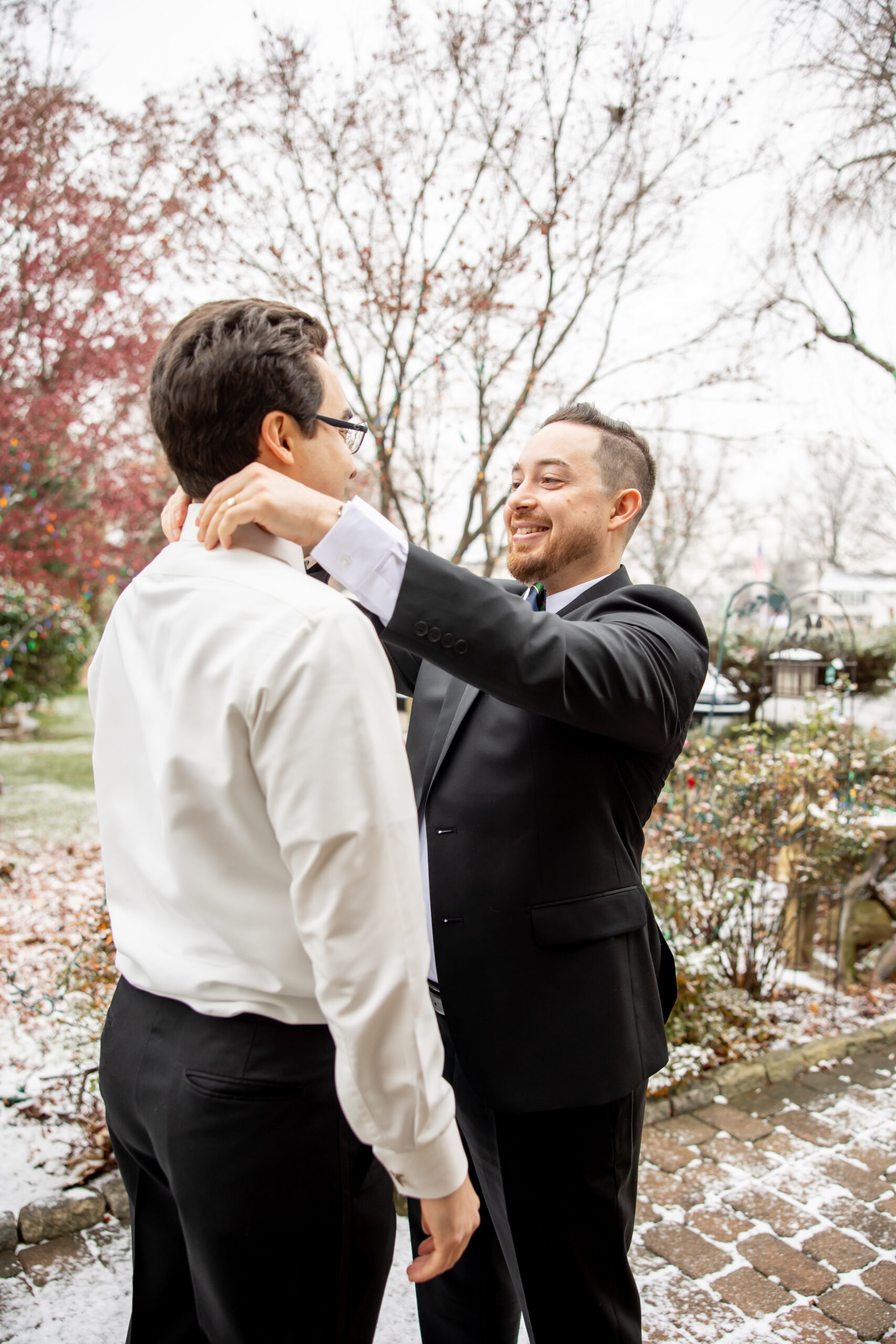 Early December brought the most magical start to Andréa and Stephen’s elegant Valley Regency wedding in Clifton, New Jersey. A light snowfall dusted the grounds that morning, creating a soft winter glow that felt straight out of a holiday movie. Between the cozy Christmas touches, the peaceful morning energy, and the fresh snow covering the estate, their wedding day felt warm, romantic, and incredibly special.