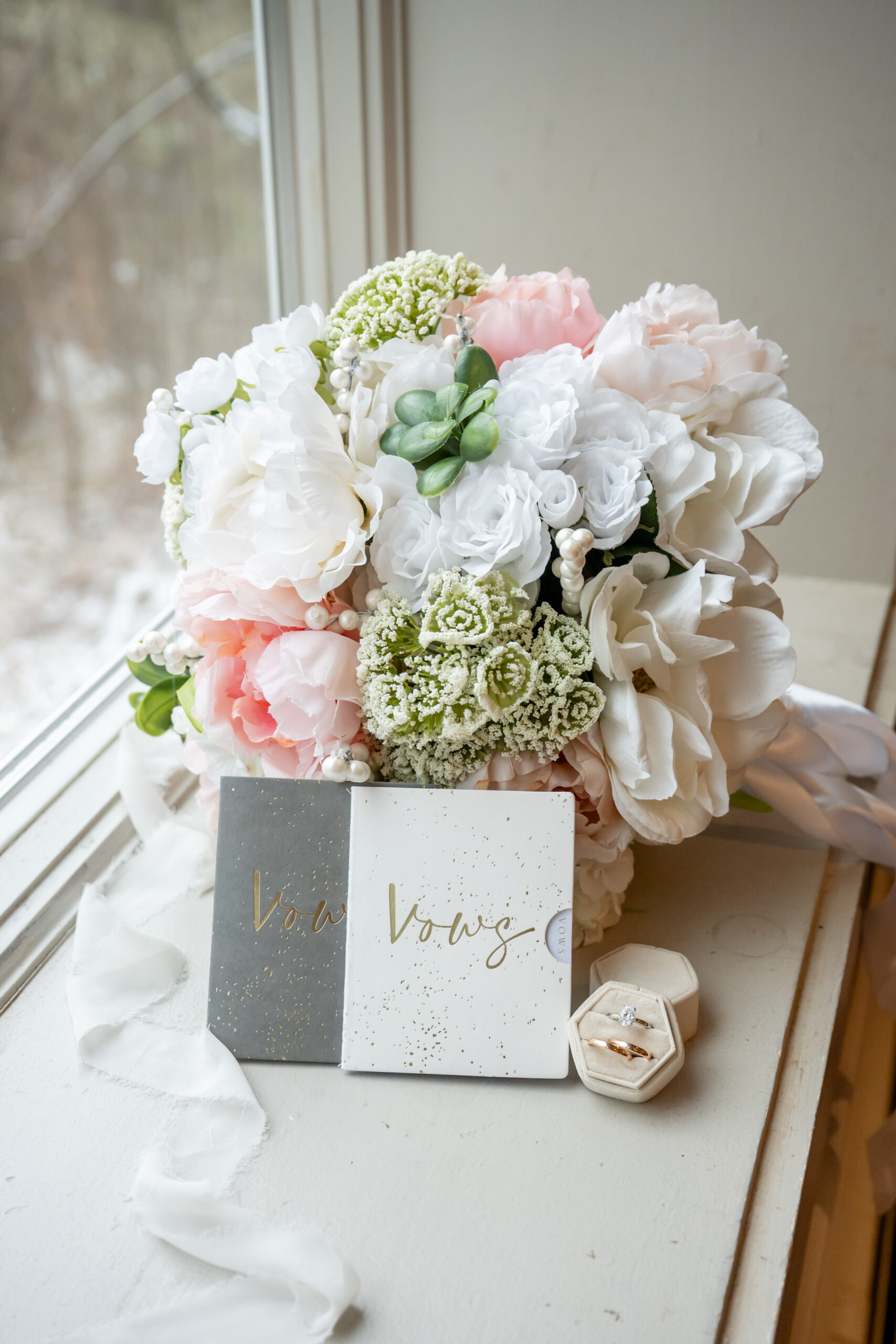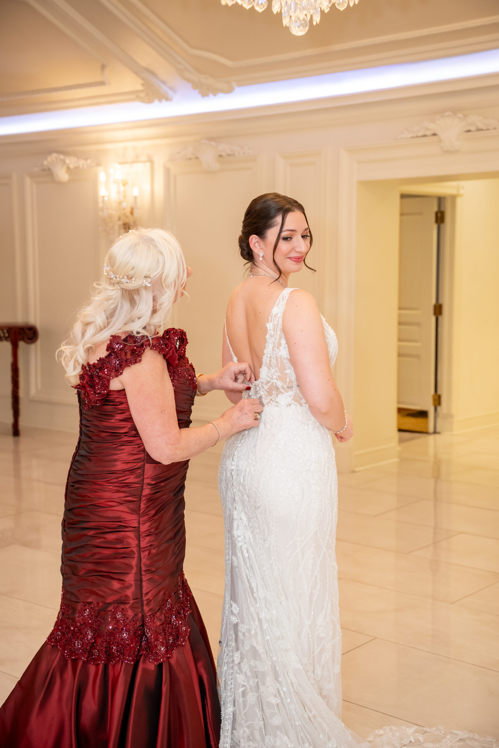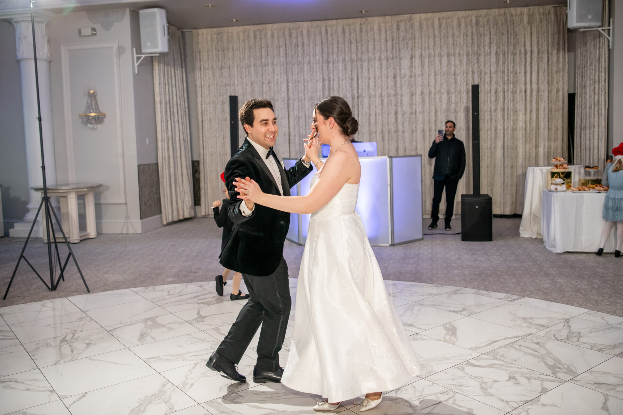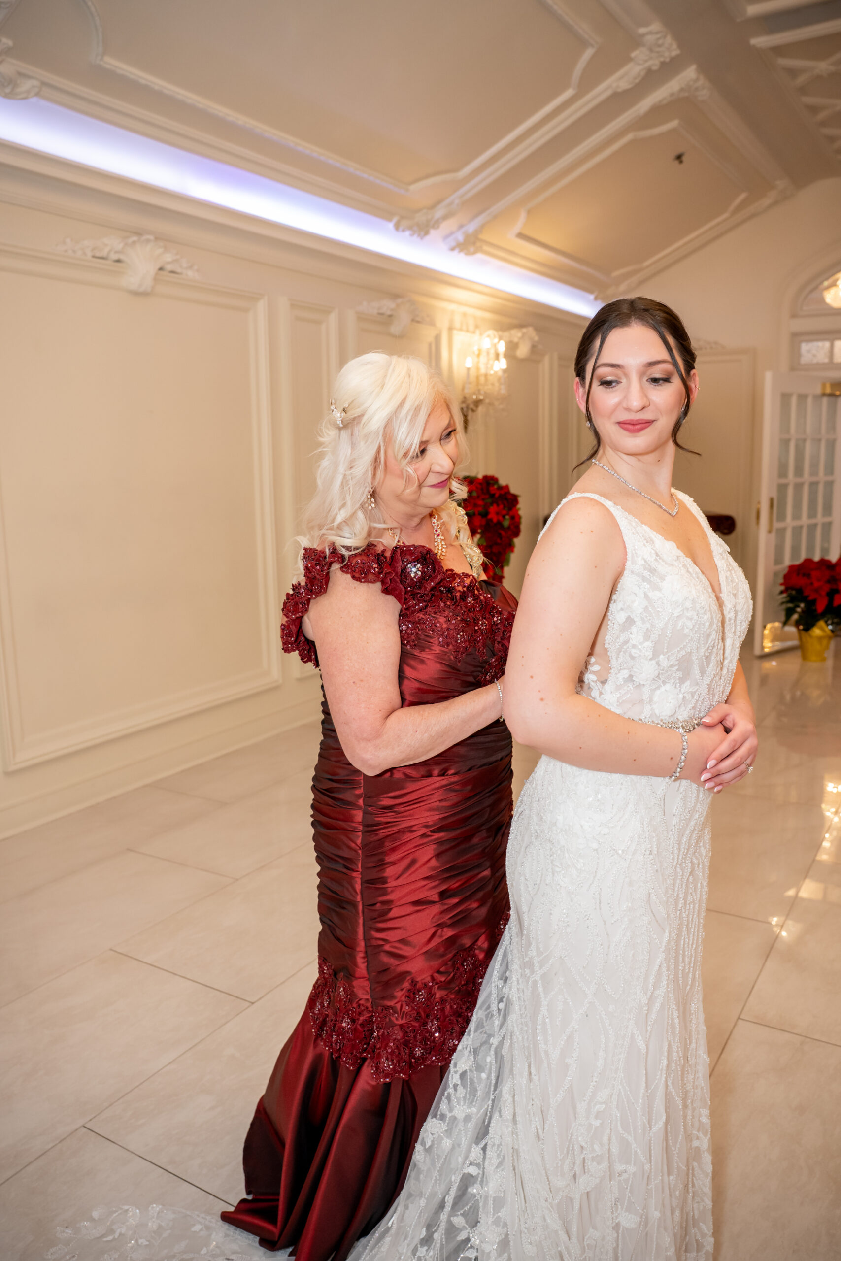Early December brought the most magical start to Andréa and Stephen’s elegant Valley Regency wedding in Clifton, New Jersey. A light snowfall dusted the grounds that morning, creating a soft winter glow that felt straight out of a holiday movie. Between the cozy Christmas touches, the peaceful morning energy, and the fresh snow covering the estate, their wedding day felt warm, romantic, and incredibly special.