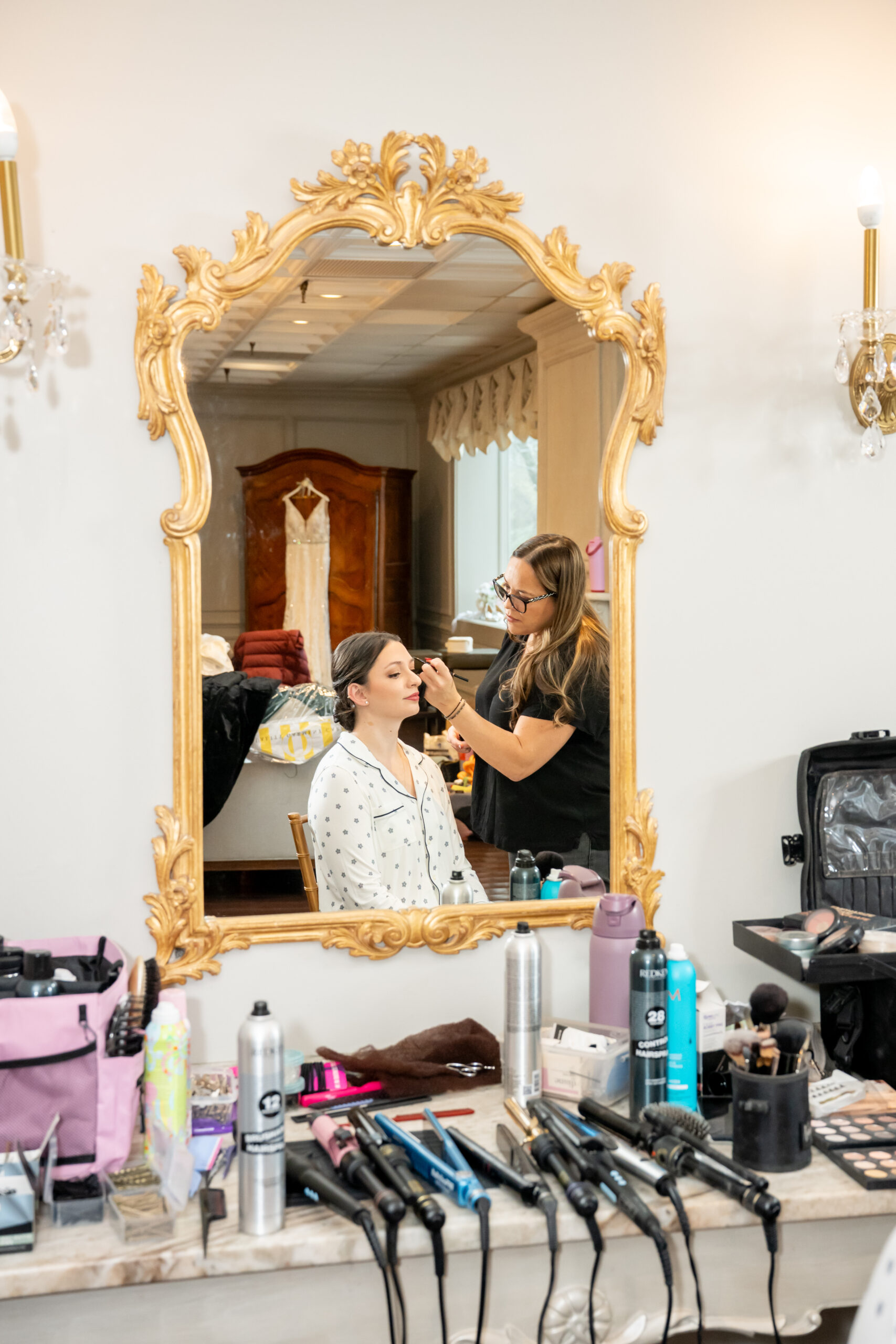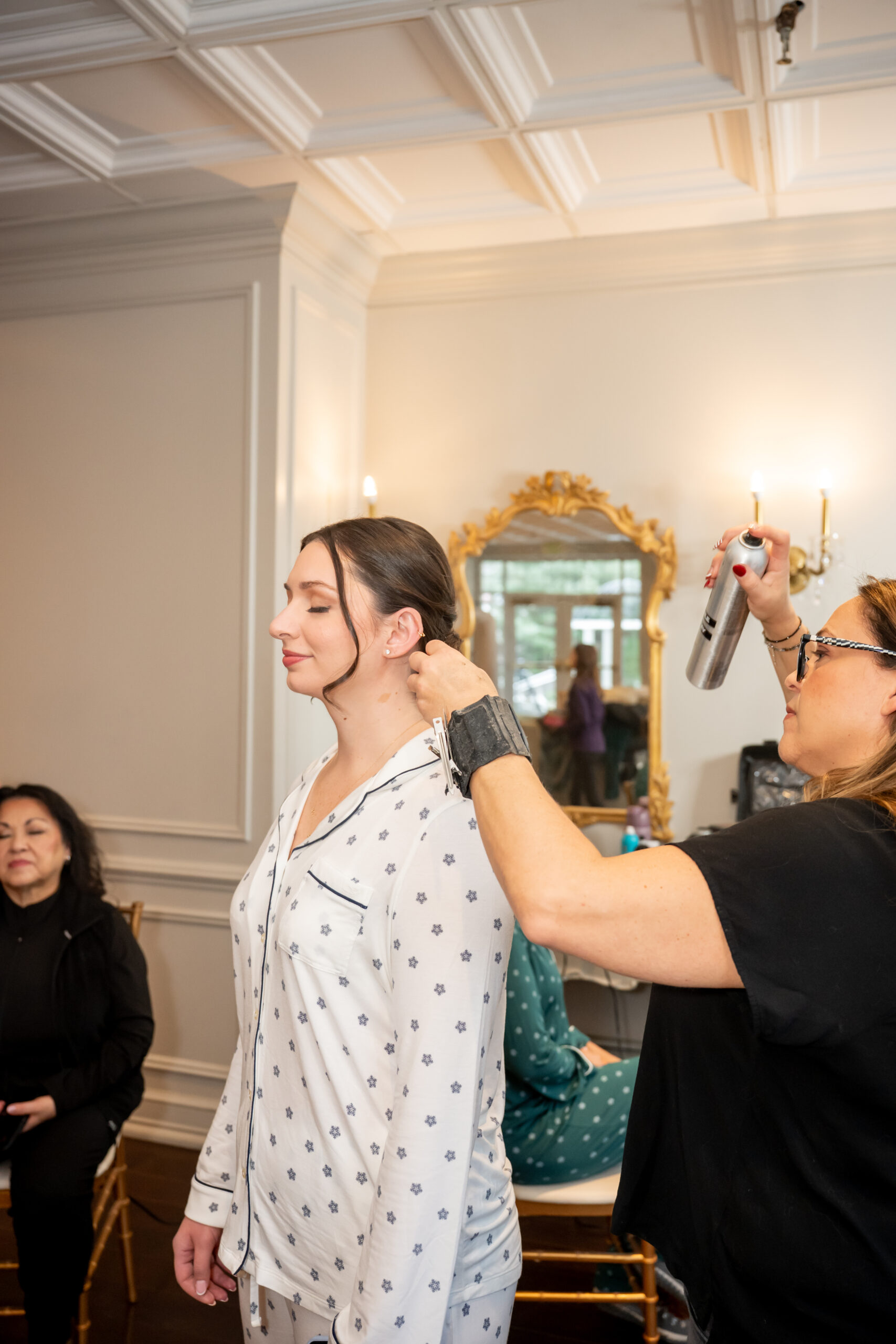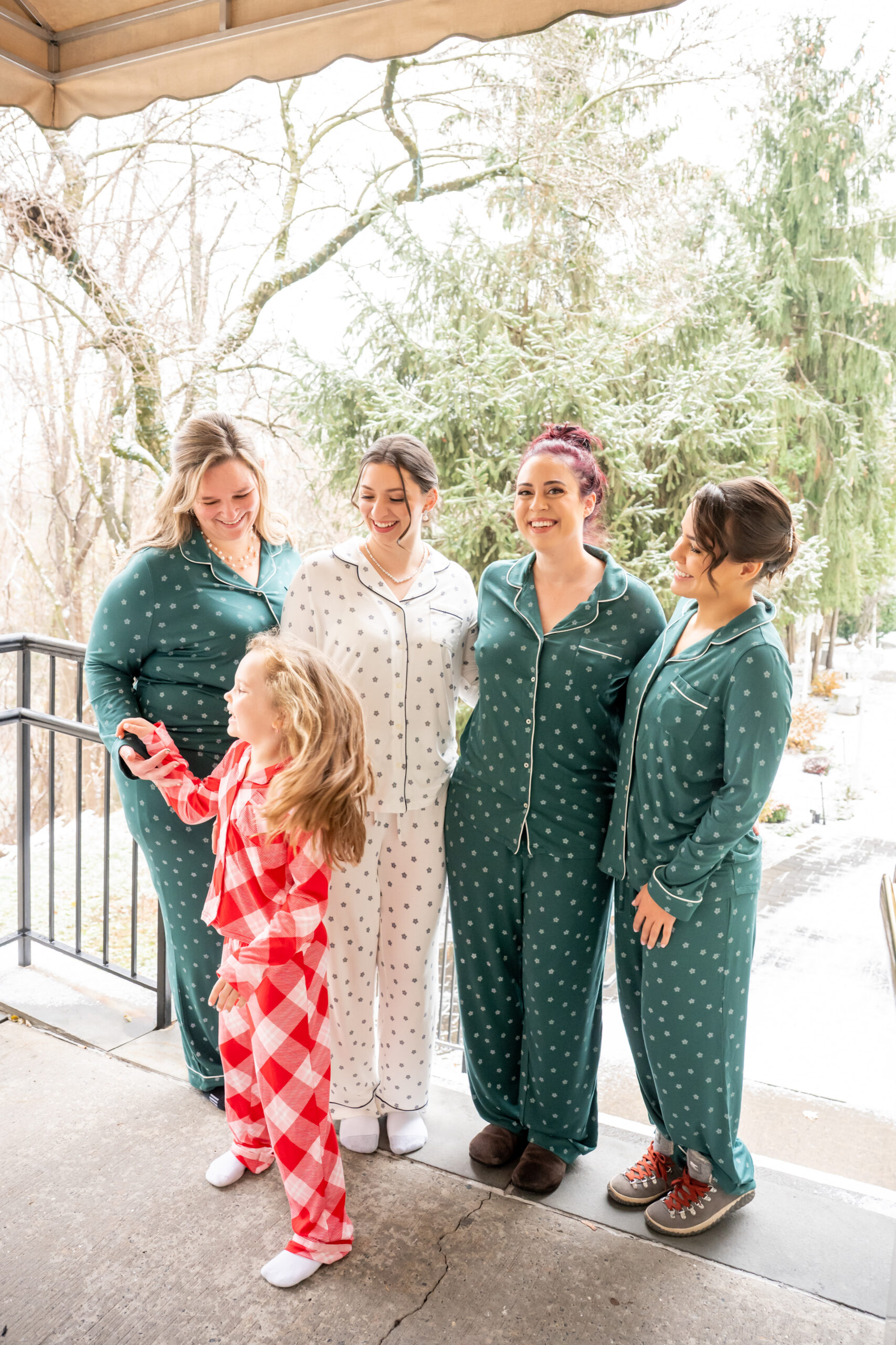 Because Andréa and Stephen planned a morning wedding, we started the day early, but it never once felt rushed. The getting-ready moments were calm, quiet, and filled with so much love as friends and family gathered together. Everyone wore festive Christmas pajamas, which made the whole morning feel extra cozy and fun.