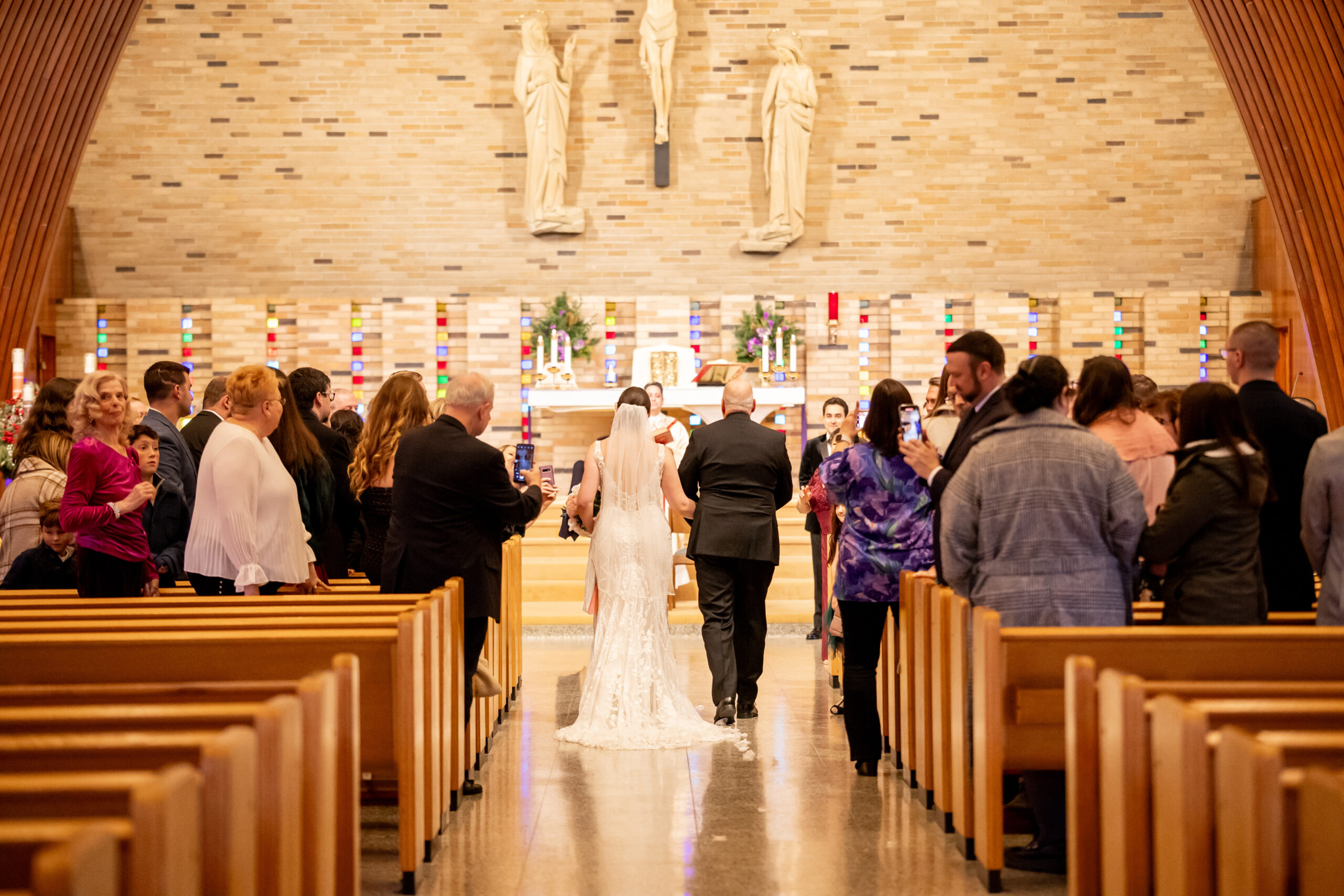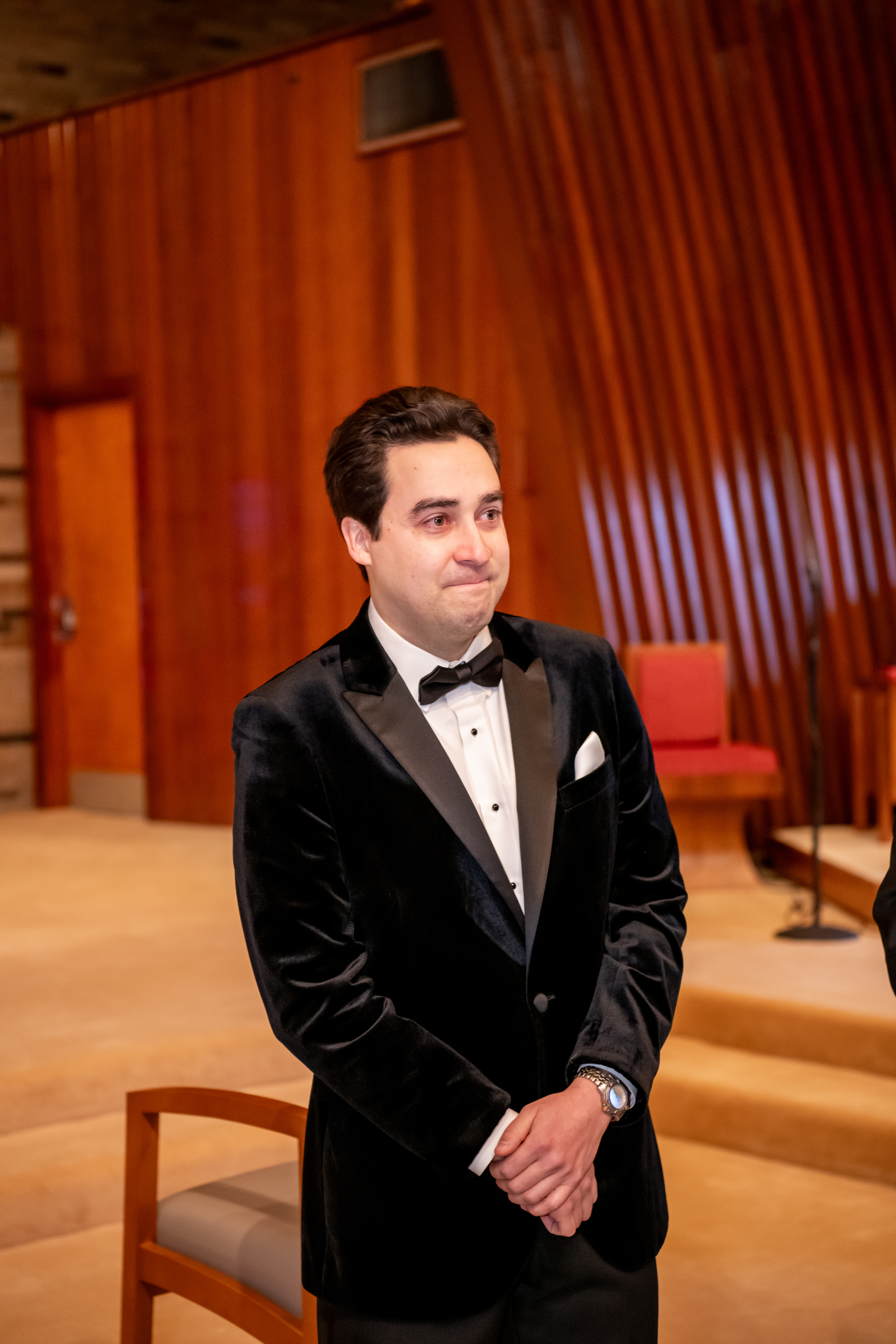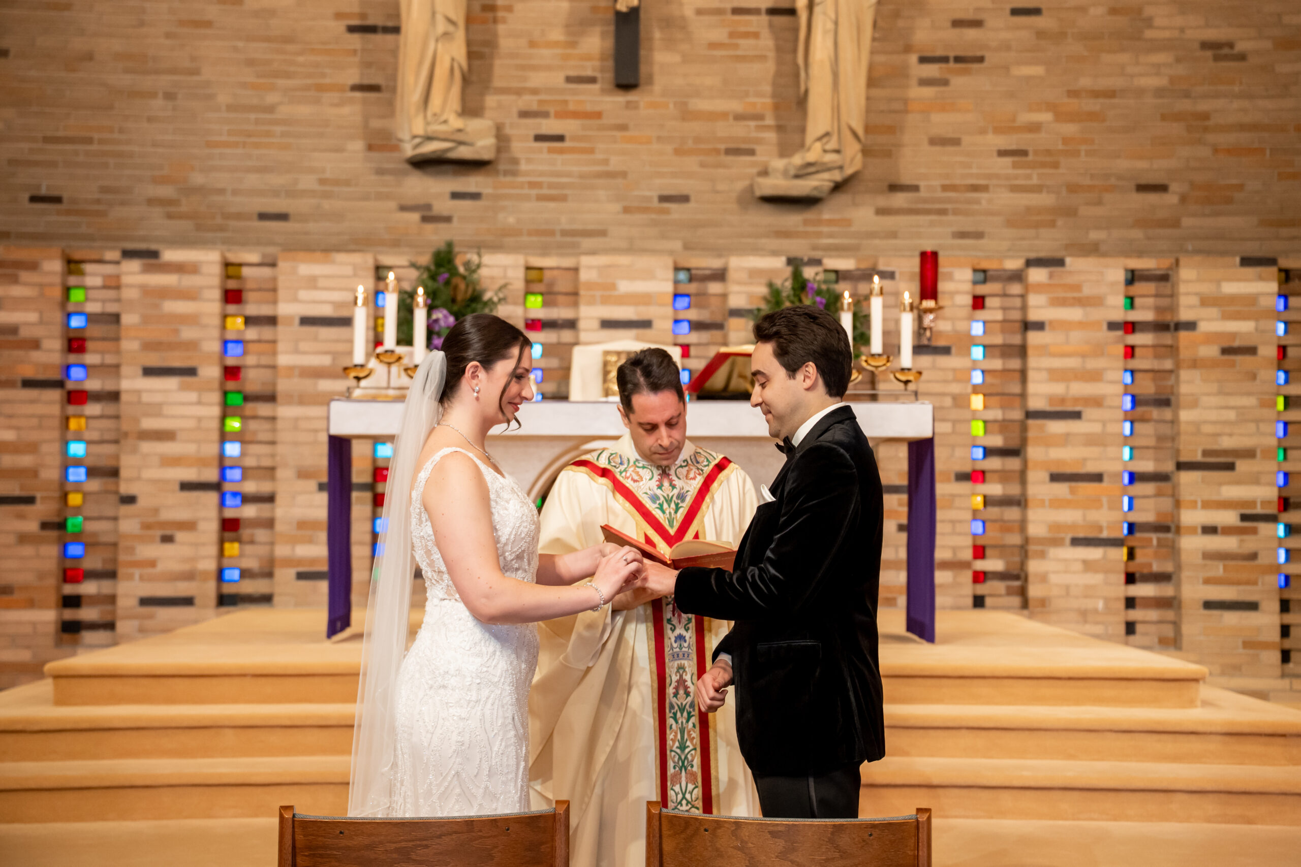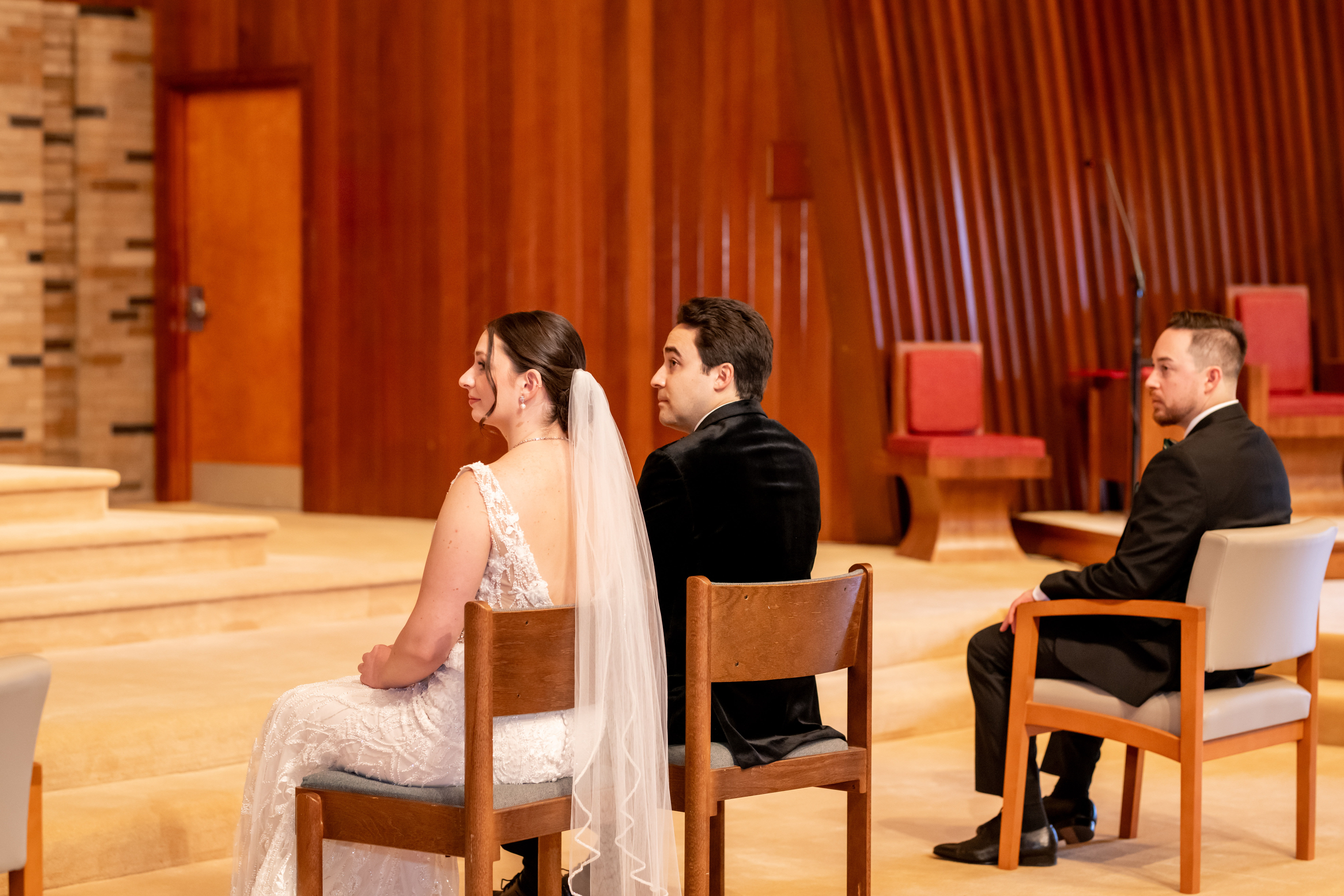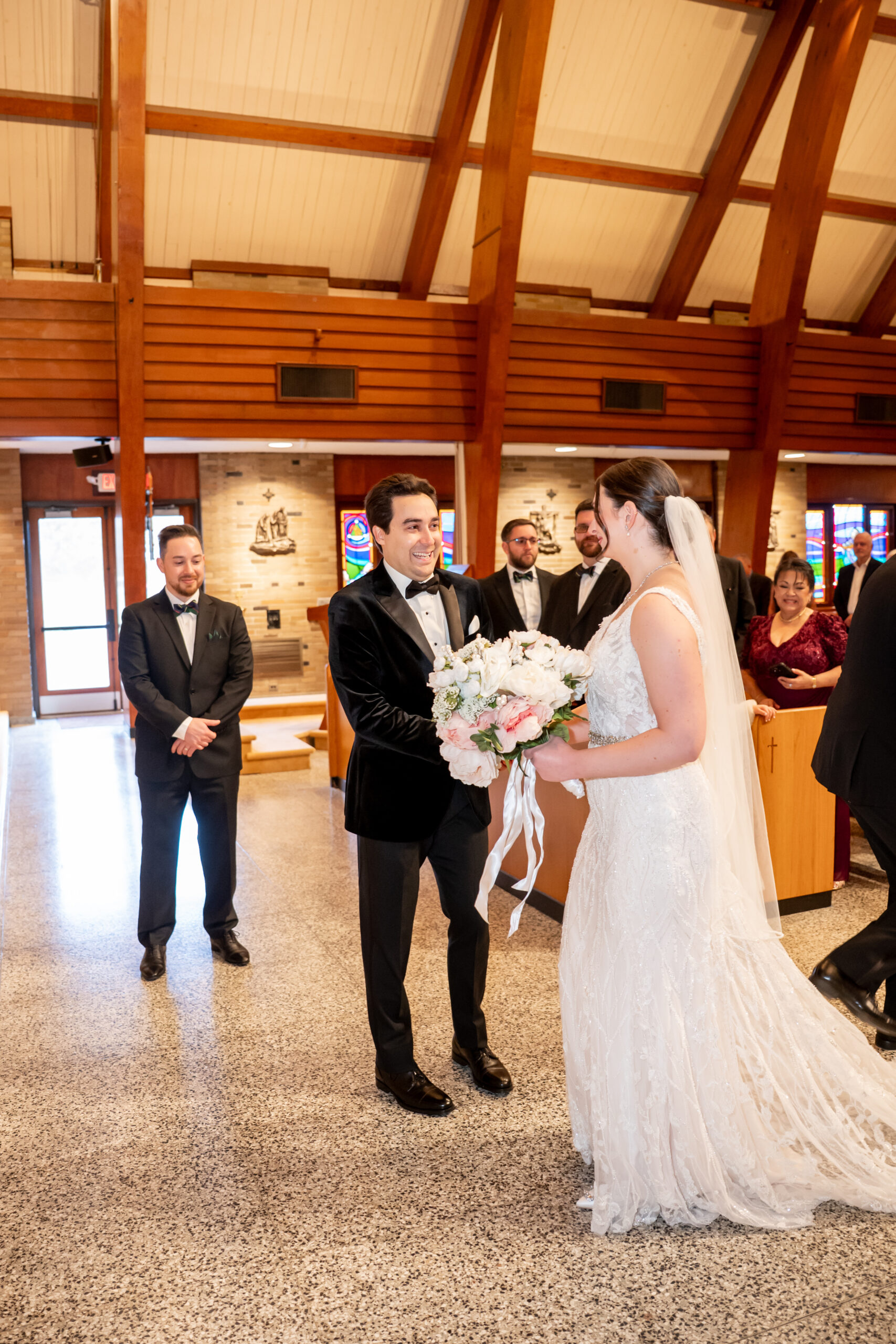 Once everyone was ready, we headed down the road to their church for the ceremony. The space was bright and welcoming with tall ceilings and an open, airy feel that made everything feel peaceful and intimate. As Andréa walked down the aisle, both she and Stephen couldn’t hold back their tears.