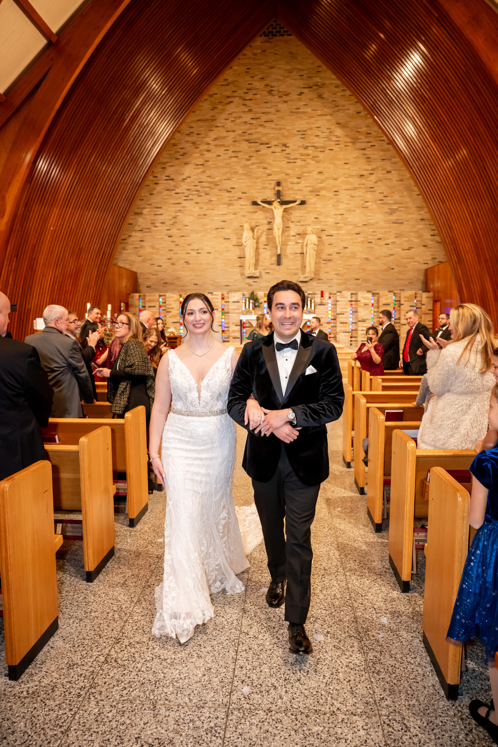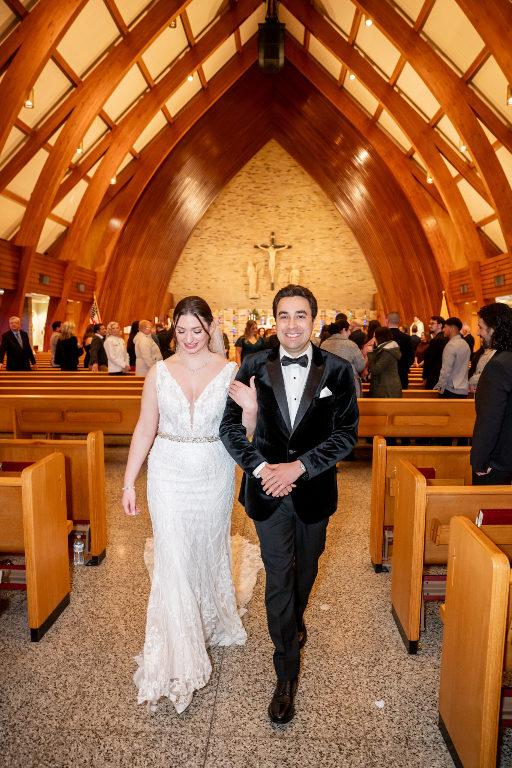 There was so much excitement and emotion in the room as they stood together and exchanged vows. You could truly feel how happy they were to finally be sharing this moment. After sealing it with a kiss, they walked back down the aisle hand in hand, smiling ear to ear as husband and wife.