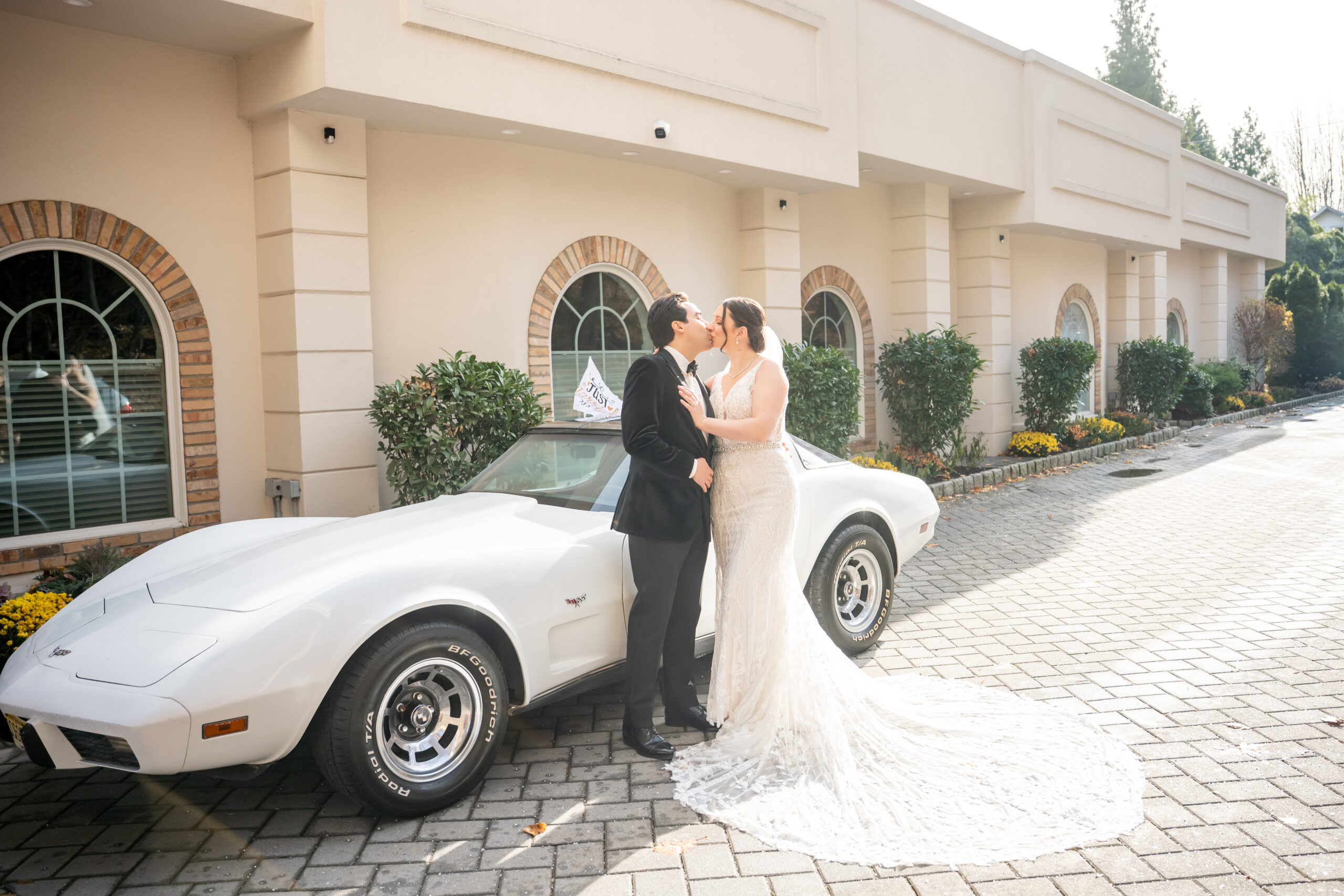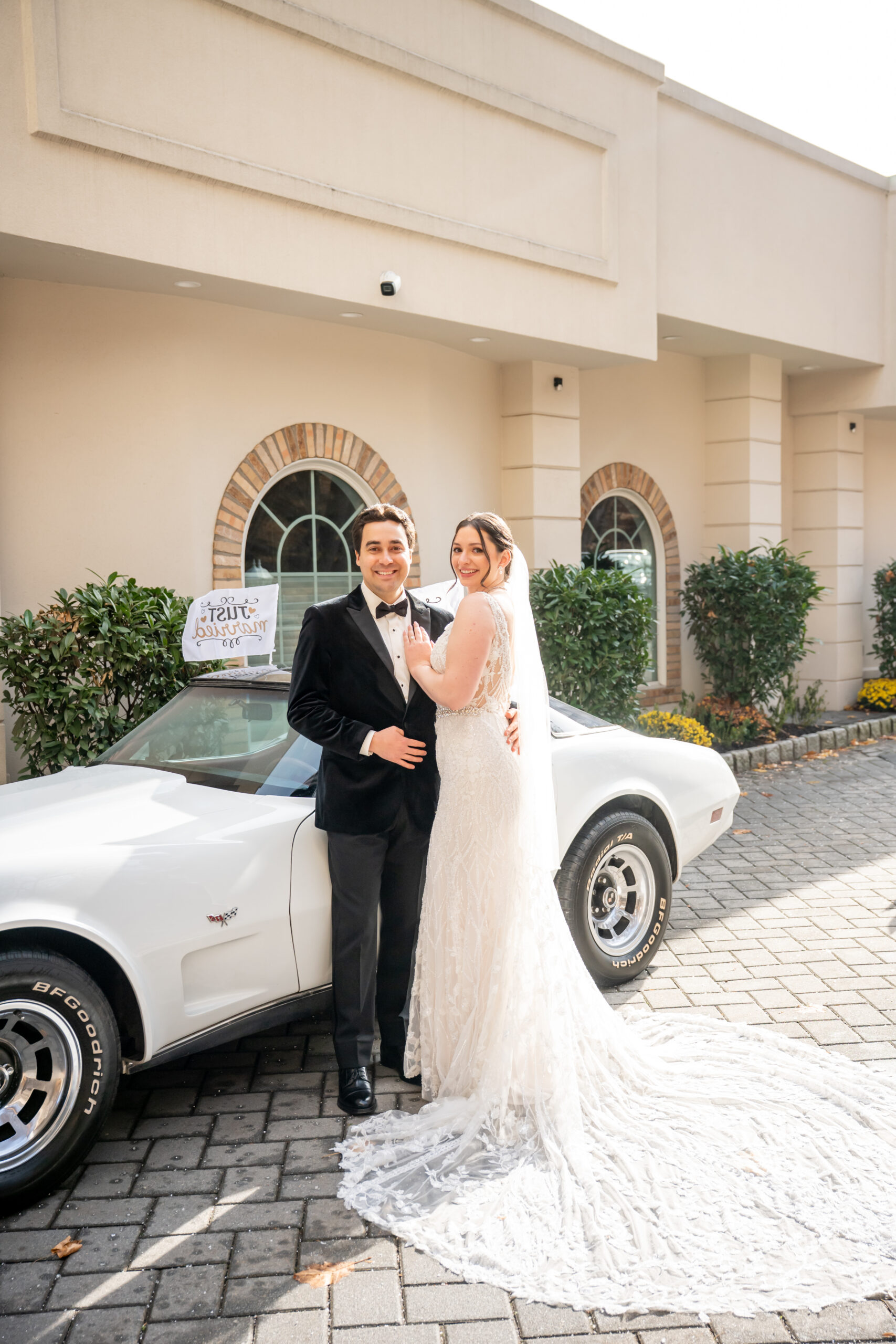One of my favorite moments was photographing them with Stephen’s dad’s vintage white Corvette. It made for such a fun and unique photo opportunity, especially with the “Just Married” flags waving from the windows. It was one of those personal touches that made their wedding day feel even more special.