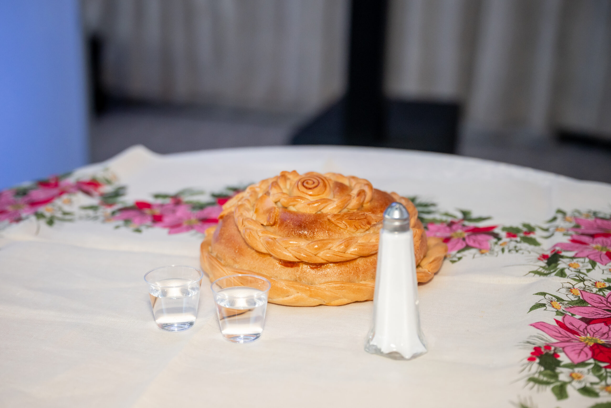 On the table sat bread, salt, and two shot glasses, one filled with water and one with vodka. Each of them chose a glass, and whoever picked the vodka was declared the head of the household. It was such a fun and surprising moment that had everyone laughing and cheering.