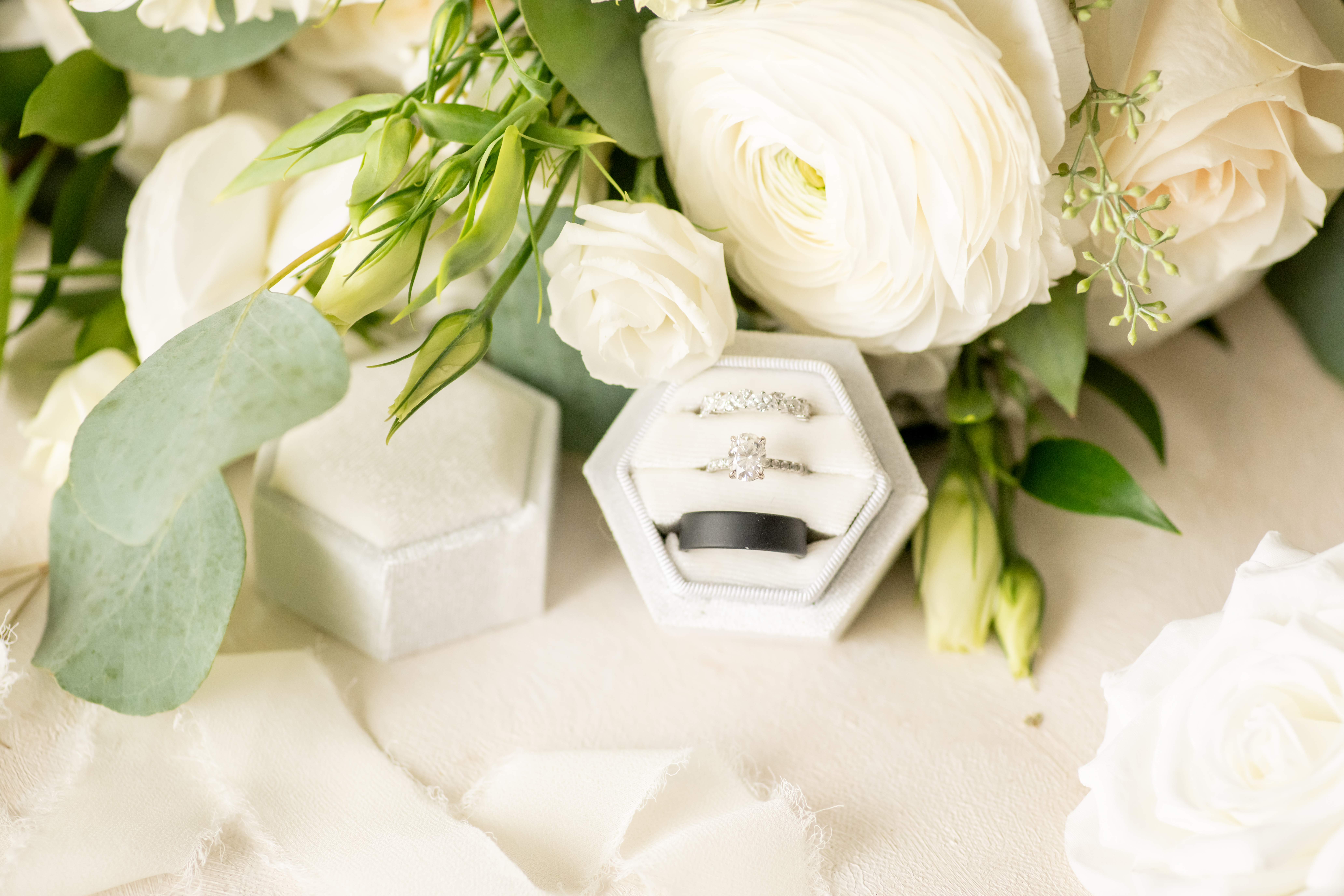 Their rings perfectly represented each of them. Sabrinaās engagement ring was delicate with a rustic white gold texture, while Mikeās was thick, sleek, and black, practical and strong. As a police officer, he loved knowing he could wear it every day, even to work.