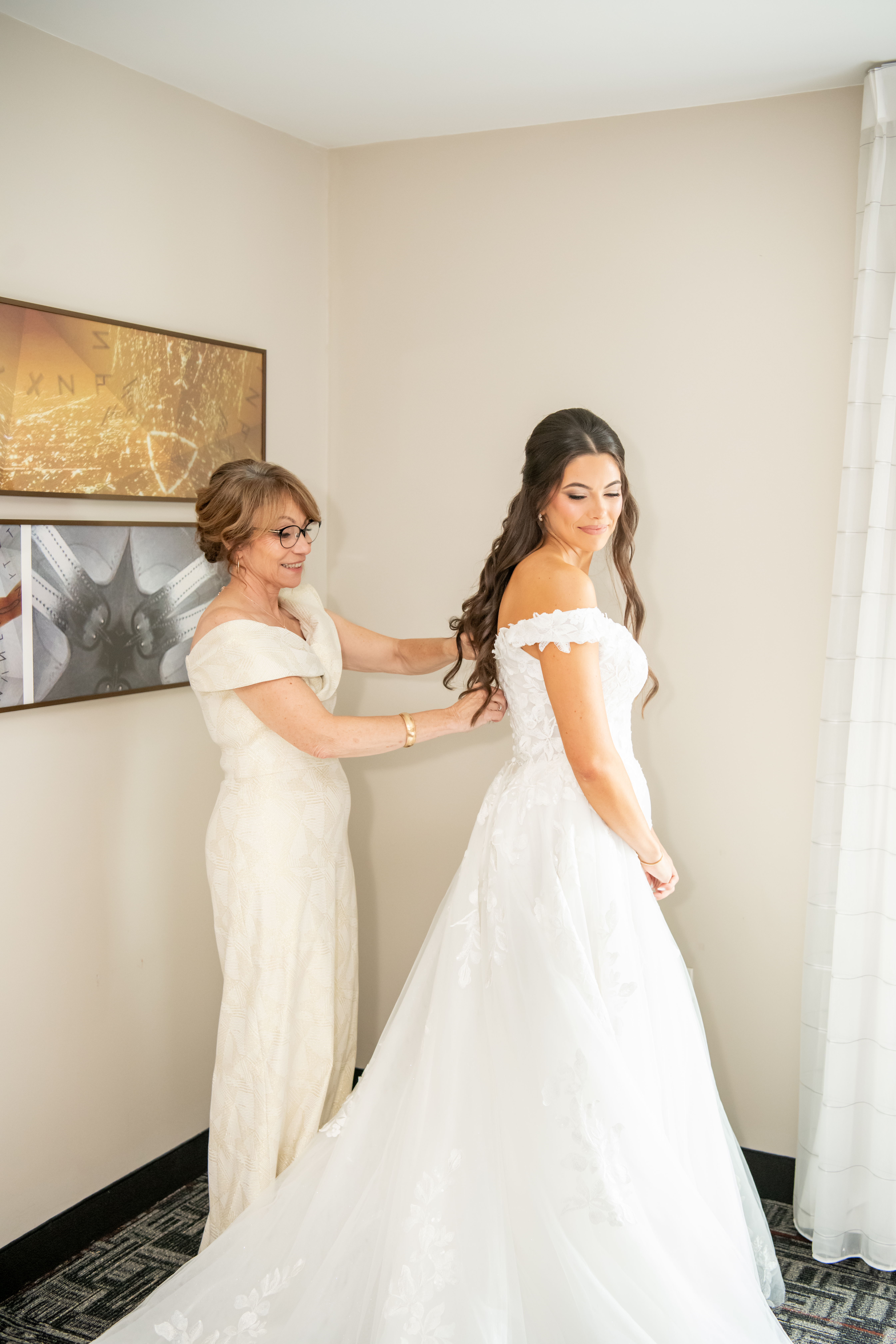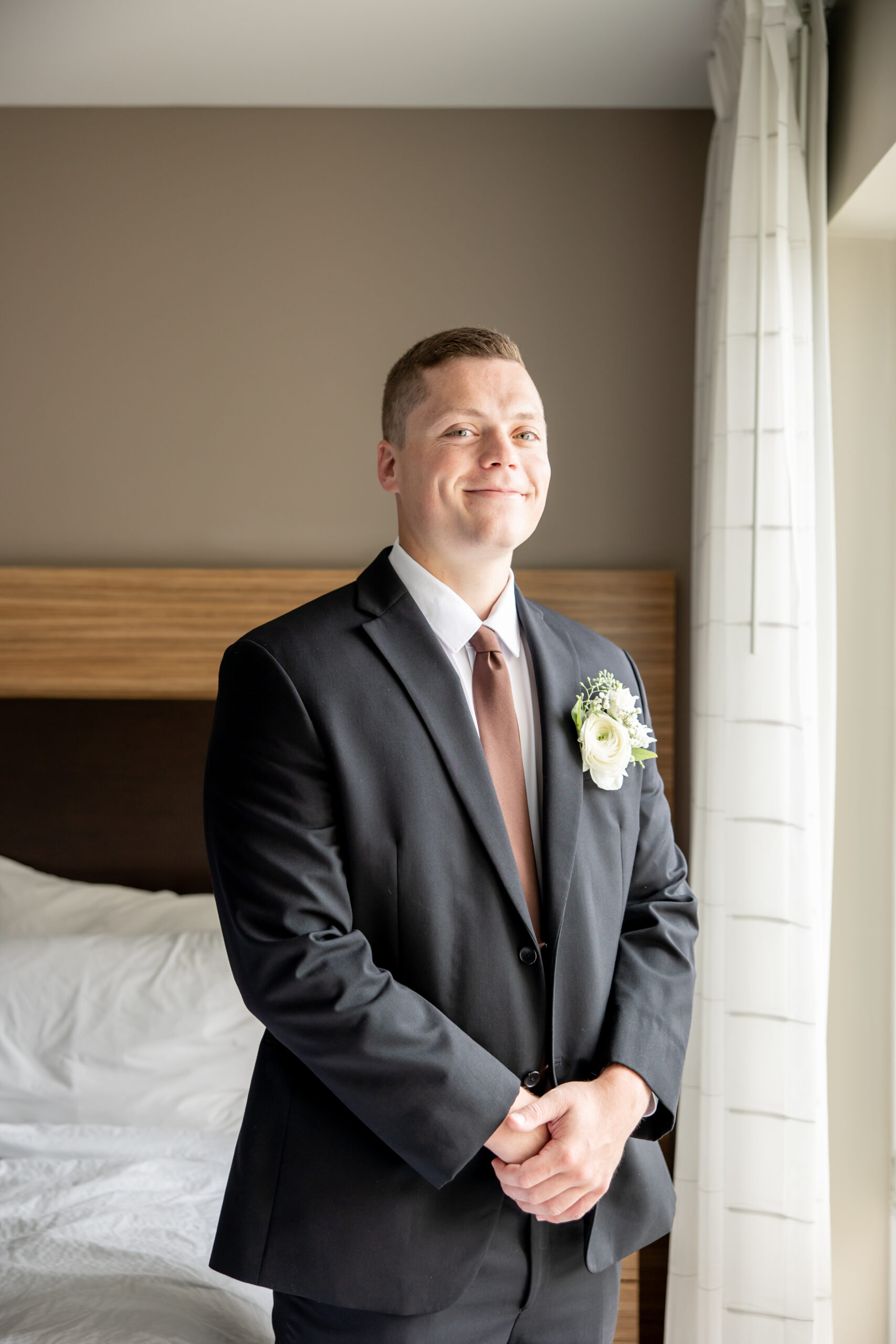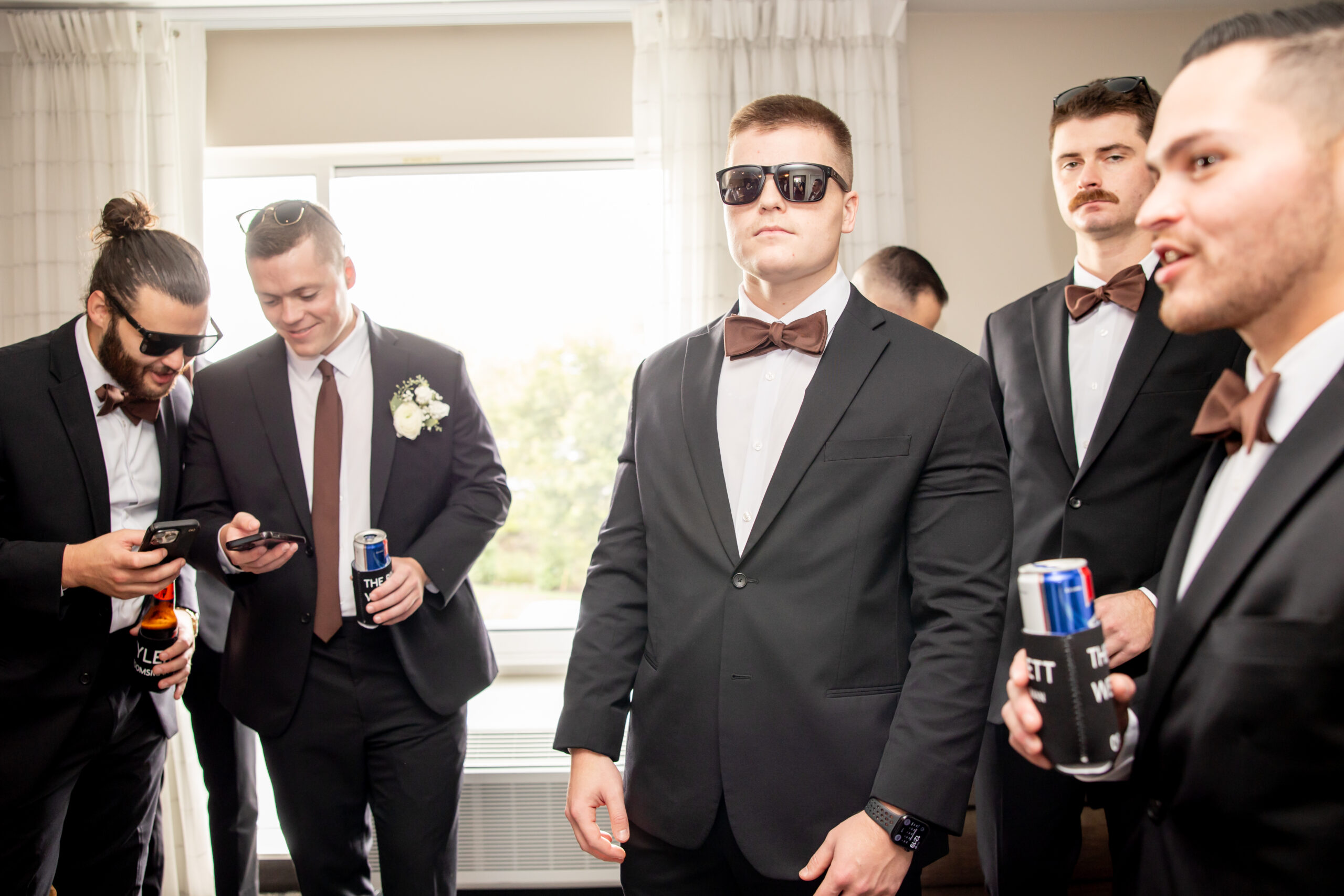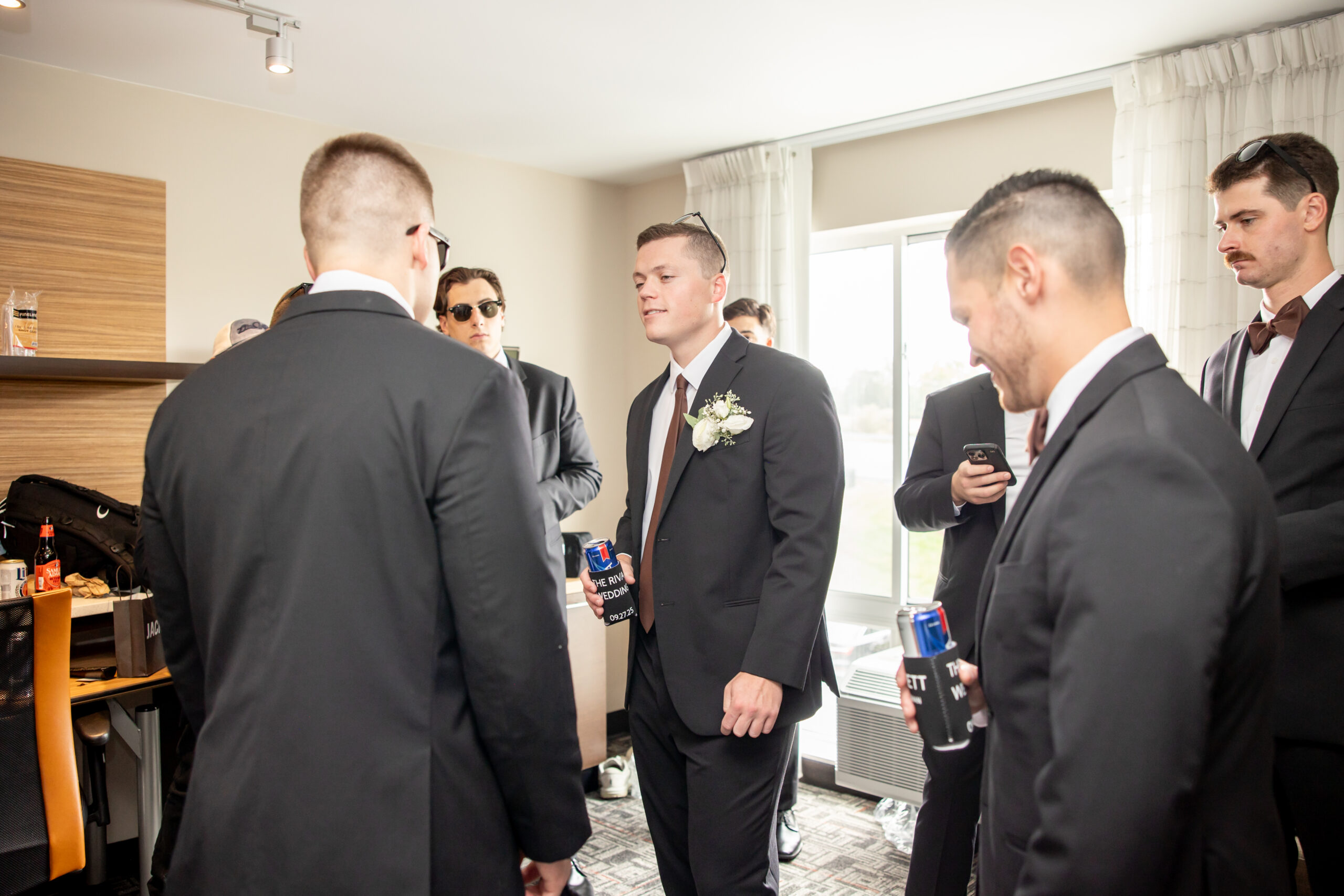 The morning started at the hotel with rooms full of excitement as both sides of the bridal party got ready. I spent the morning with the girls while my second shooter captured the guys, and with nine bridesmaids and nine groomsmen, every space was filled with energy. It felt like a party from the very start.