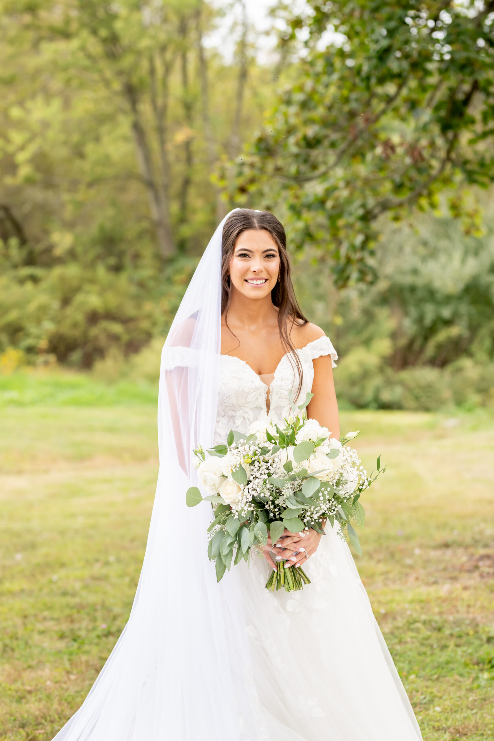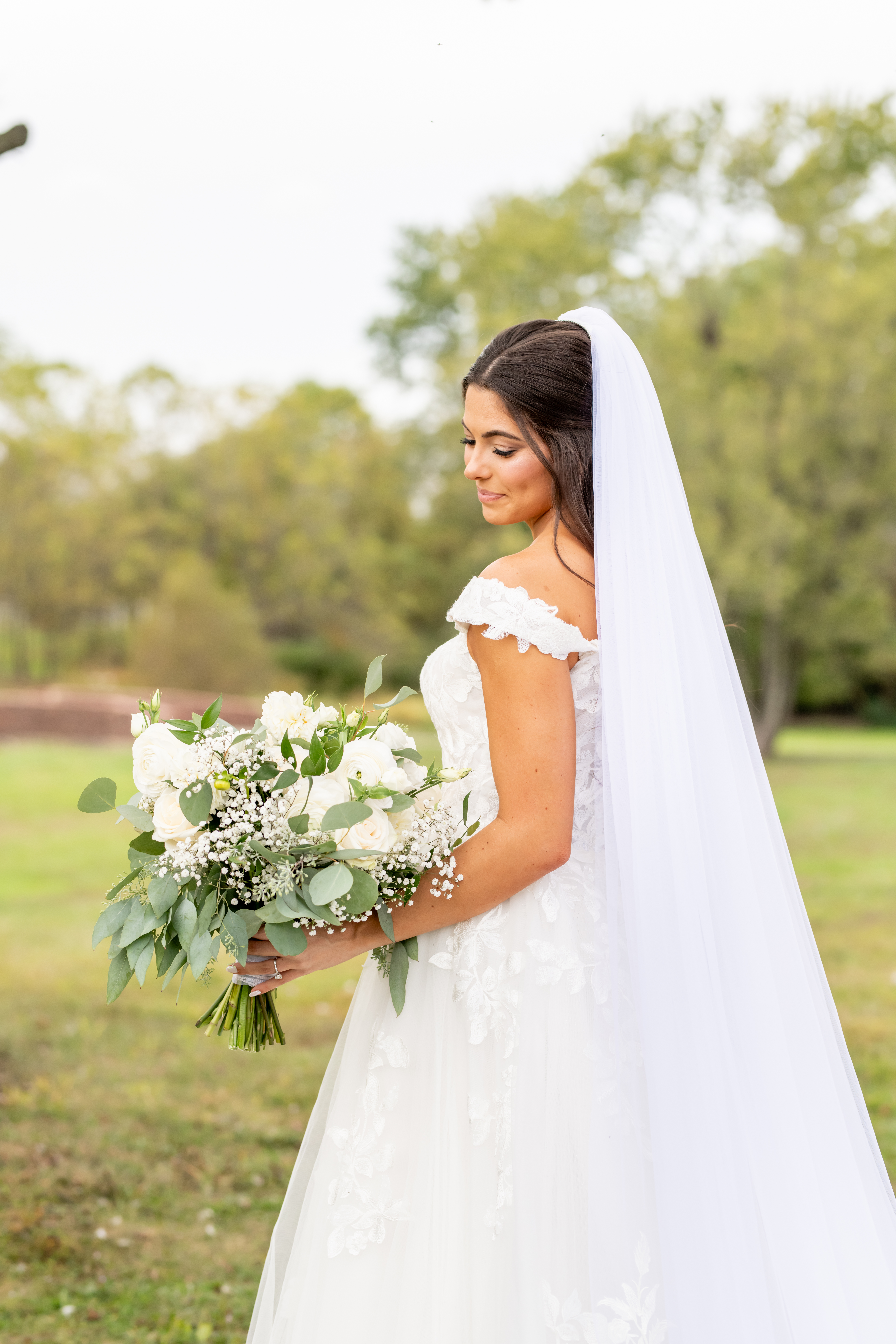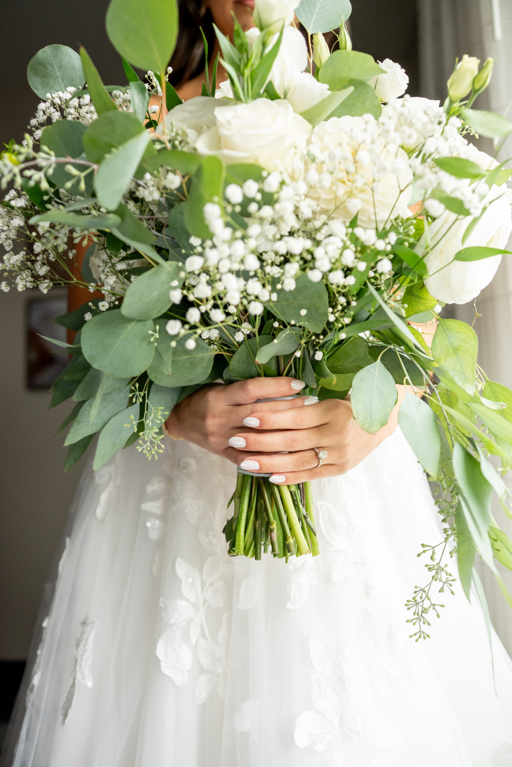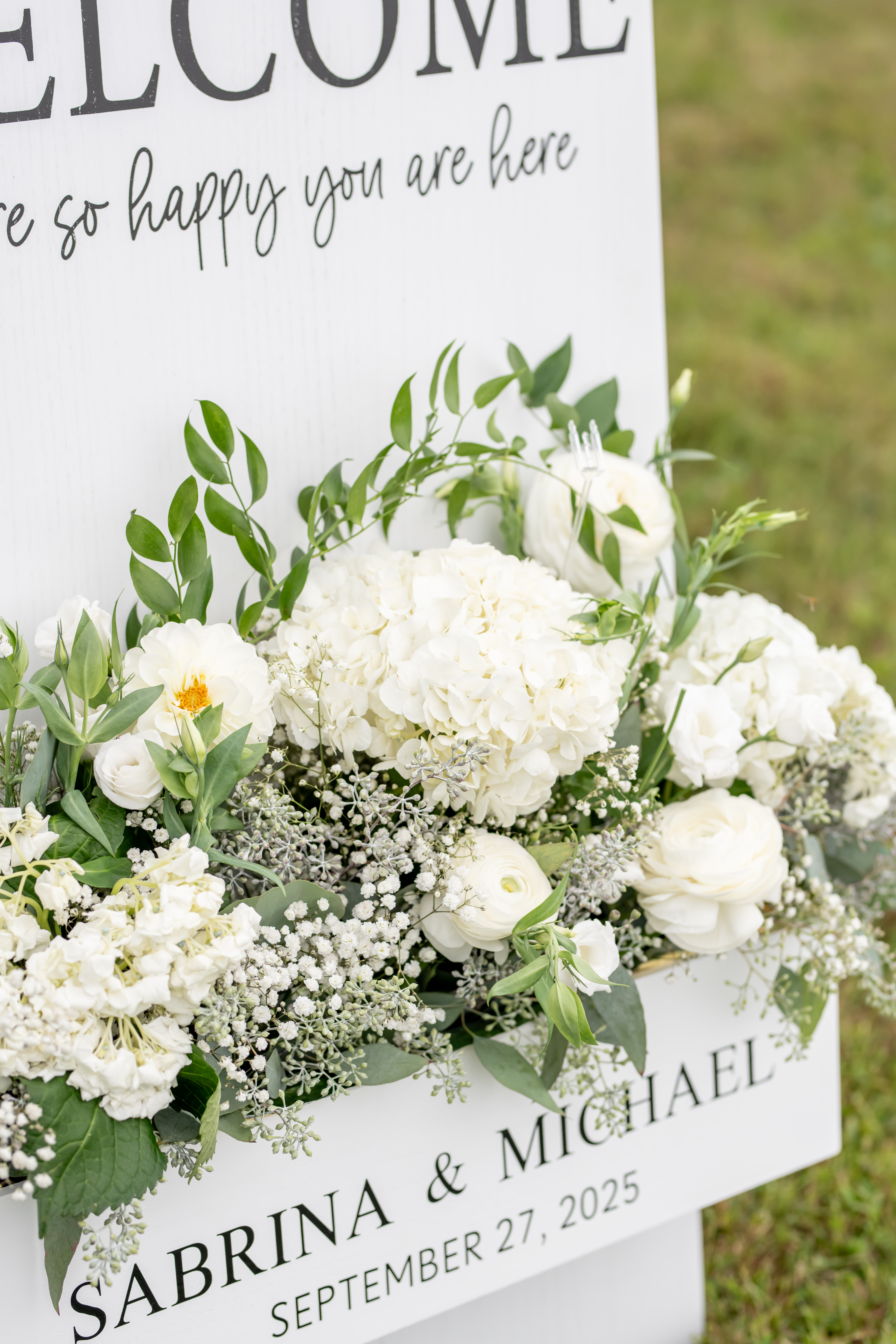 Sabrinaās style was absolutely impeccable, with soft creams, whites, greenery, and subtle gold touches tying everything together beautifully. Her bouquet was large, rustic, and full of texture, blending white blooms with lush greenery that felt natural and romantic. Every detail reflected her elegant yet earthy vision perfectly.