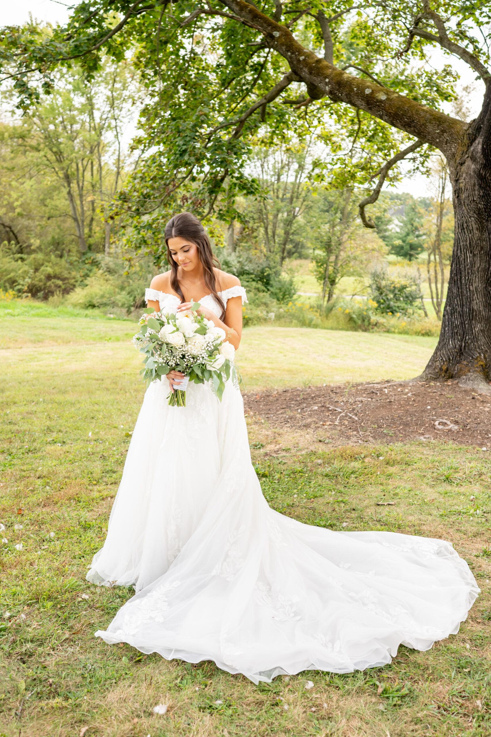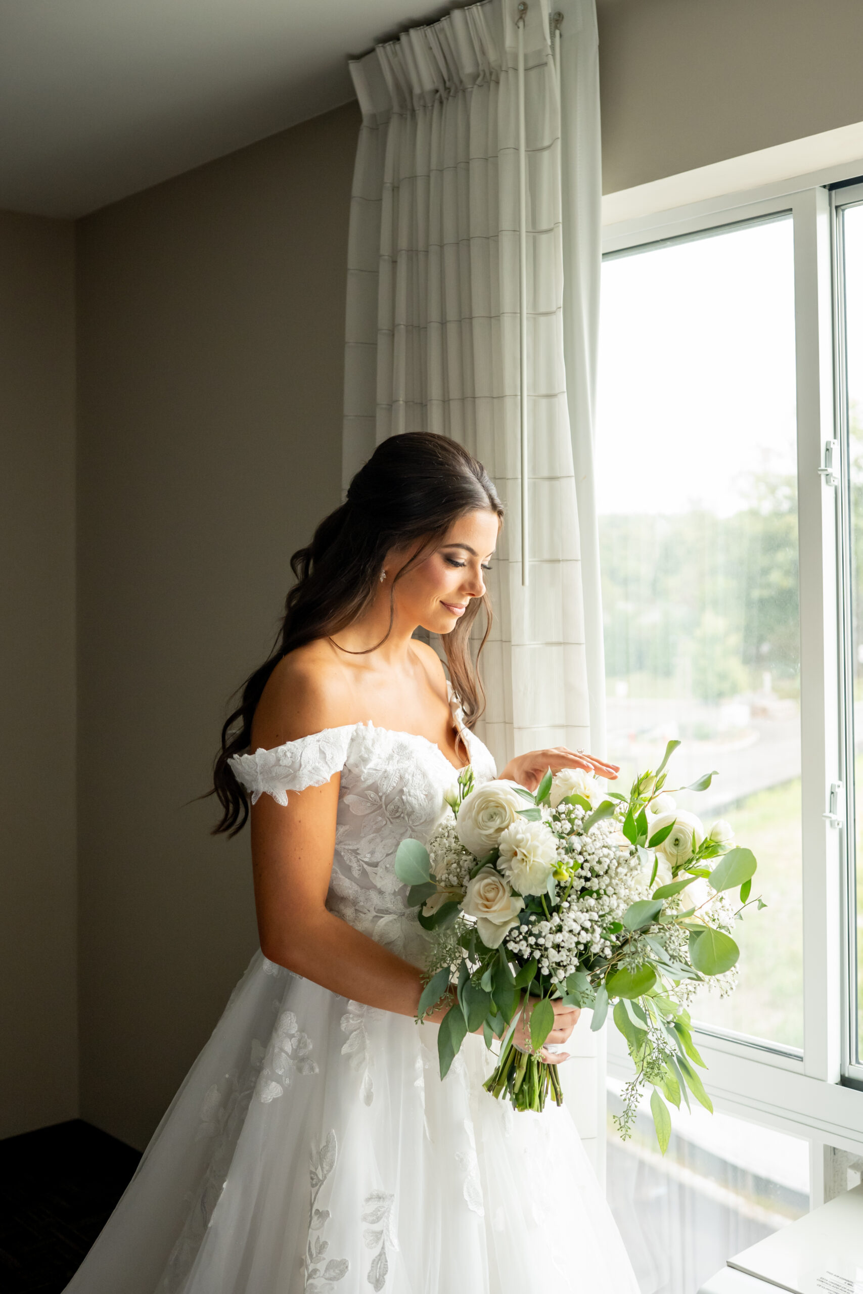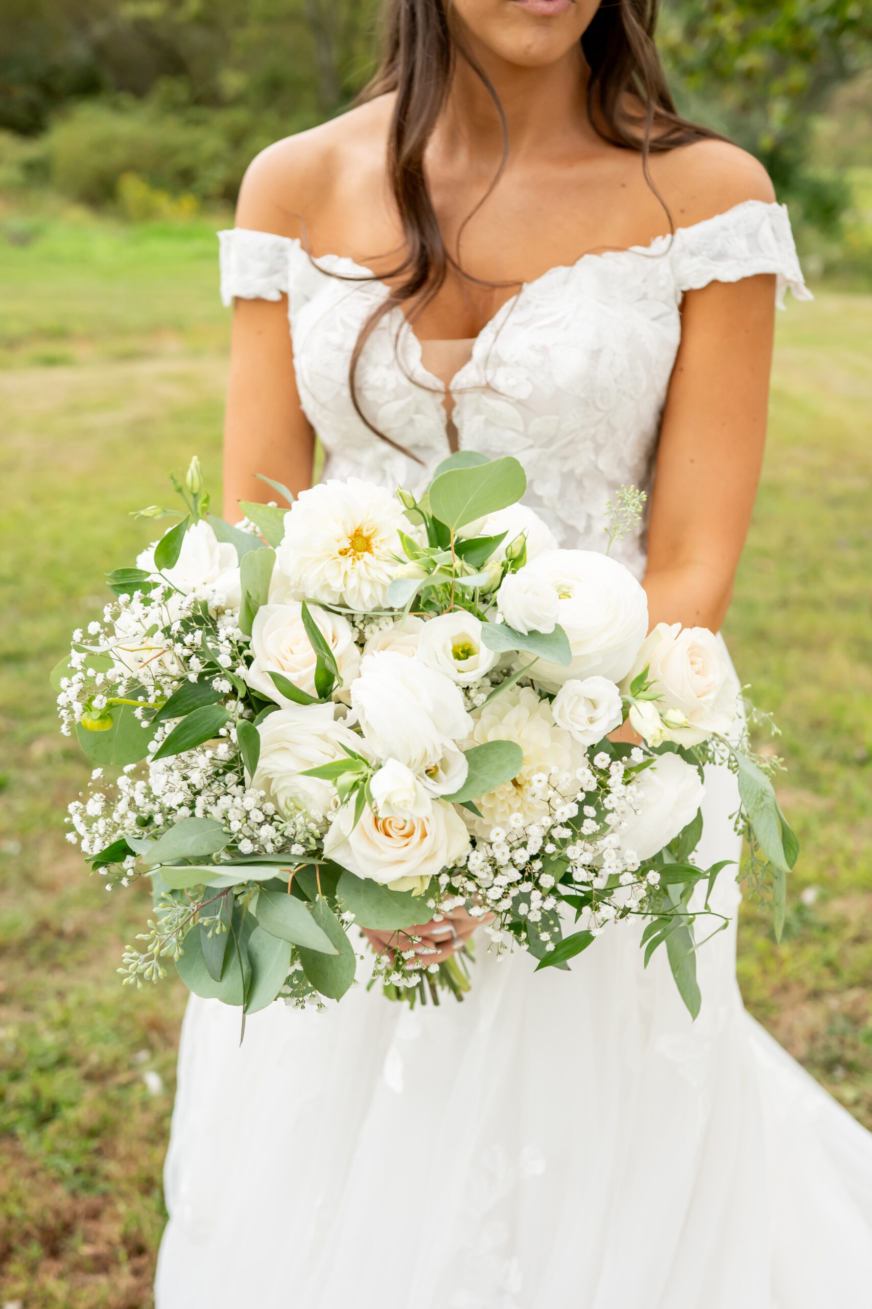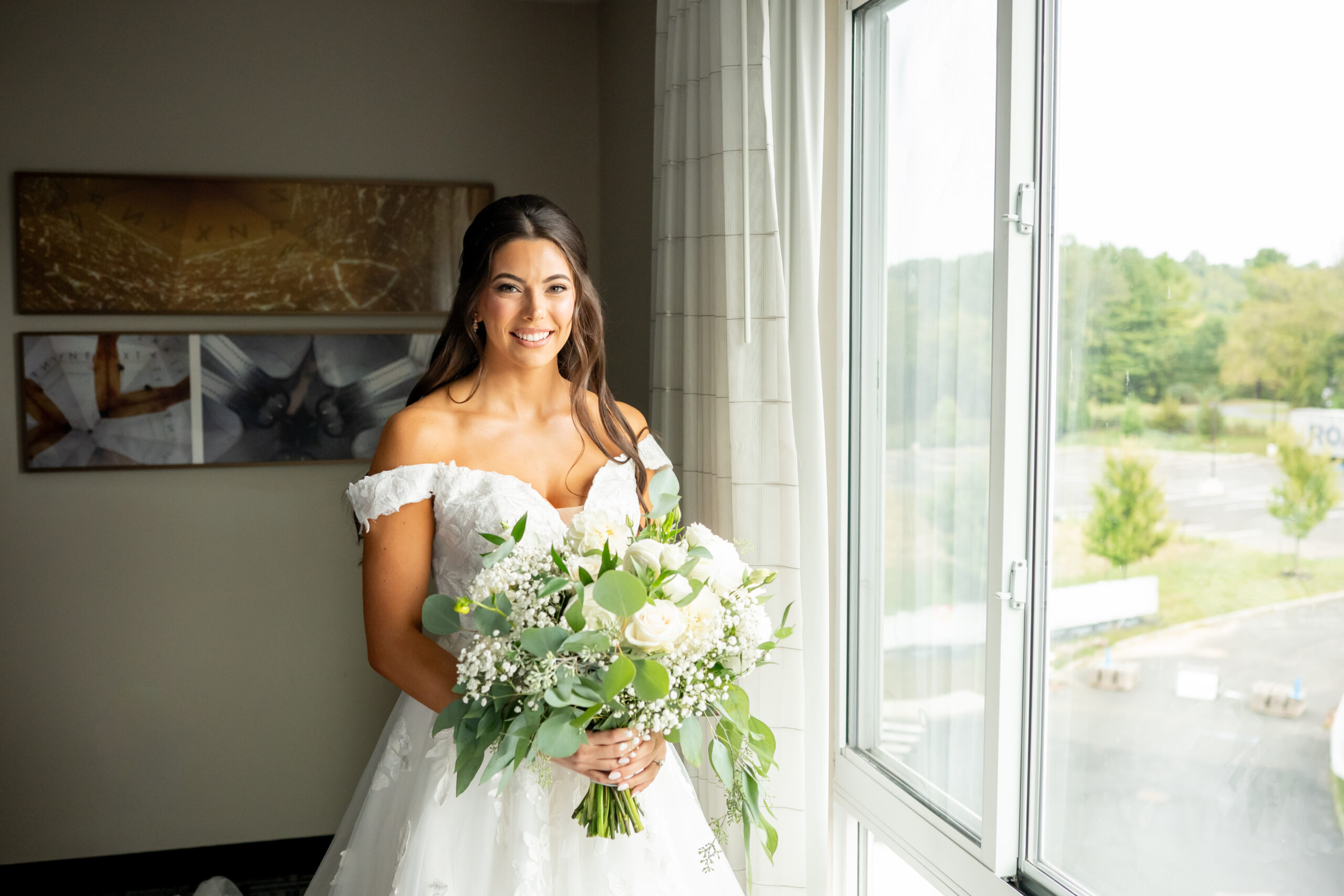 Sabrinaās style was absolutely impeccable, with soft creams, whites, greenery, and subtle gold touches tying everything together beautifully. Her bouquet was large, rustic, and full of texture, blending white blooms with lush greenery that felt natural and romantic. Every detail reflected her elegant yet earthy vision perfectly.