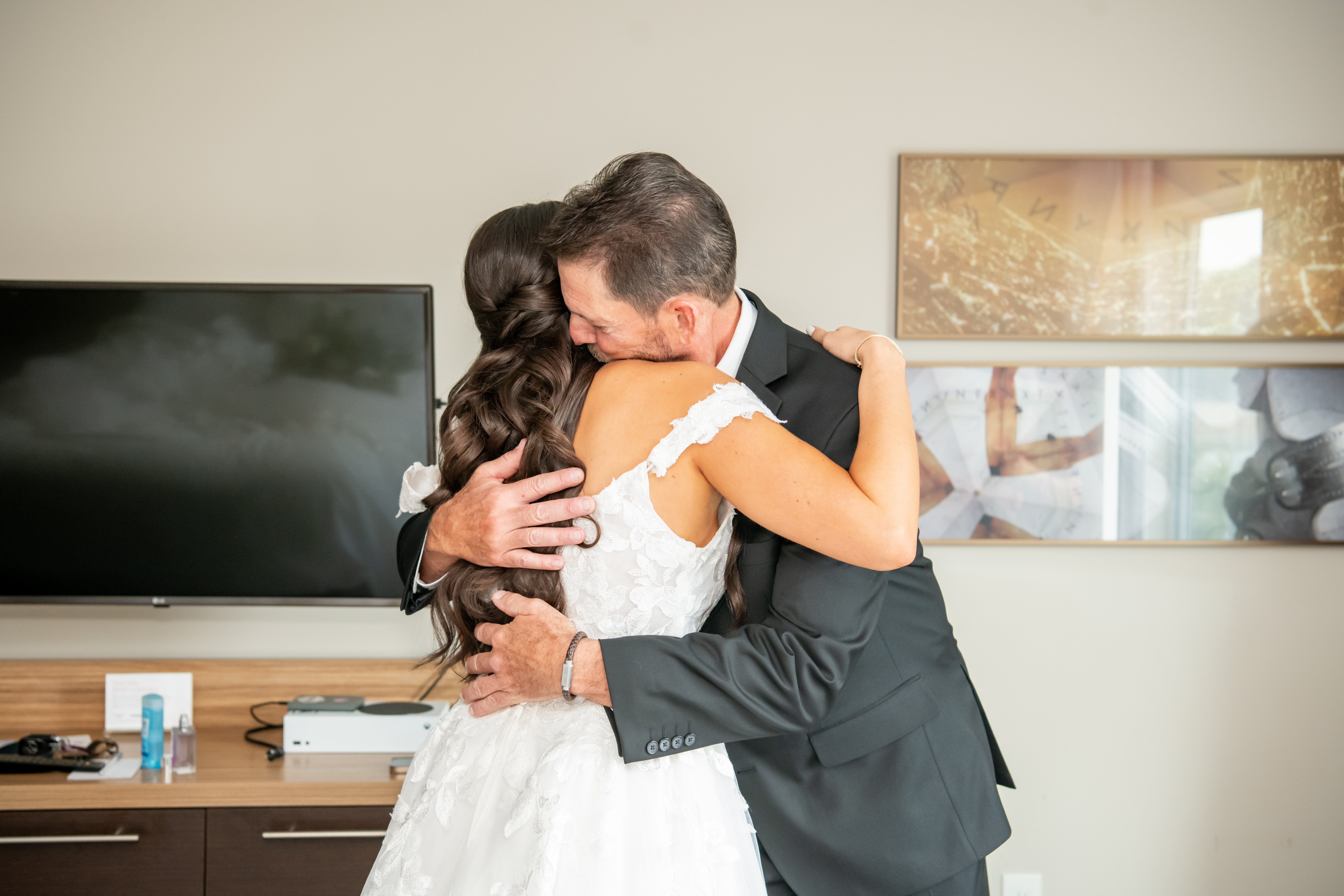 Sabrina and Mike could hardly wait to see each other for their first look. When Mike finally turned around, he immediately ran to Sabrina and wrapped her in a hug, trying to hide his happy tears. Sabrina laughed and reassured him while telling him how much she missed him and how excited she was that it was finally their wedding day.