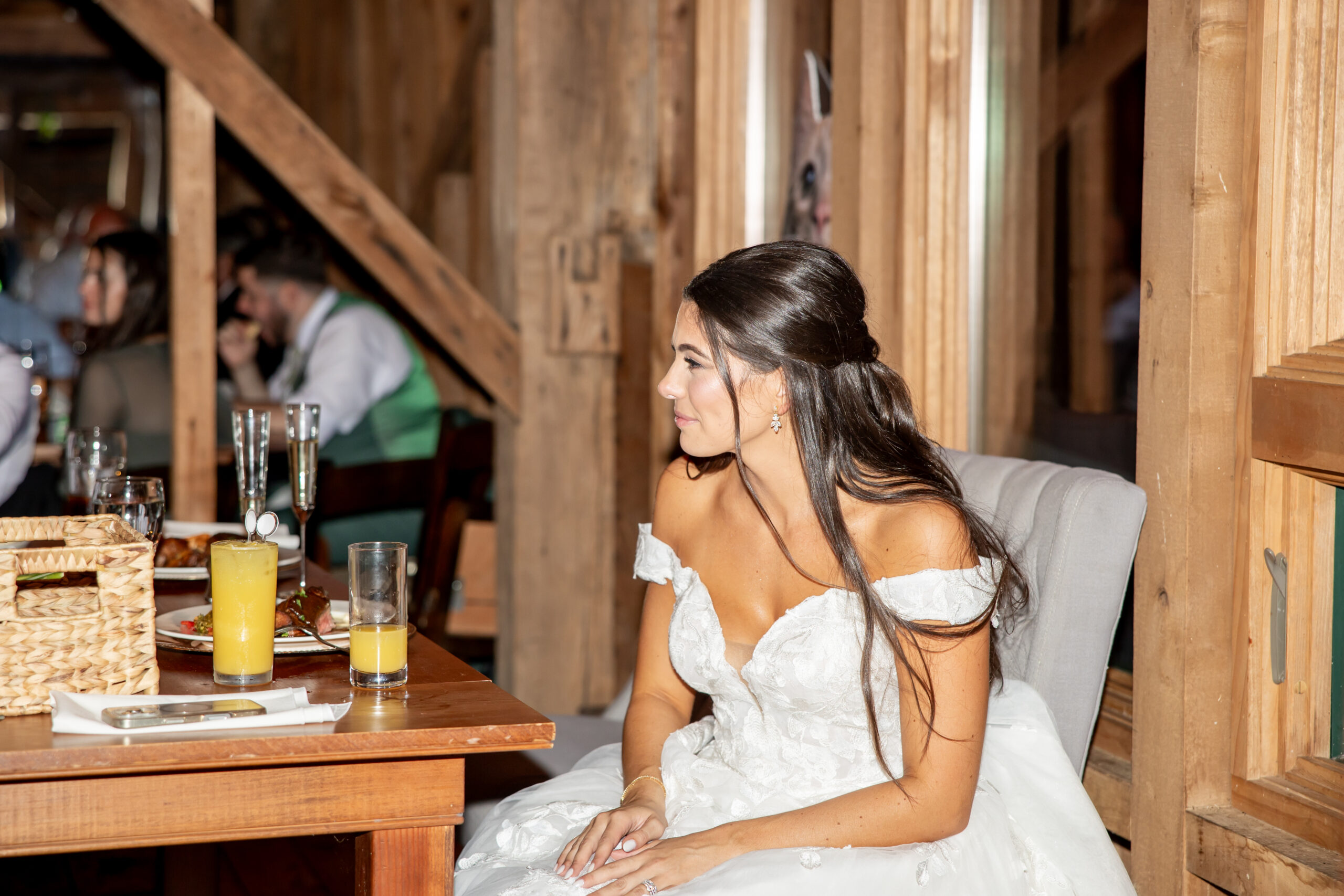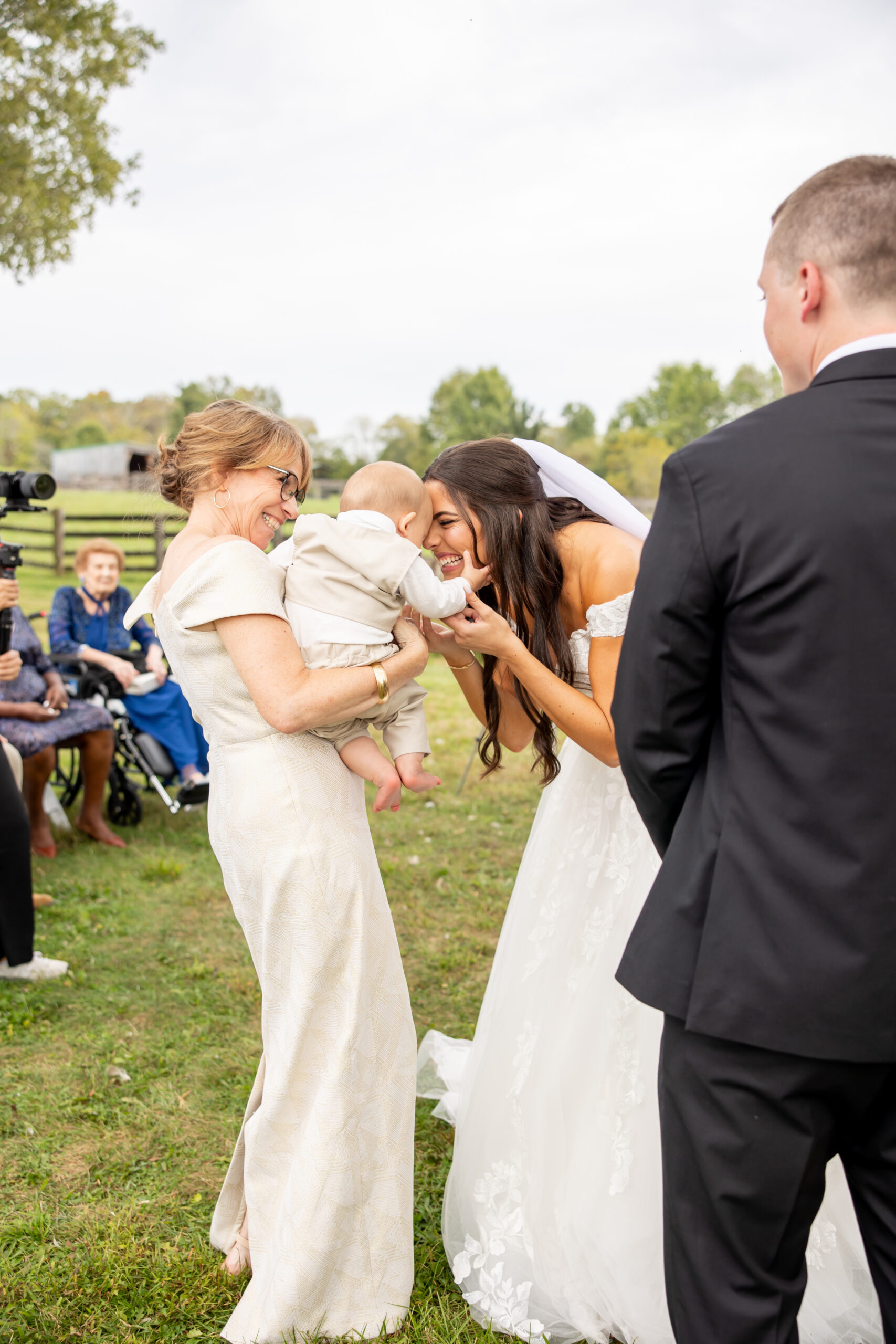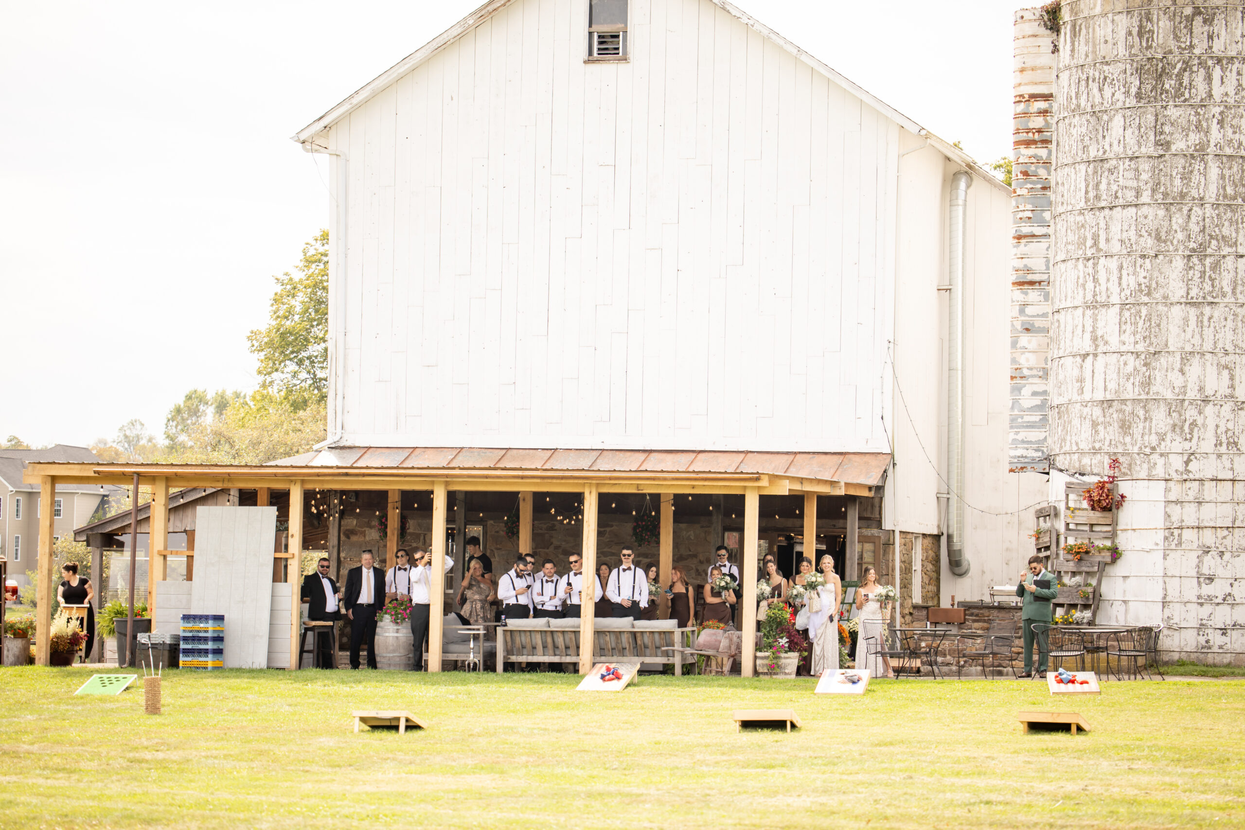 There was also a champagne wall that guests absolutely loved. Everyone mingled, laughed, and enjoyed the beautiful fall-like weather together. It felt relaxed, joyful, and perfectly suited for the farm setting.