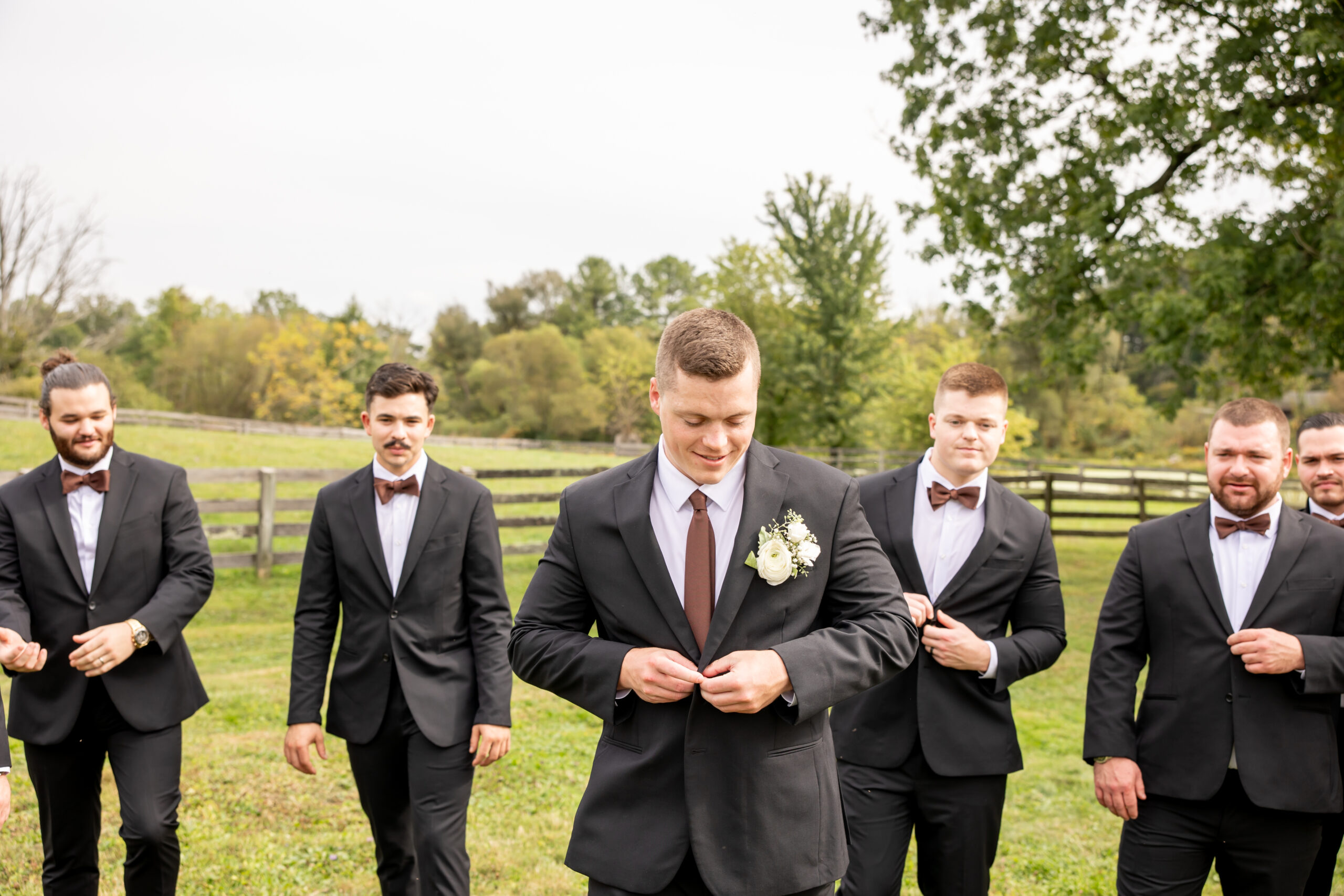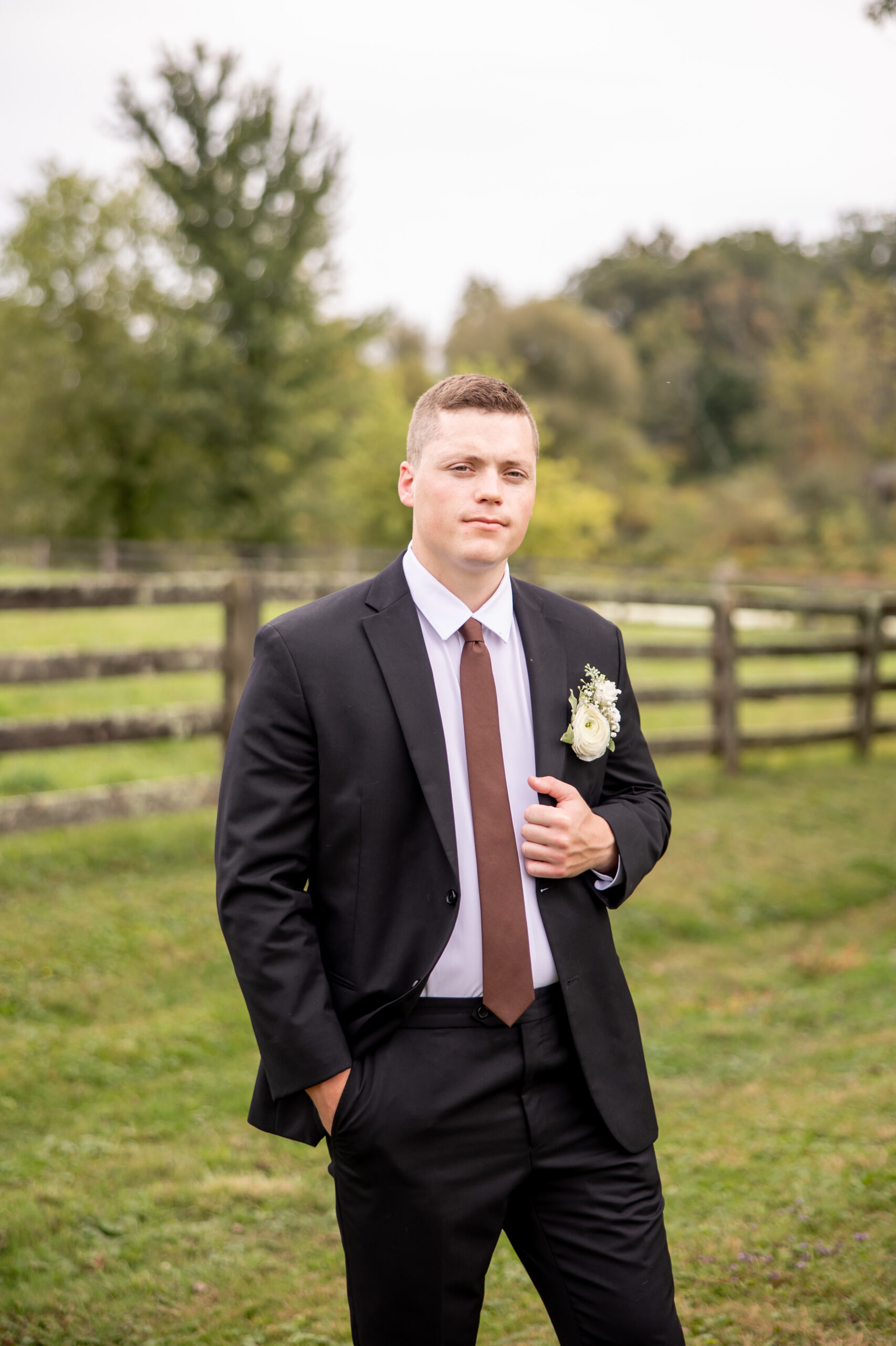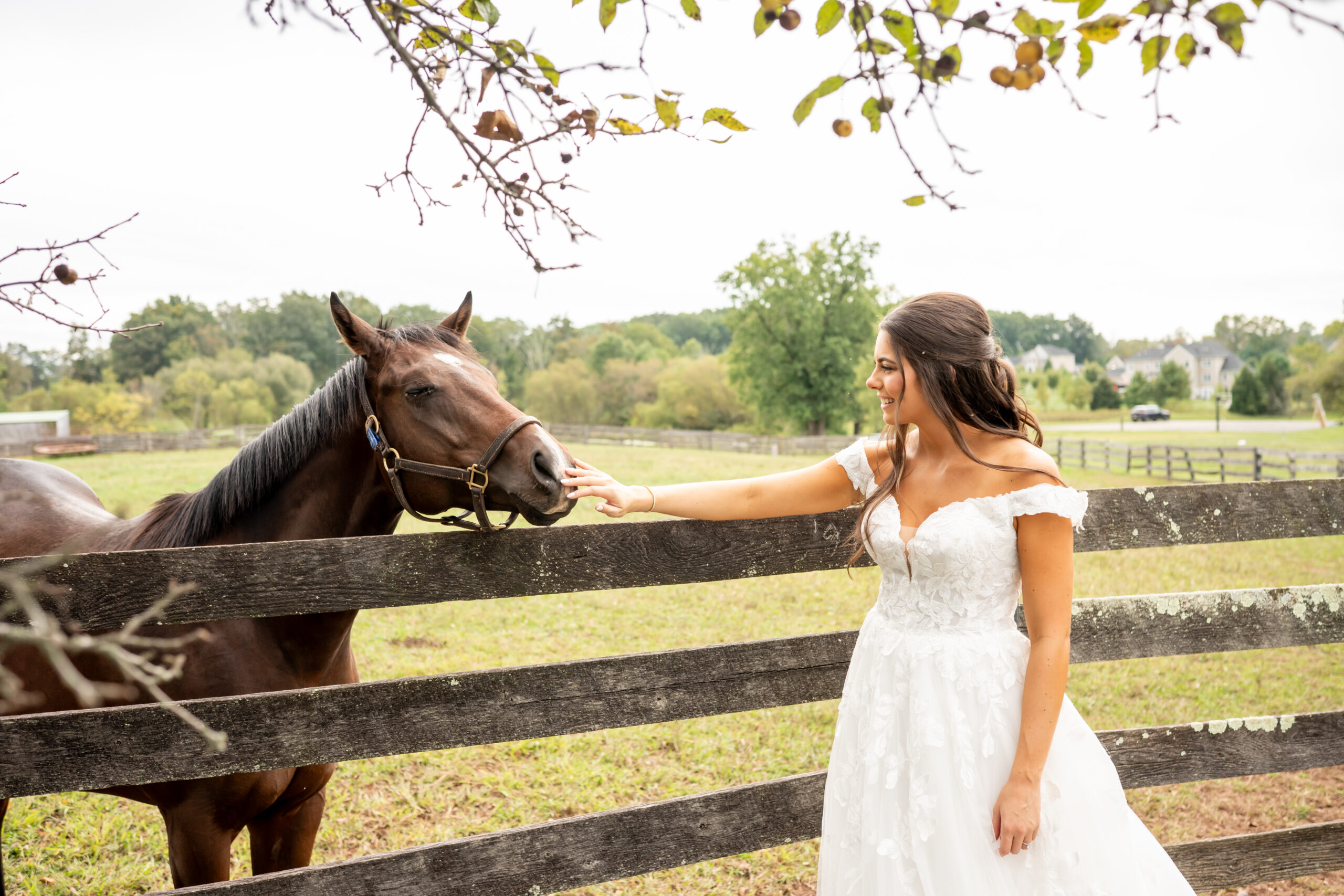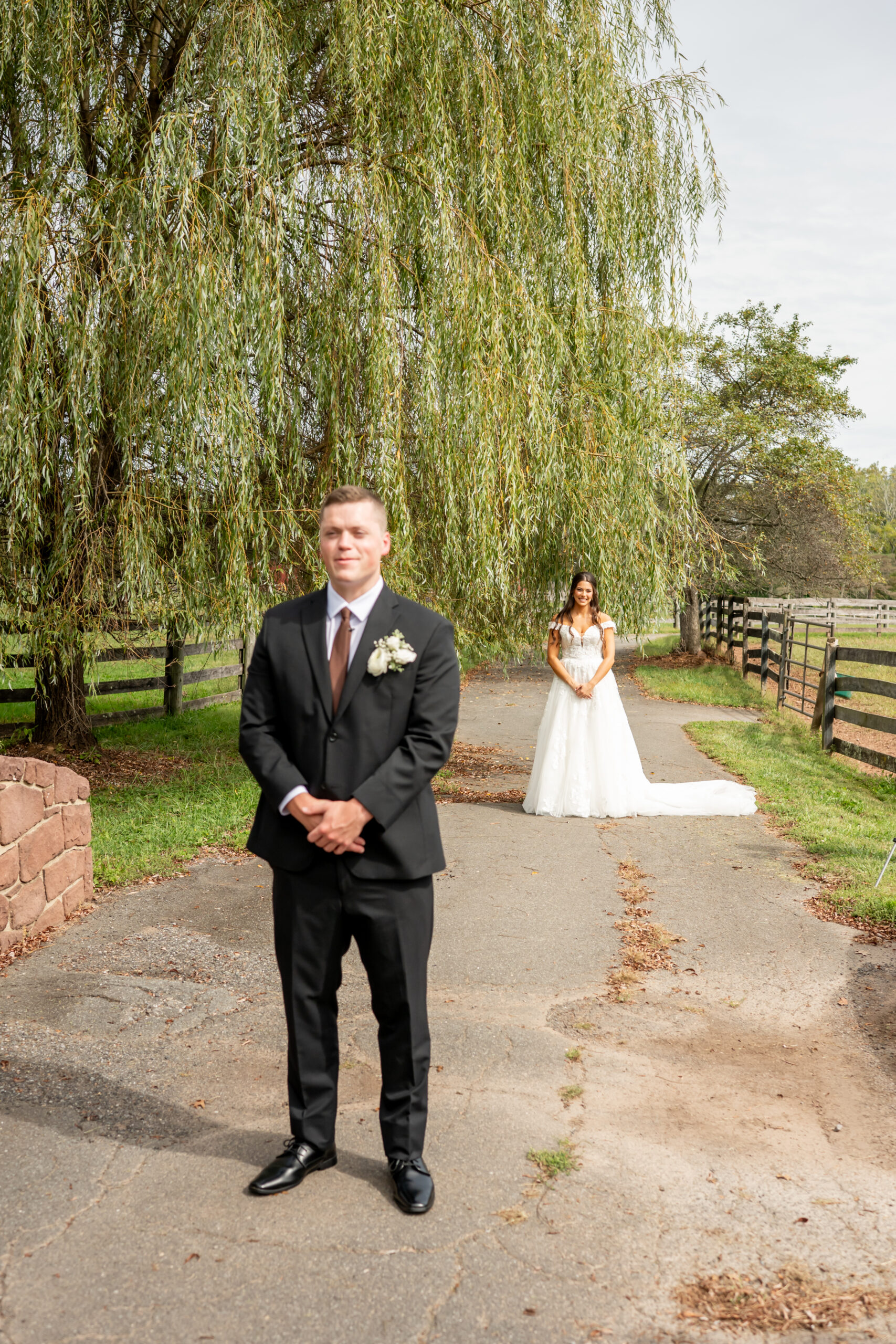 After their vows, we explored the farm grounds for portraits, and every spot felt magical. We even took a few photos with one of the horses, who tried to nibble Mikeās boutonniere right off his jacket, making everyone laugh. It was such a fun and unforgettable moment.