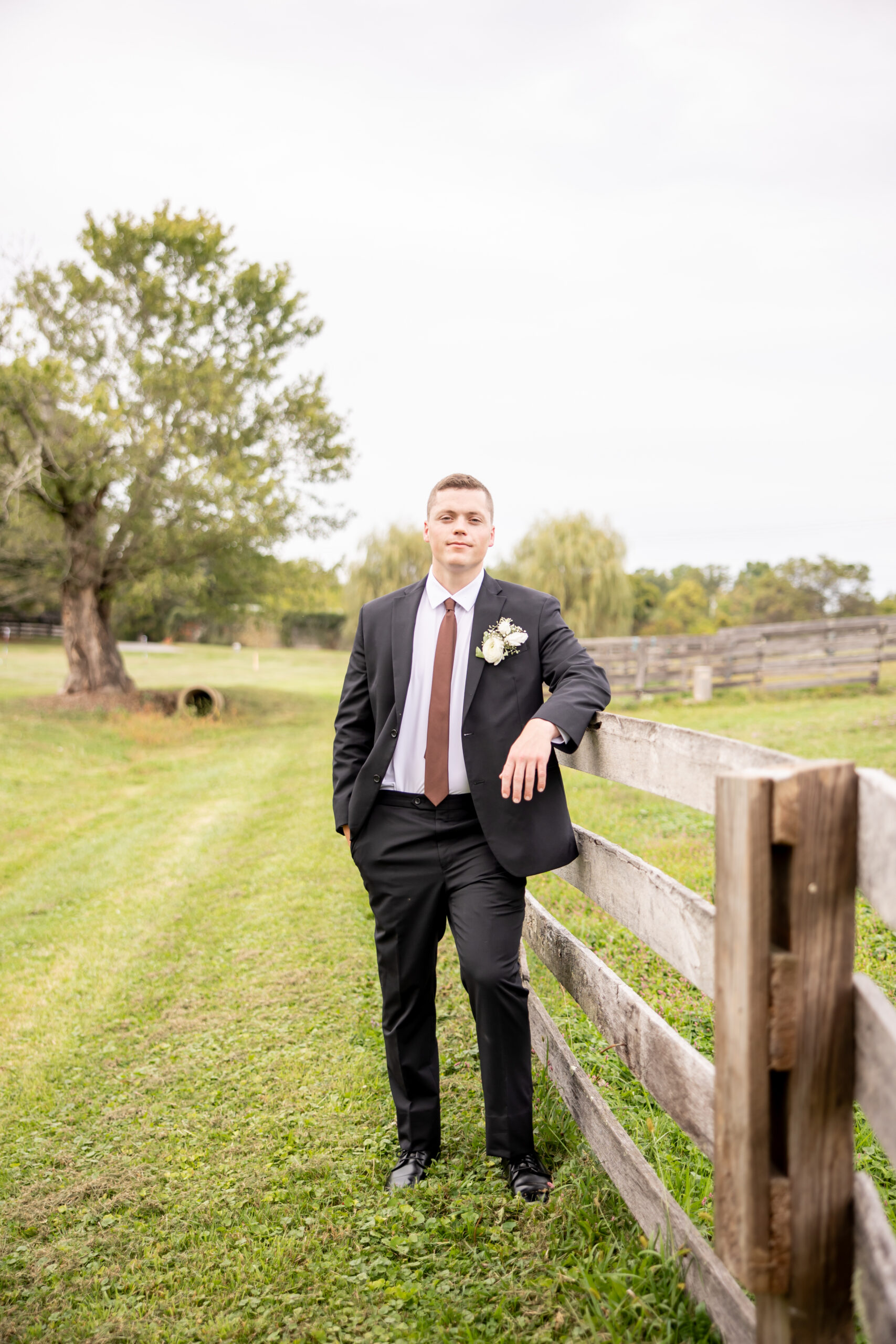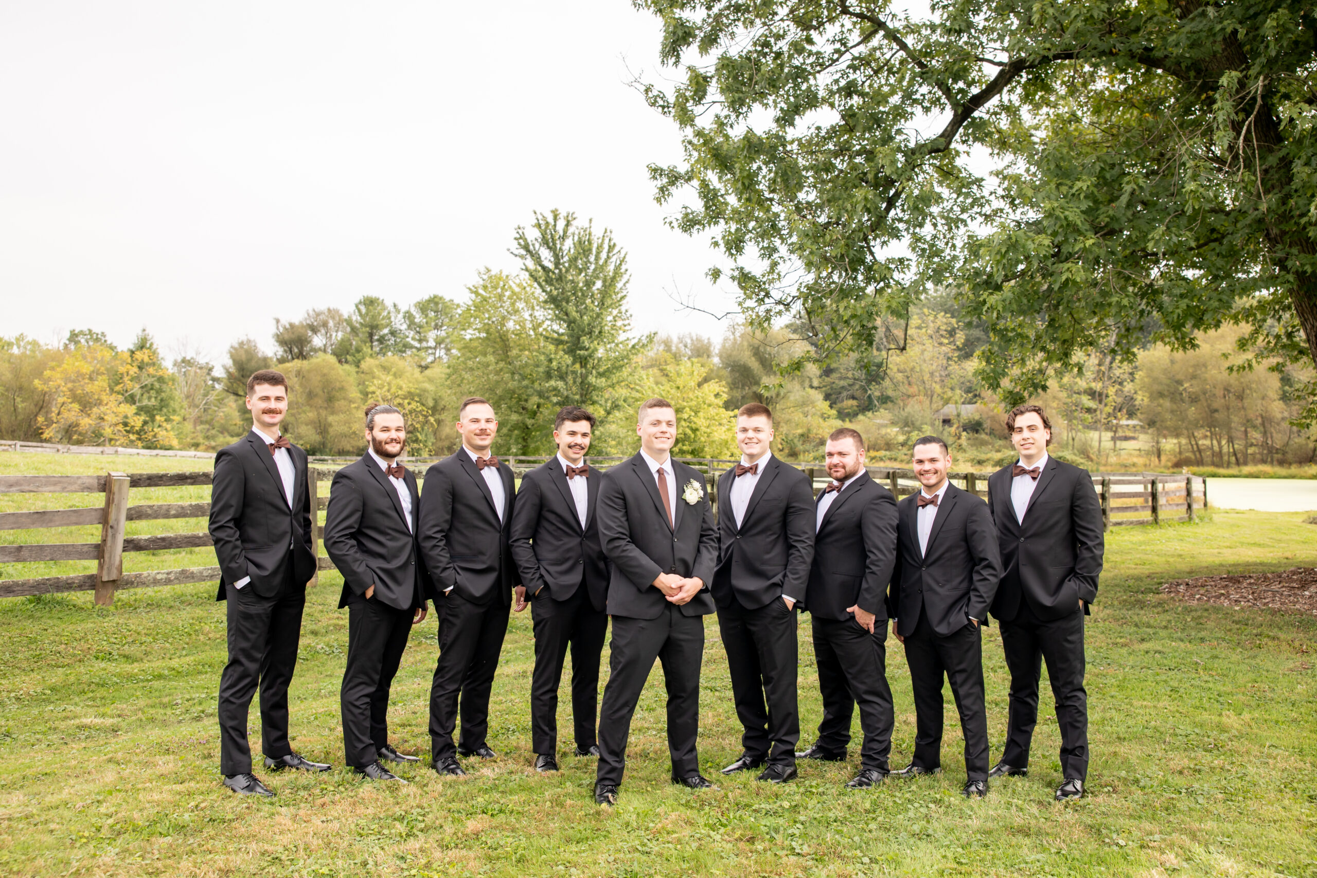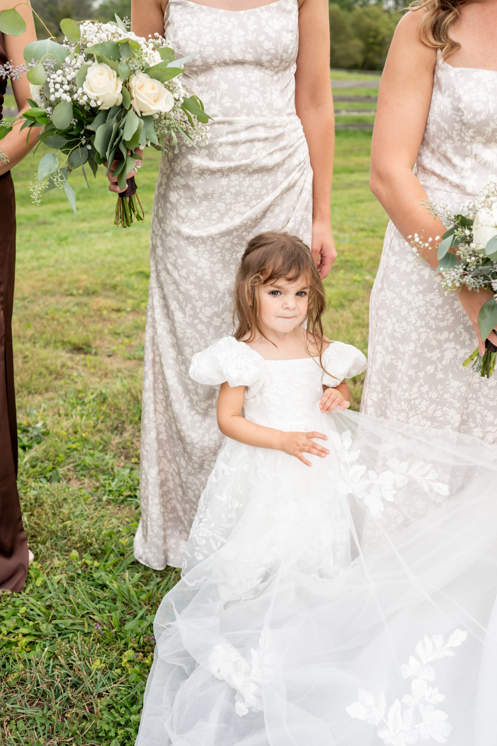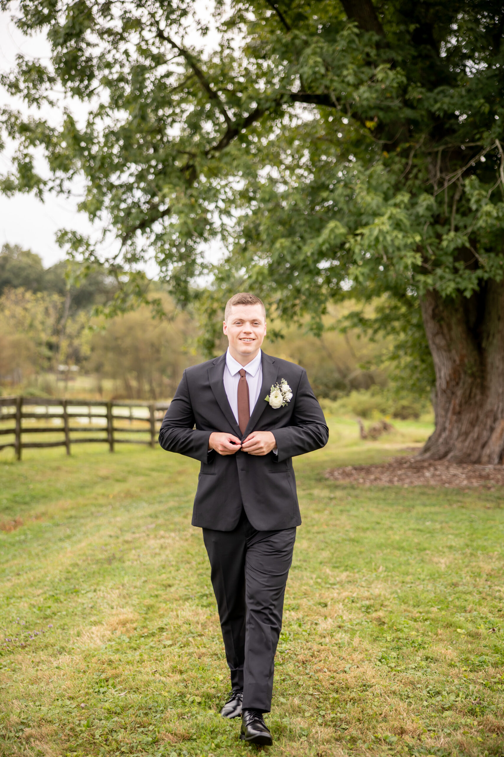 Once everyone was ready, we headed to the venue, the stunning Sterlingbrook Farms. The property is a beautiful historic farm filled with acres of rolling land, large old trees, blooming flowers, and rustic barns. Horses graze nearby, adding so much charm and character to the peaceful countryside setting.