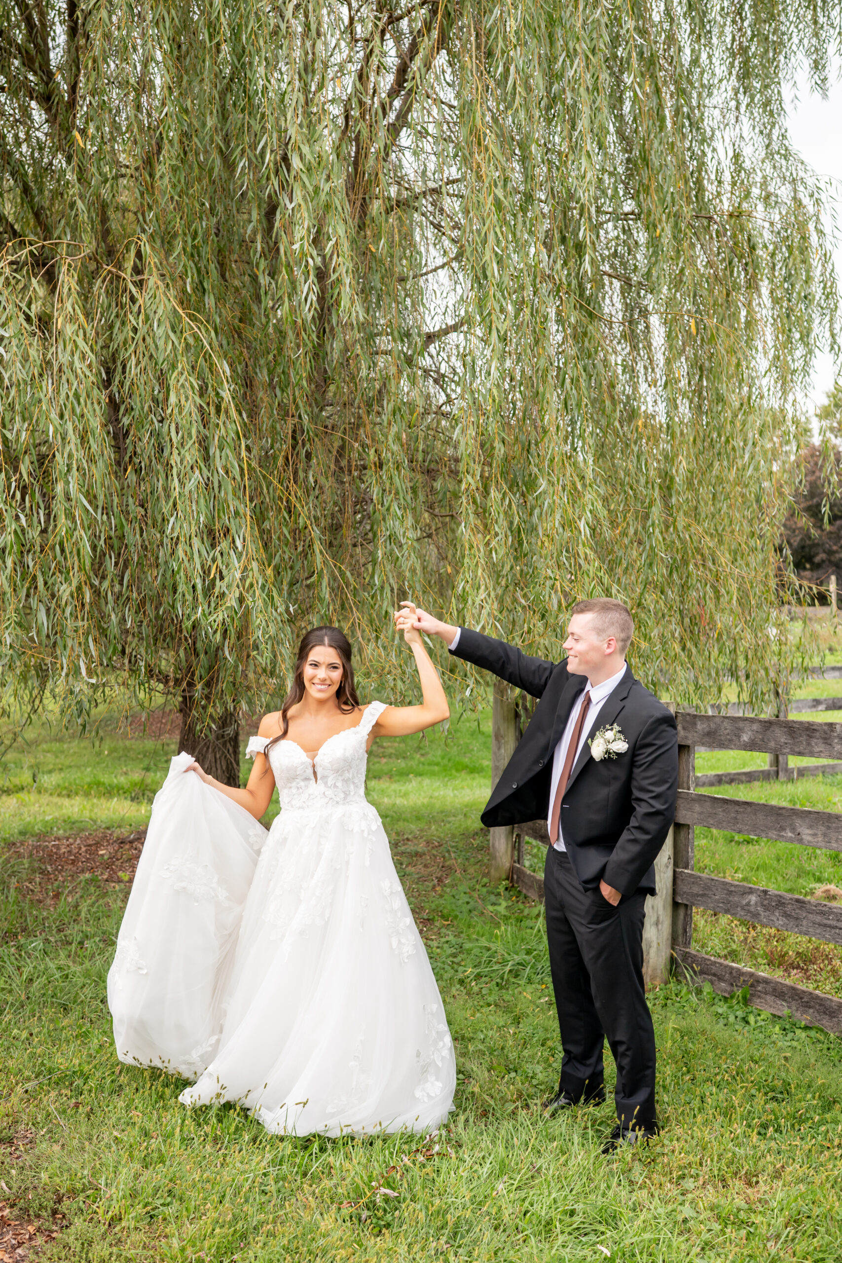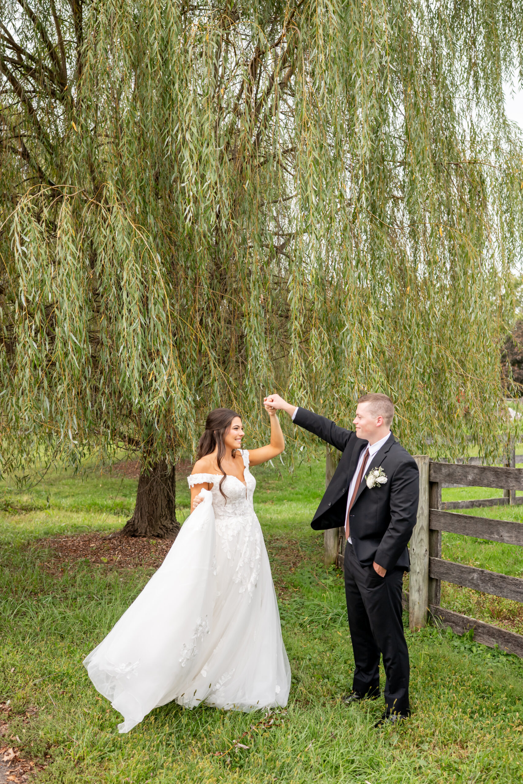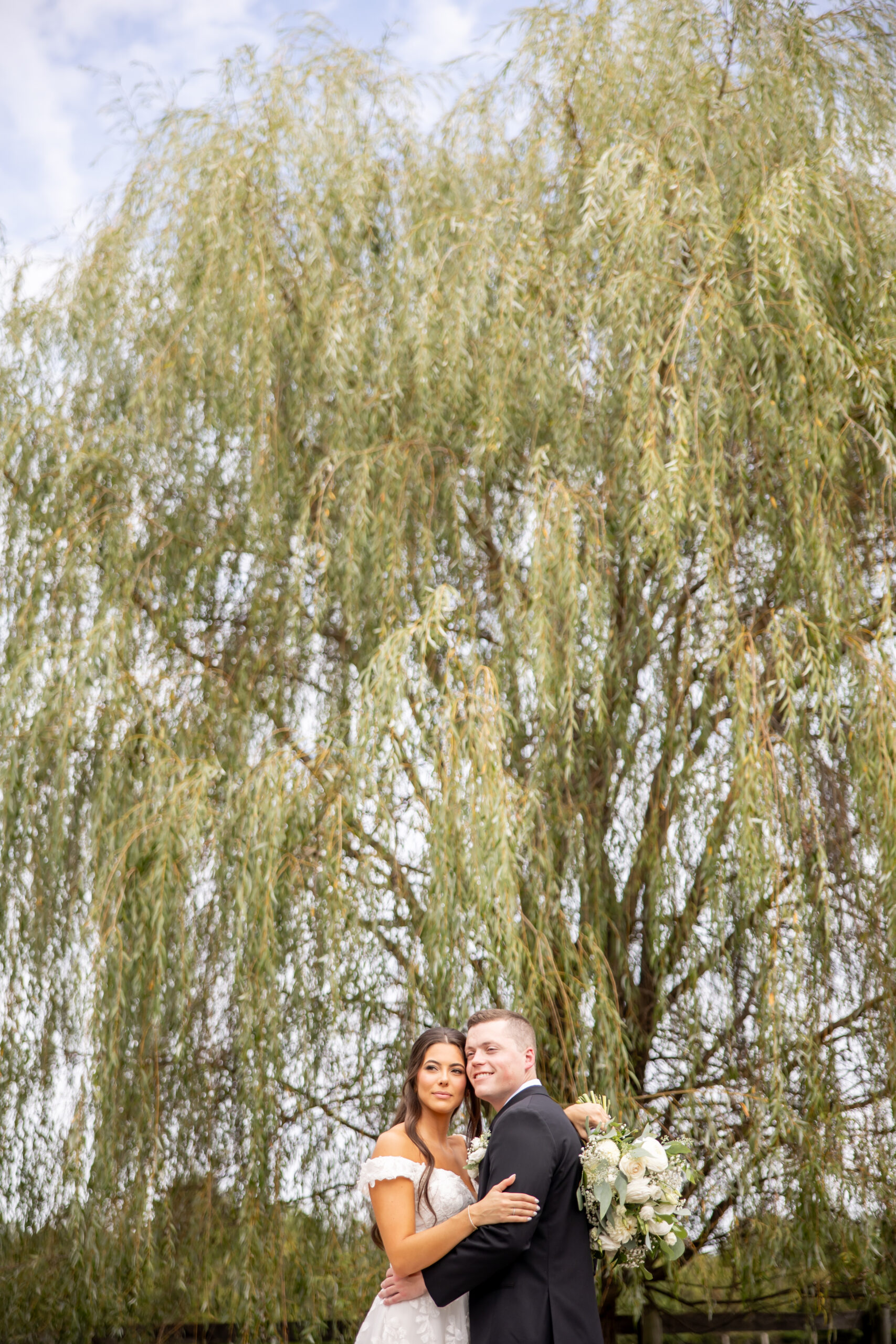 One of my favorite locations was beneath the massive willow tree, where the soft light filtered through the branches so beautifully. It created the dreamiest romantic setting for photos of the two of them together. These moments truly captured their love and joy.