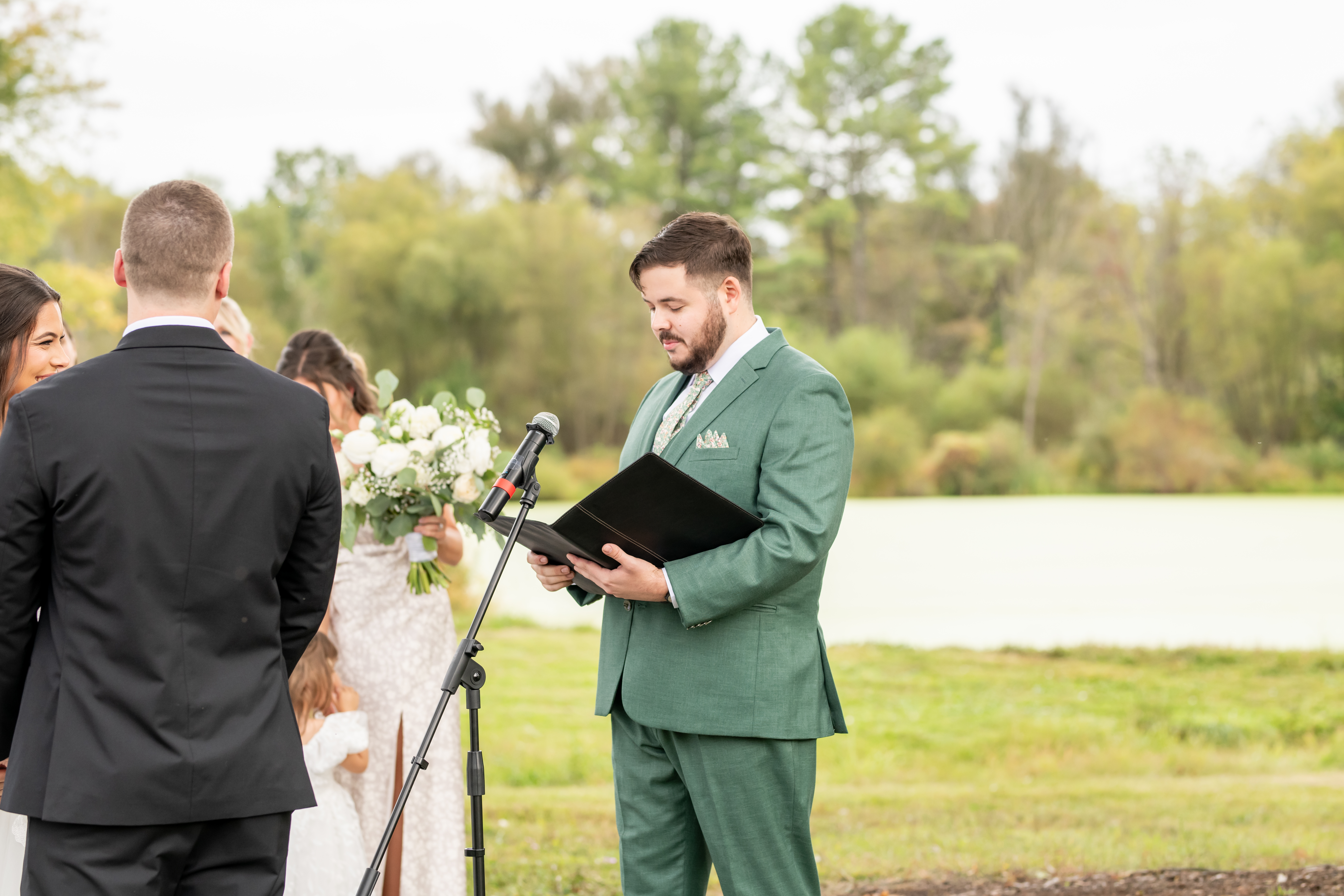 Sabrinaās brother officiated the ceremony after becoming ordained just for them, and he delivered such a heartfelt and meaningful message. After exchanging rings and sealing it with a kiss, they were officially pronounced husband and wife. They walked back down the aisle cheering and smiling as everyone celebrated.