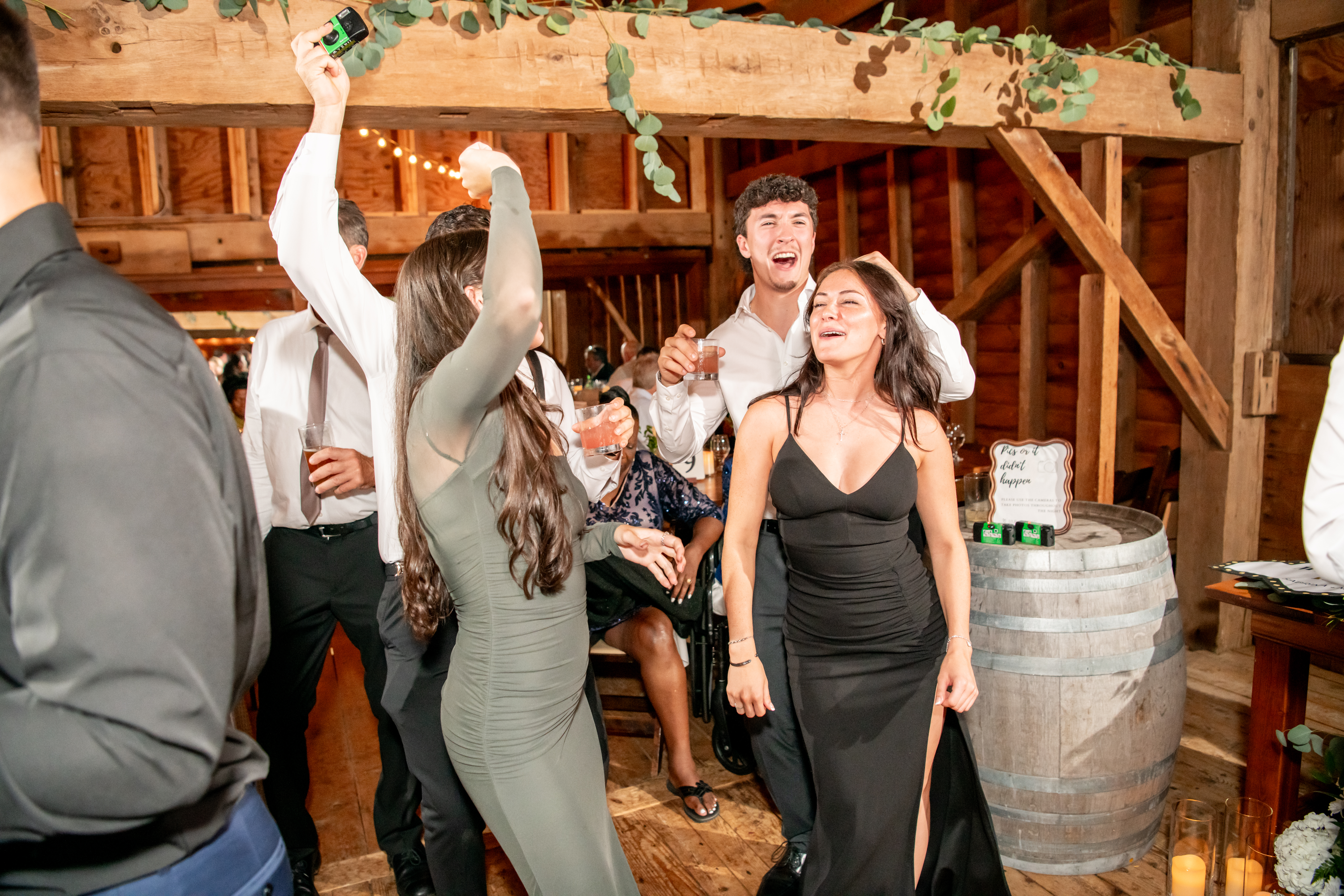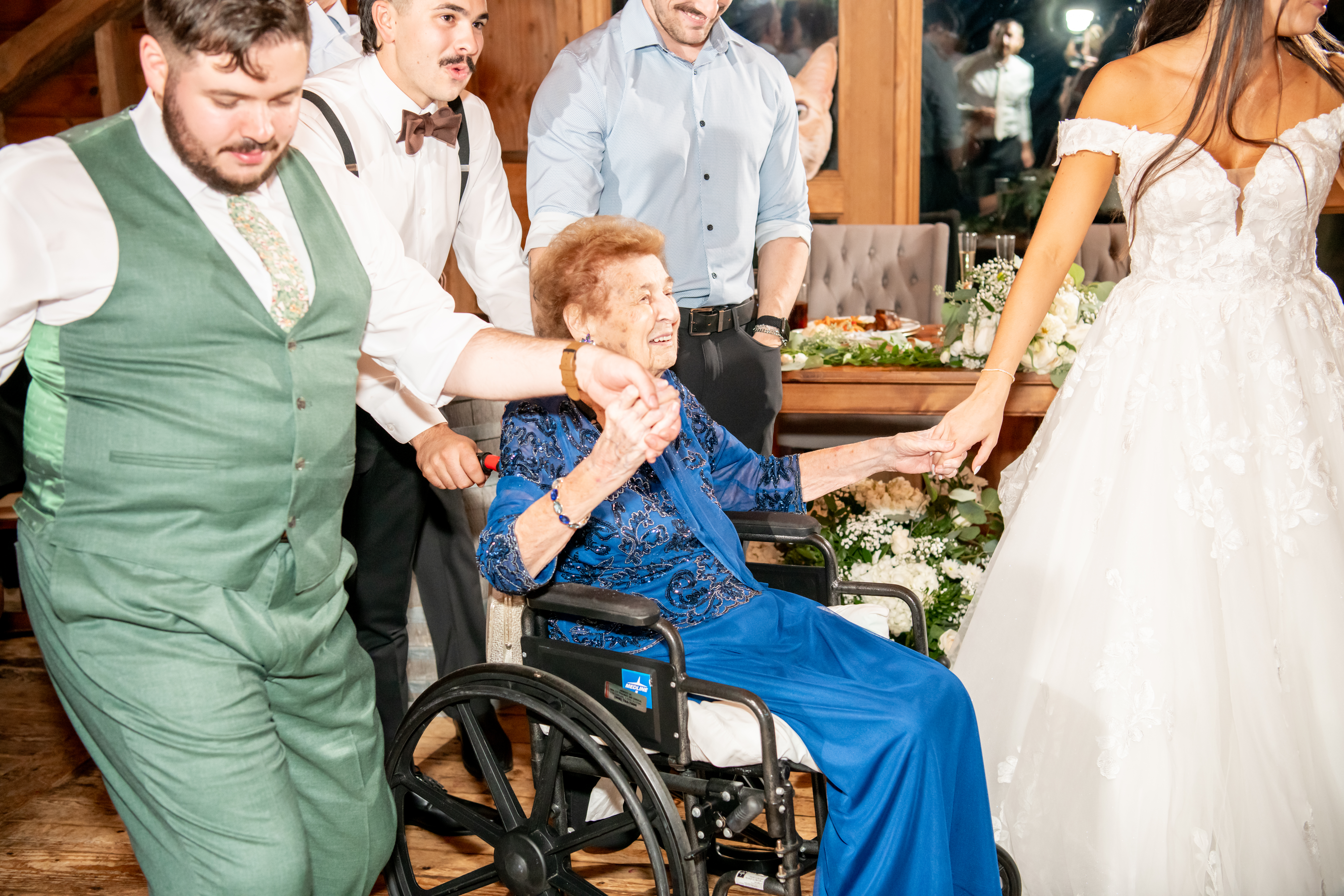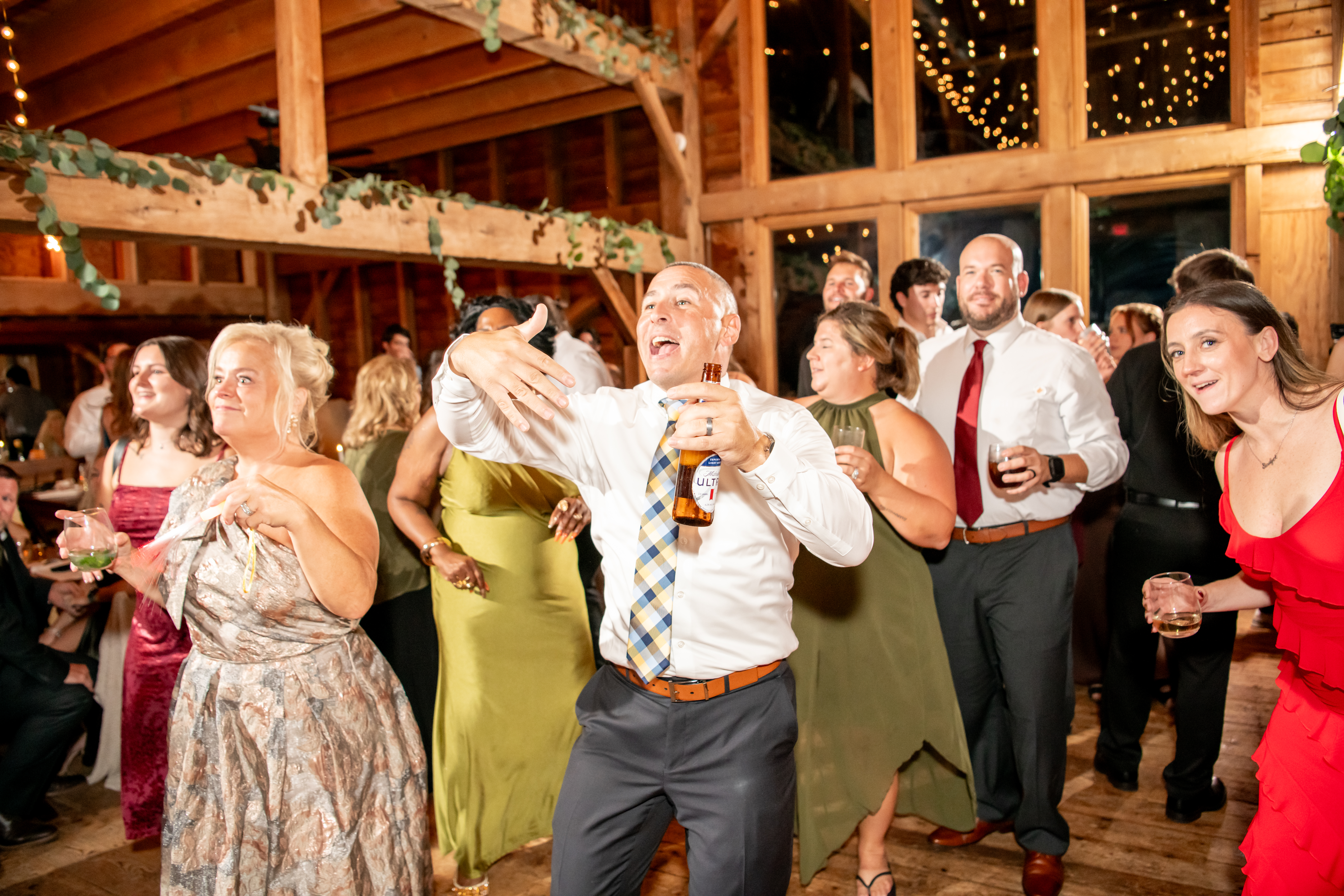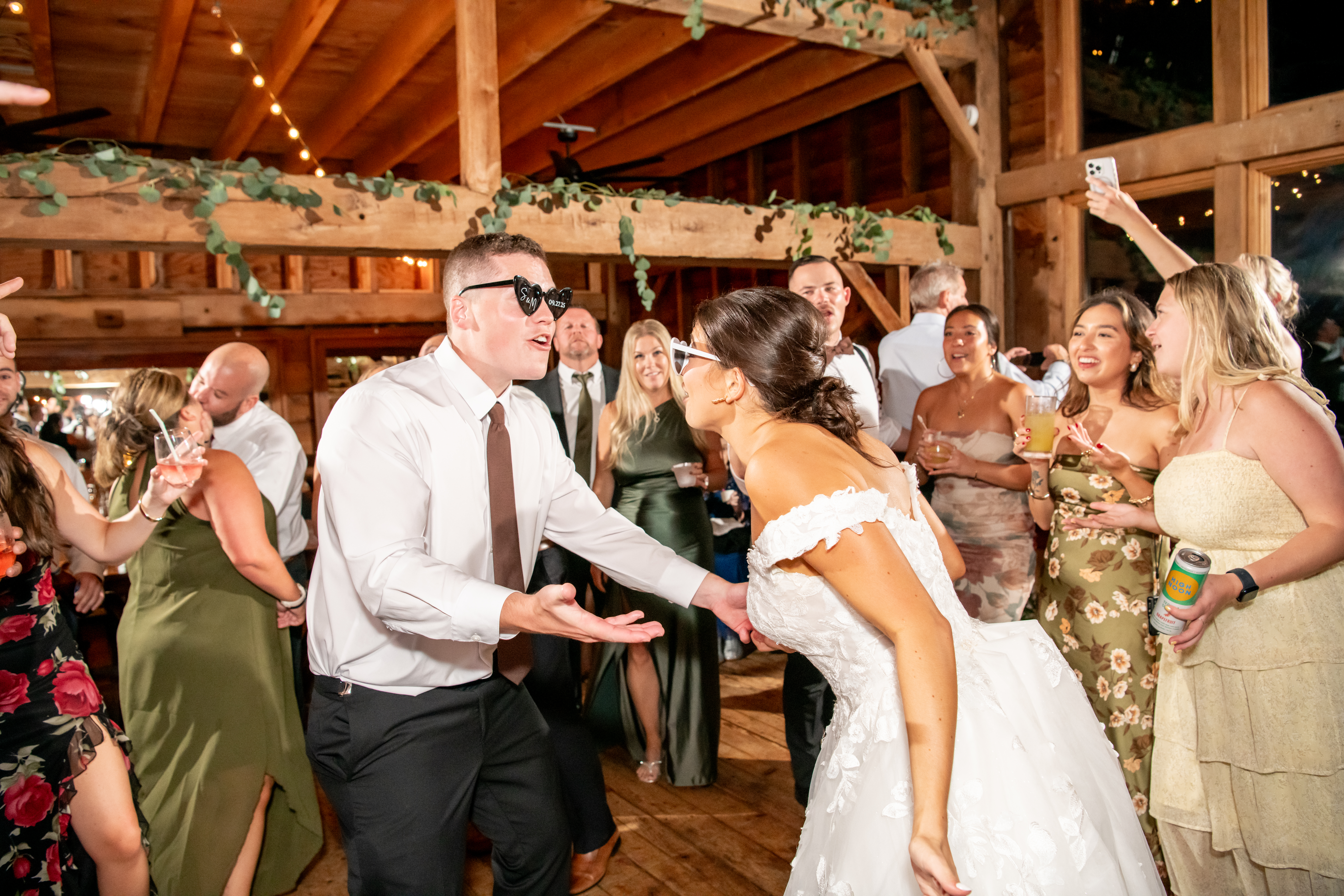 Soon the rustic wooden dance floor was completely packed with guests dancing, laughing, and celebrating nonstop. Even their grandmother joined in from her wheelchair, which was one of the most joyful moments of the night. Later on, an ice cream truck arrived outside for guests to enjoy ā the perfect late-night treat.