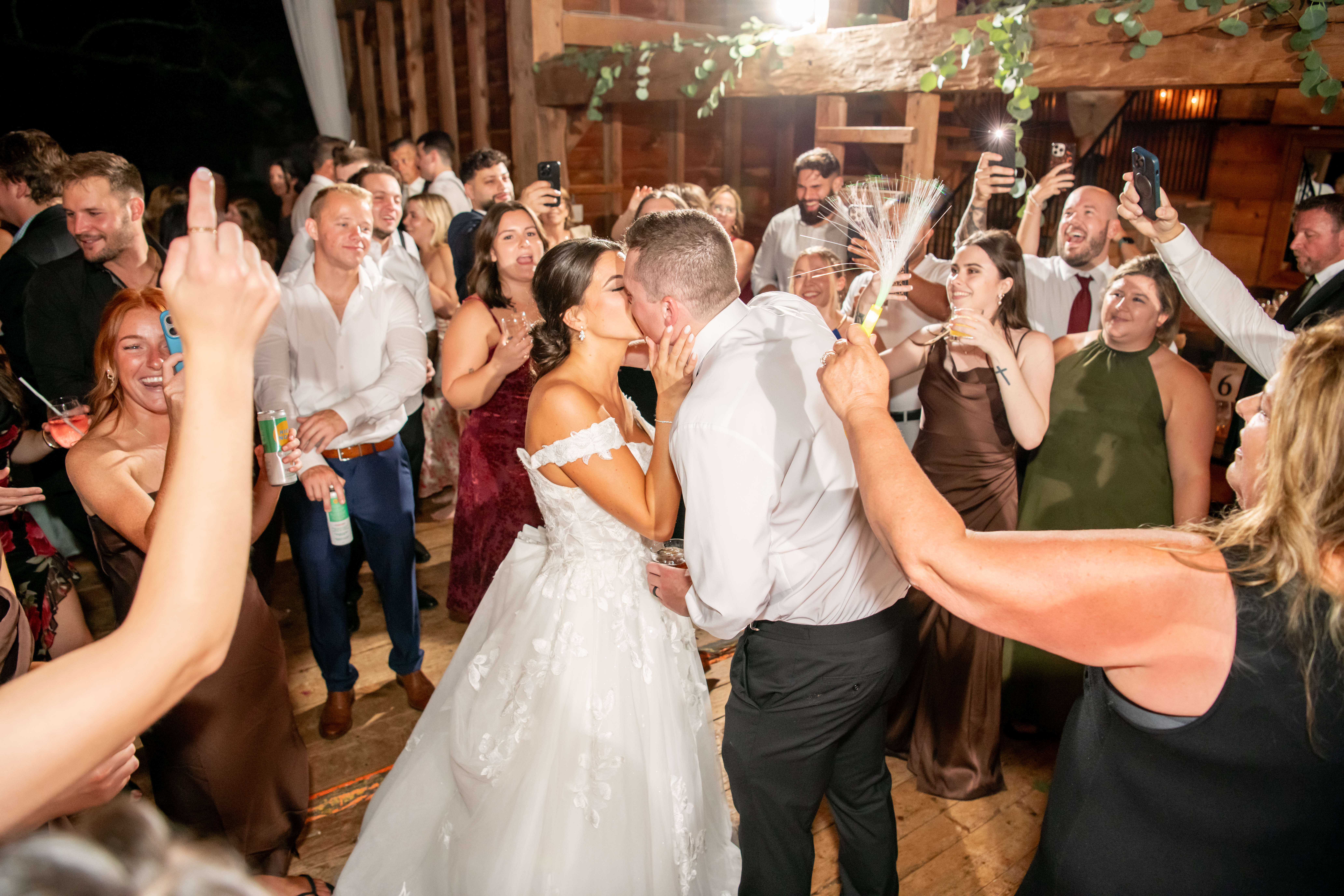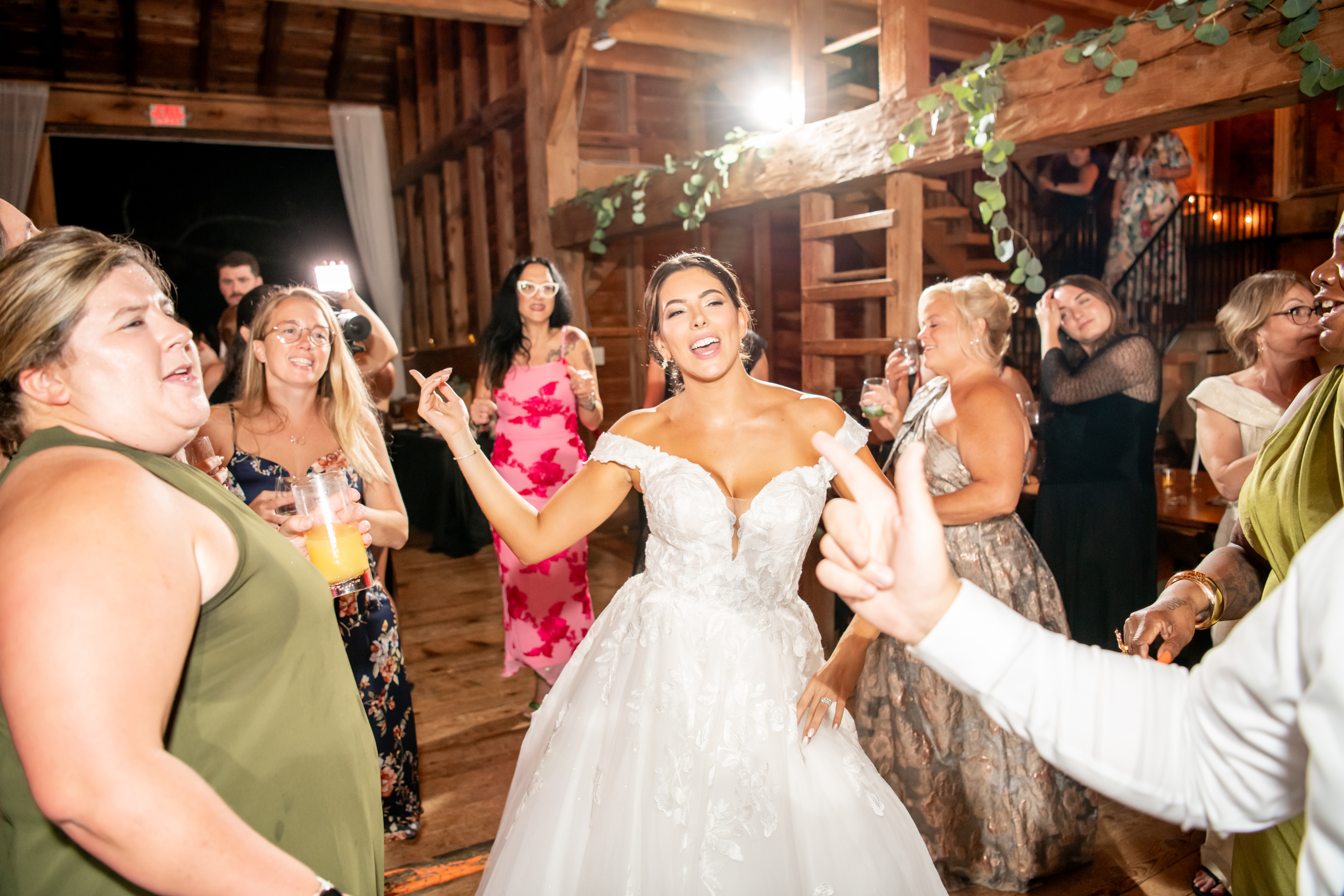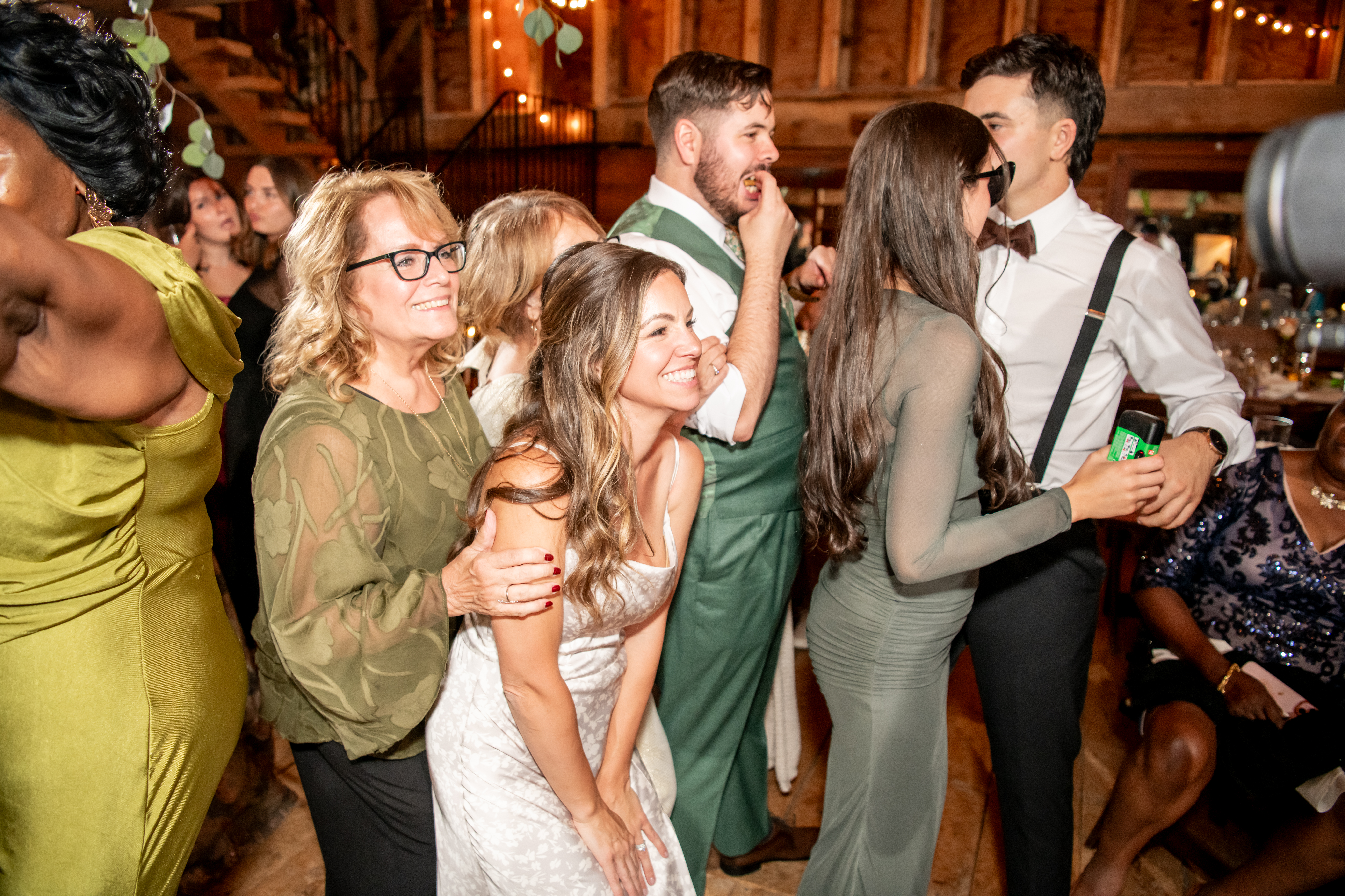 Soon the rustic wooden dance floor was completely packed with guests dancing, laughing, and celebrating nonstop. Even their grandmother joined in from her wheelchair, which was one of the most joyful moments of the night. Later on, an ice cream truck arrived outside for guests to enjoy ā the perfect late-night treat.