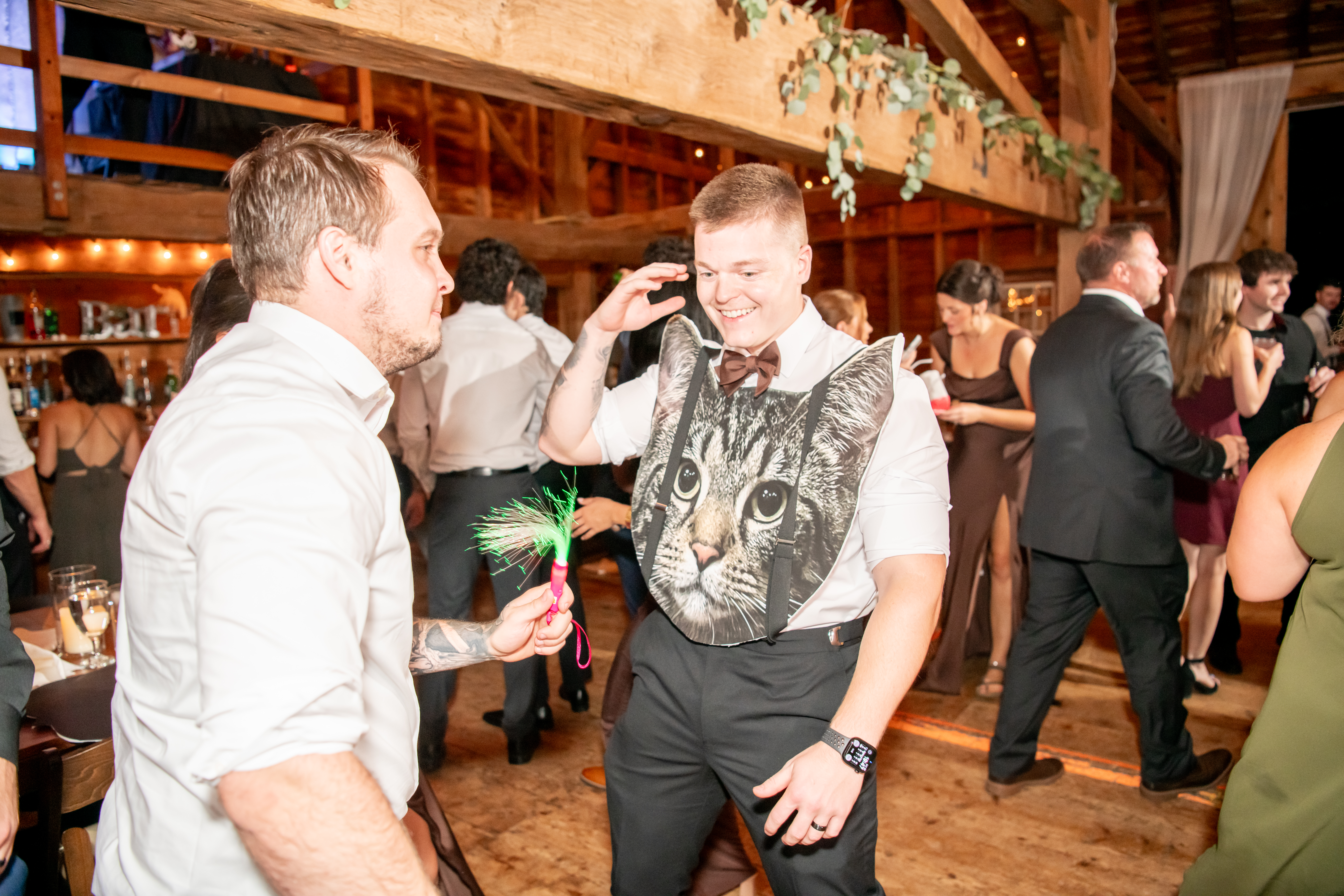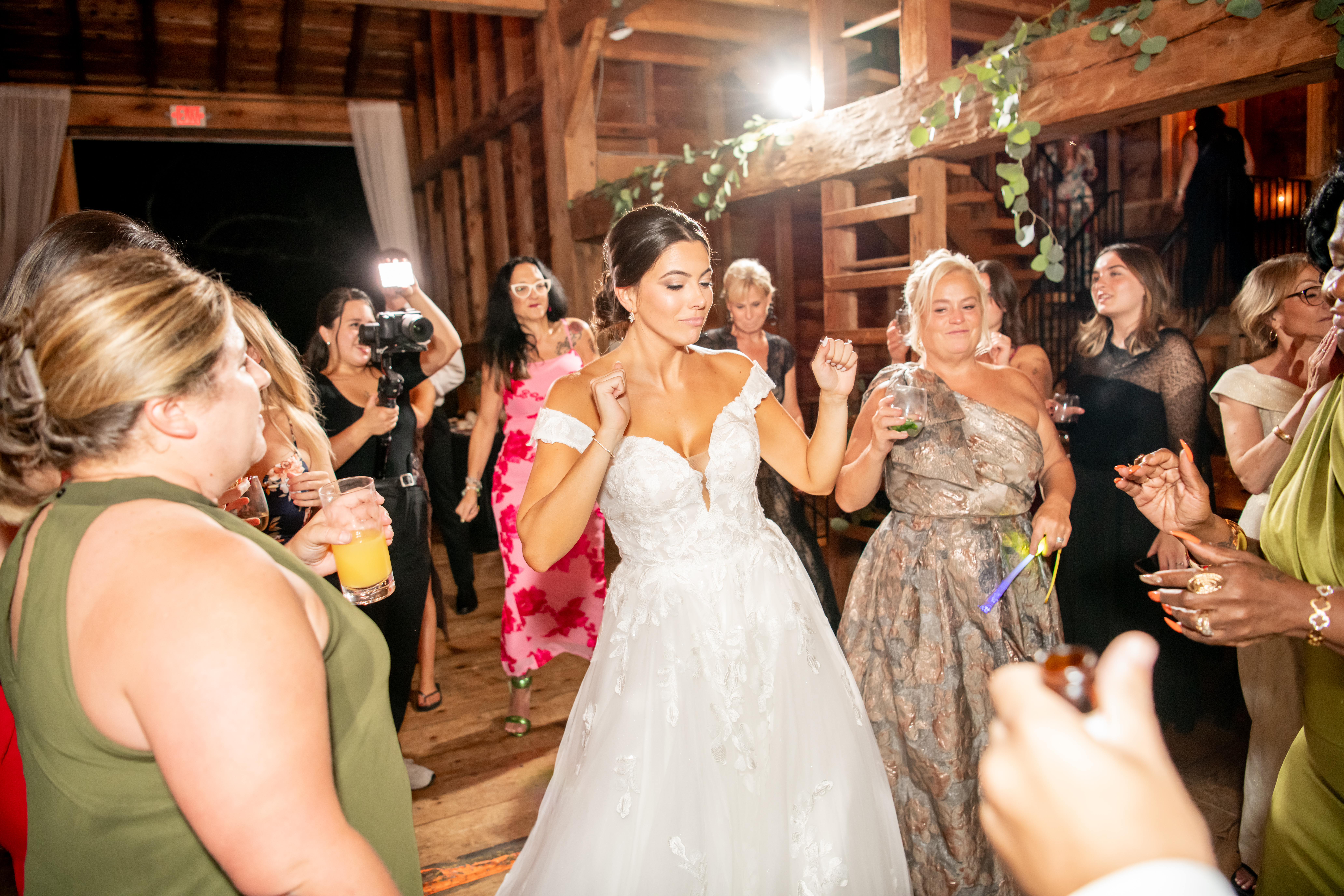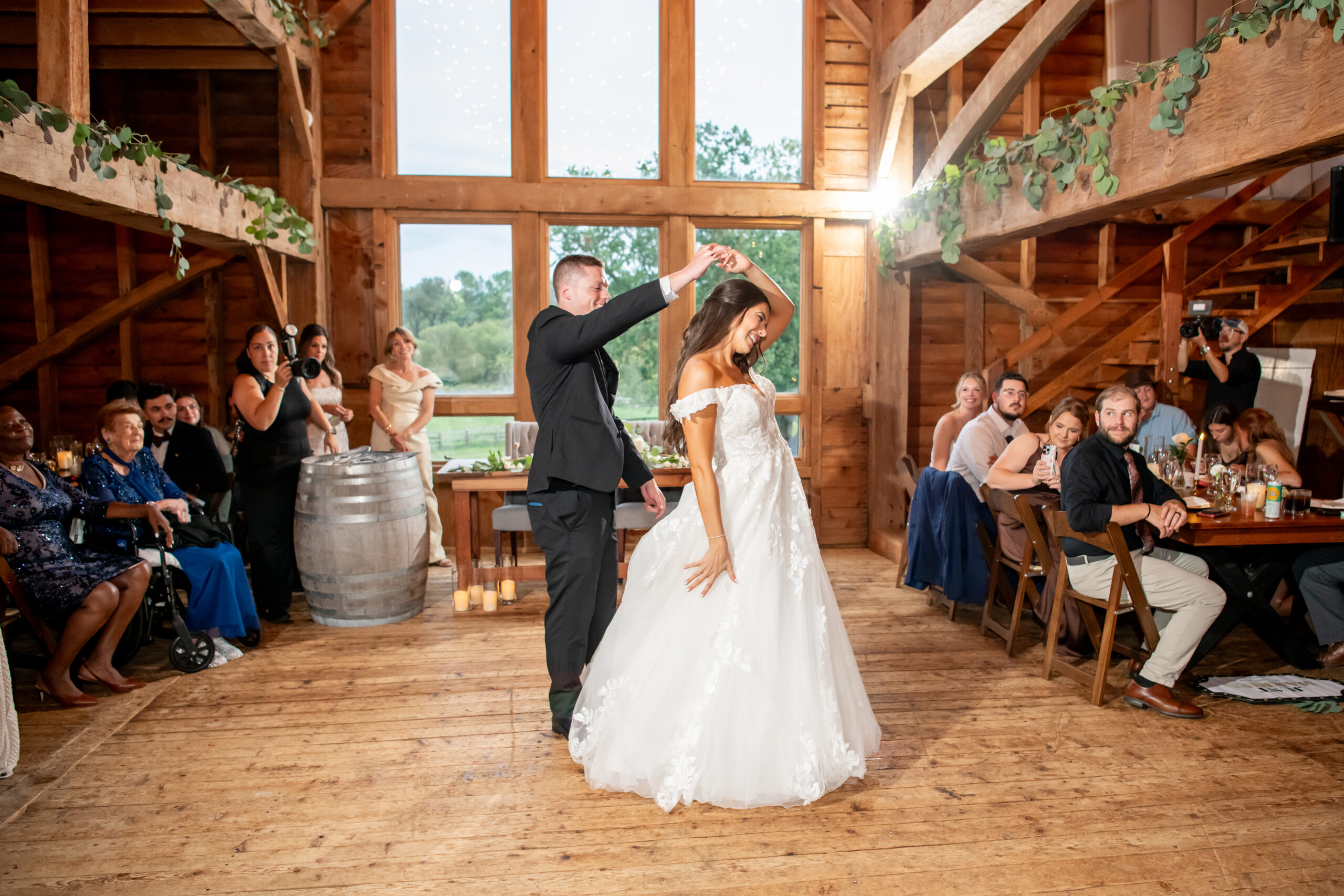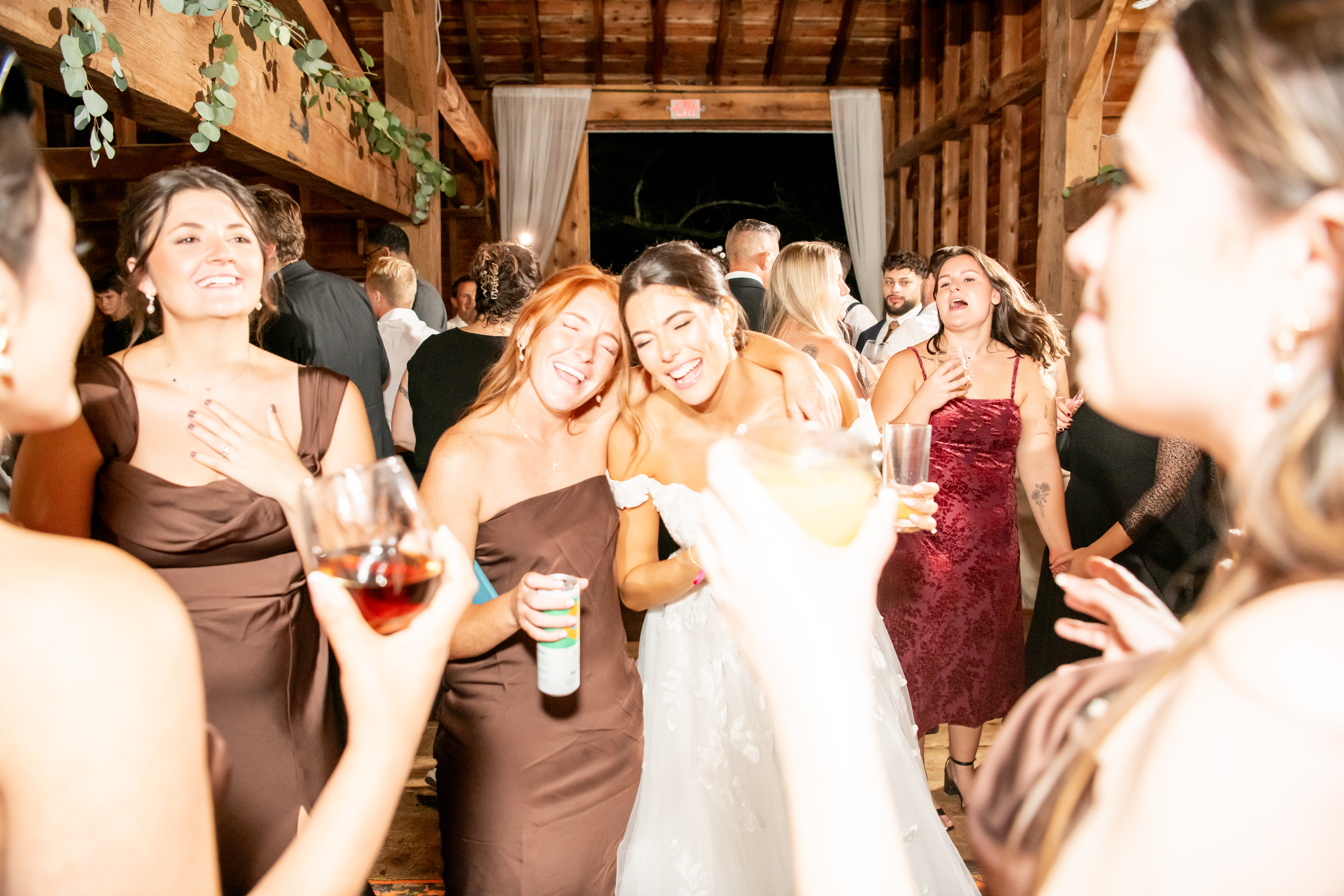 Soon the rustic wooden dance floor was completely packed with guests dancing, laughing, and celebrating nonstop. Even their grandmother joined in from her wheelchair, which was one of the most joyful moments of the night. Later on, an ice cream truck arrived outside for guests to enjoy ā the perfect late-night treat.