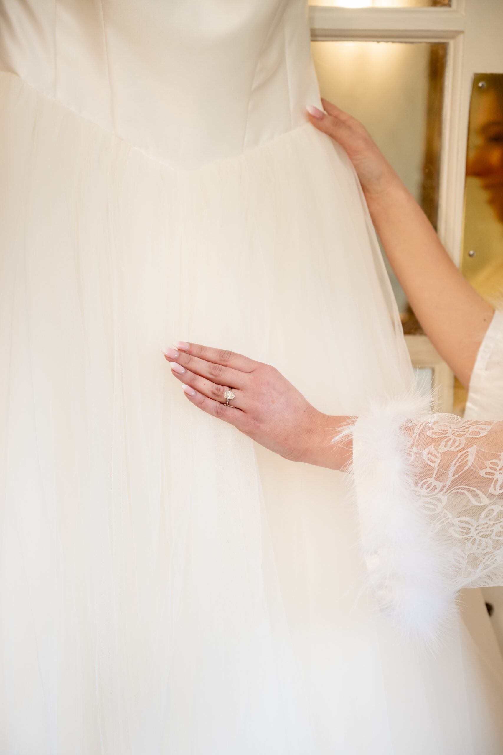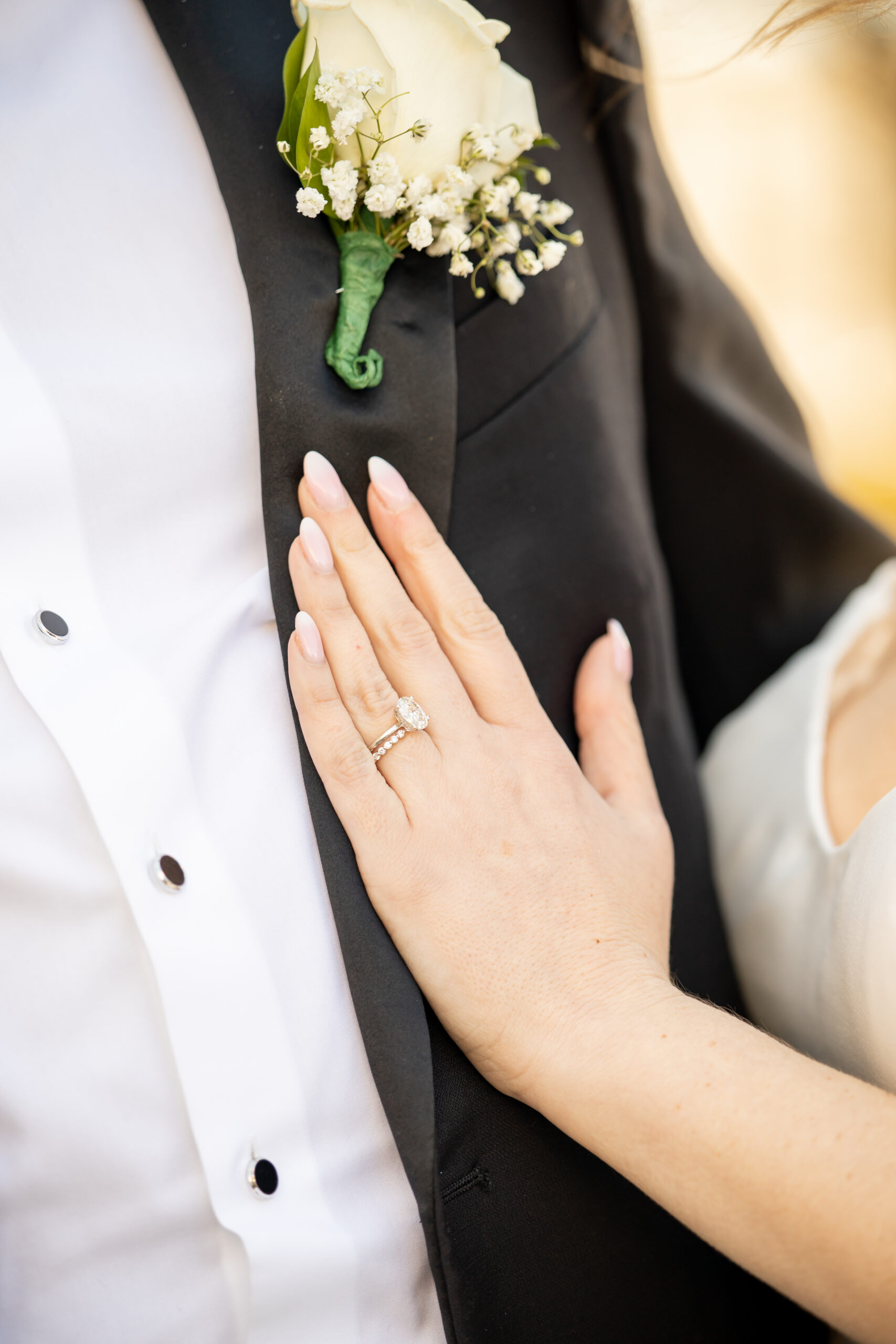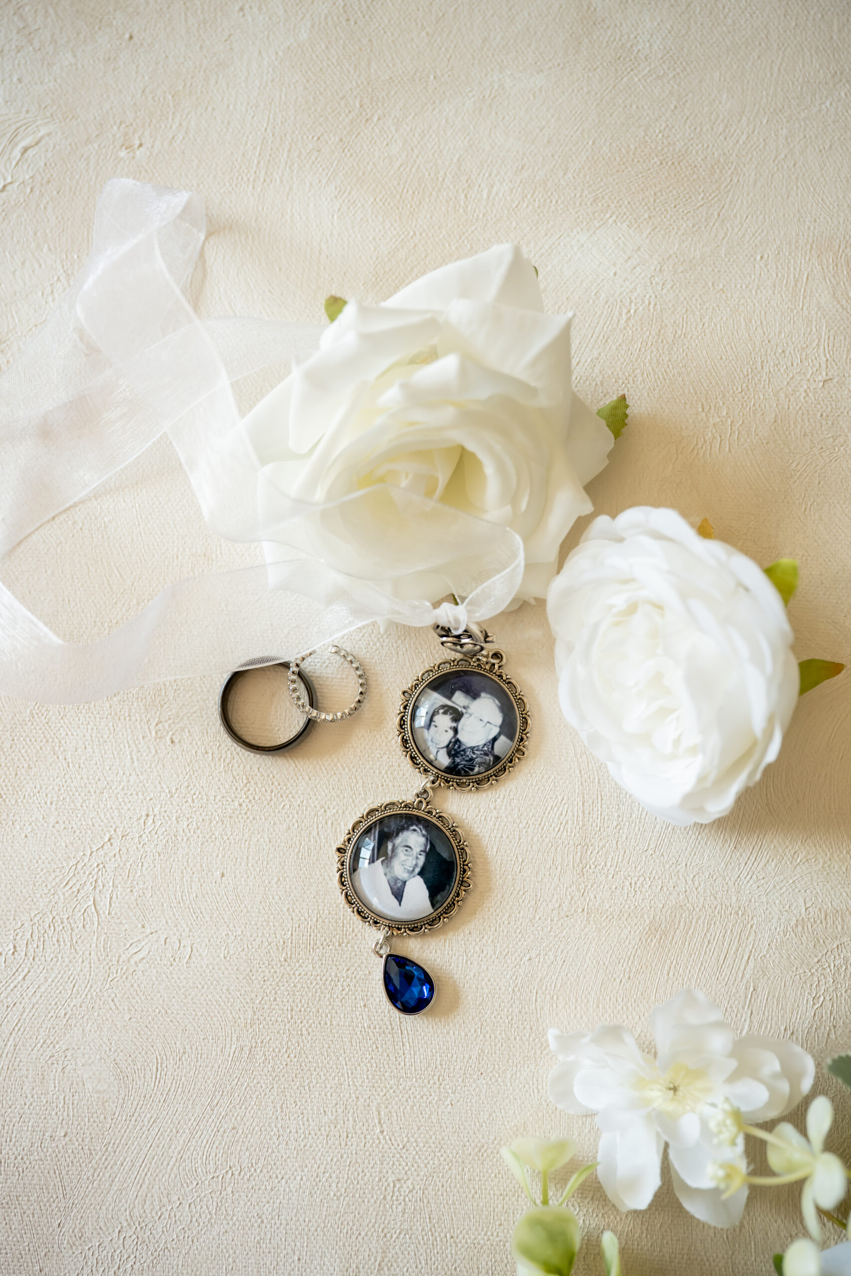 Before getting dressed, I spent some time capturing their details, and this part of the day was especially emotional. Michelle had a beautiful pendant attached to her bouquet with photos of her grandfathers who are no longer with us. It was such a touching way to have them with her.