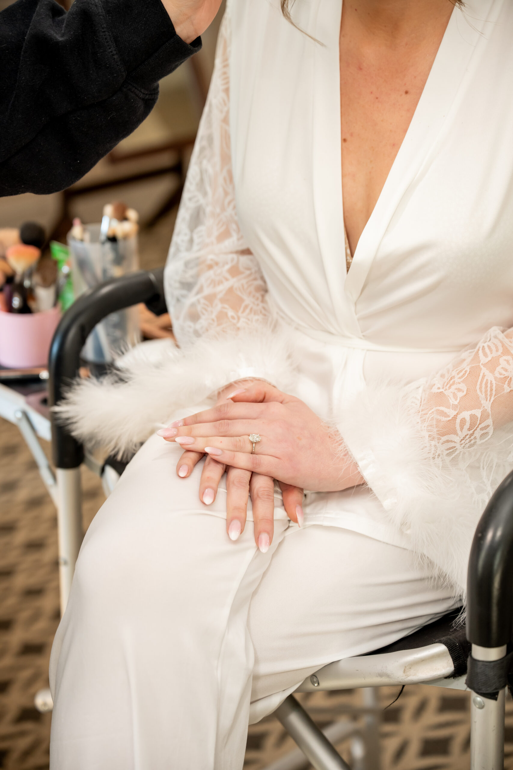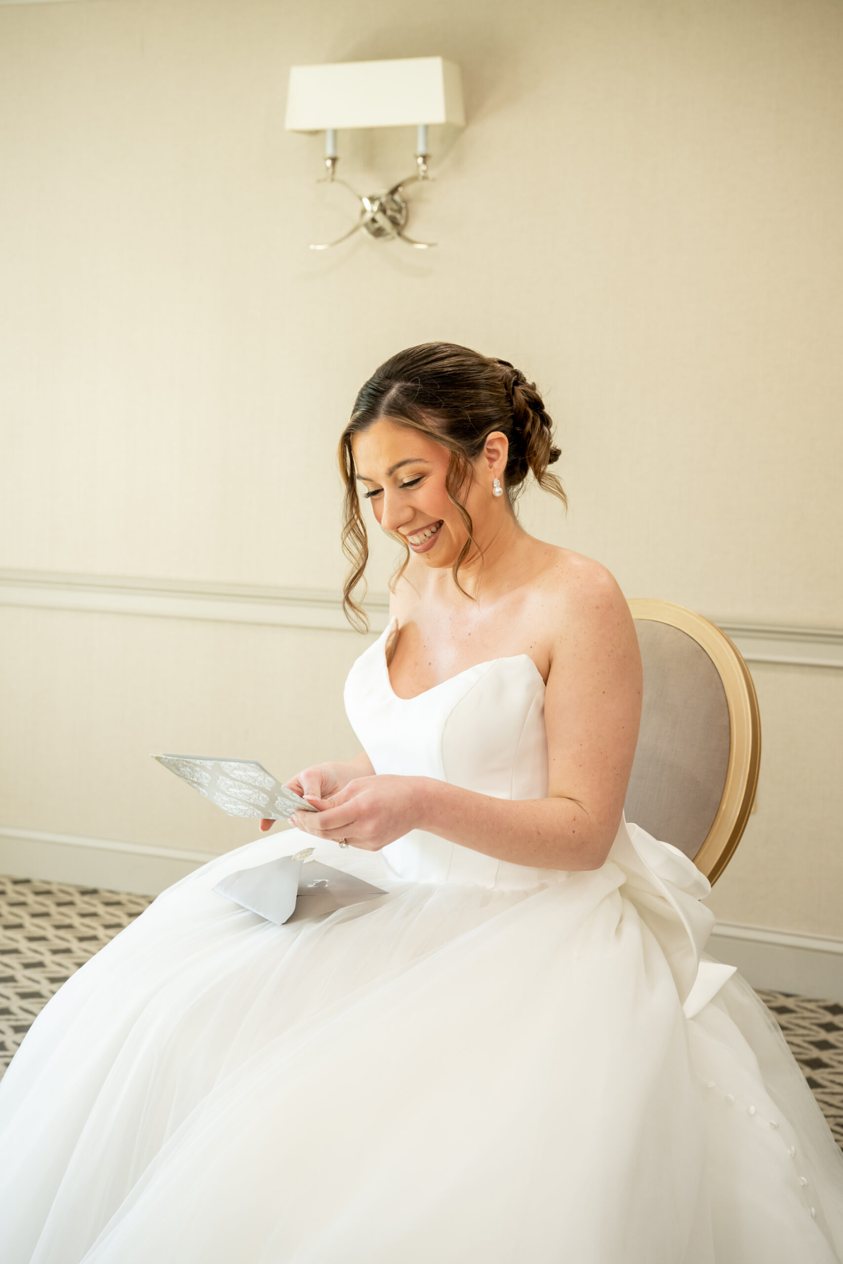 The morning began right at the venue, which is always one of my favorite ways to start a wedding day. It keeps everything relaxed, and Michelle’s bridal suite was exactly that. Calm, joyful, and full of anticipation. The girls kept the vibe light and easy while sunlight poured through the windows as hair and makeup wrapped up. Michelle was glowing the moment I walked in, smiling, excited, and soaking in every second.