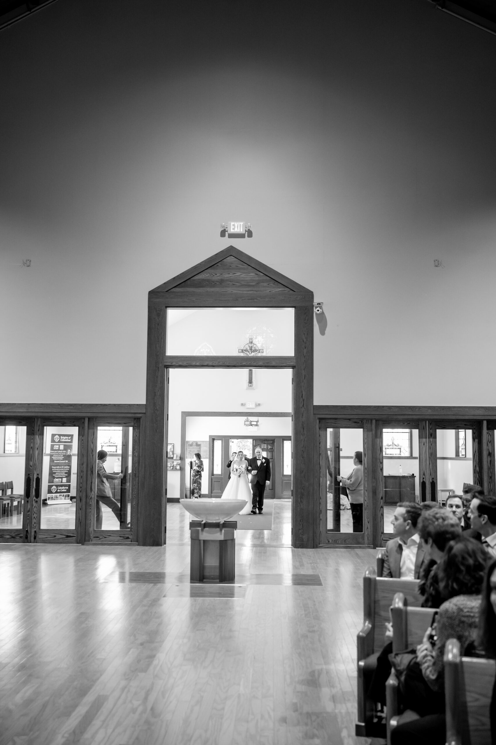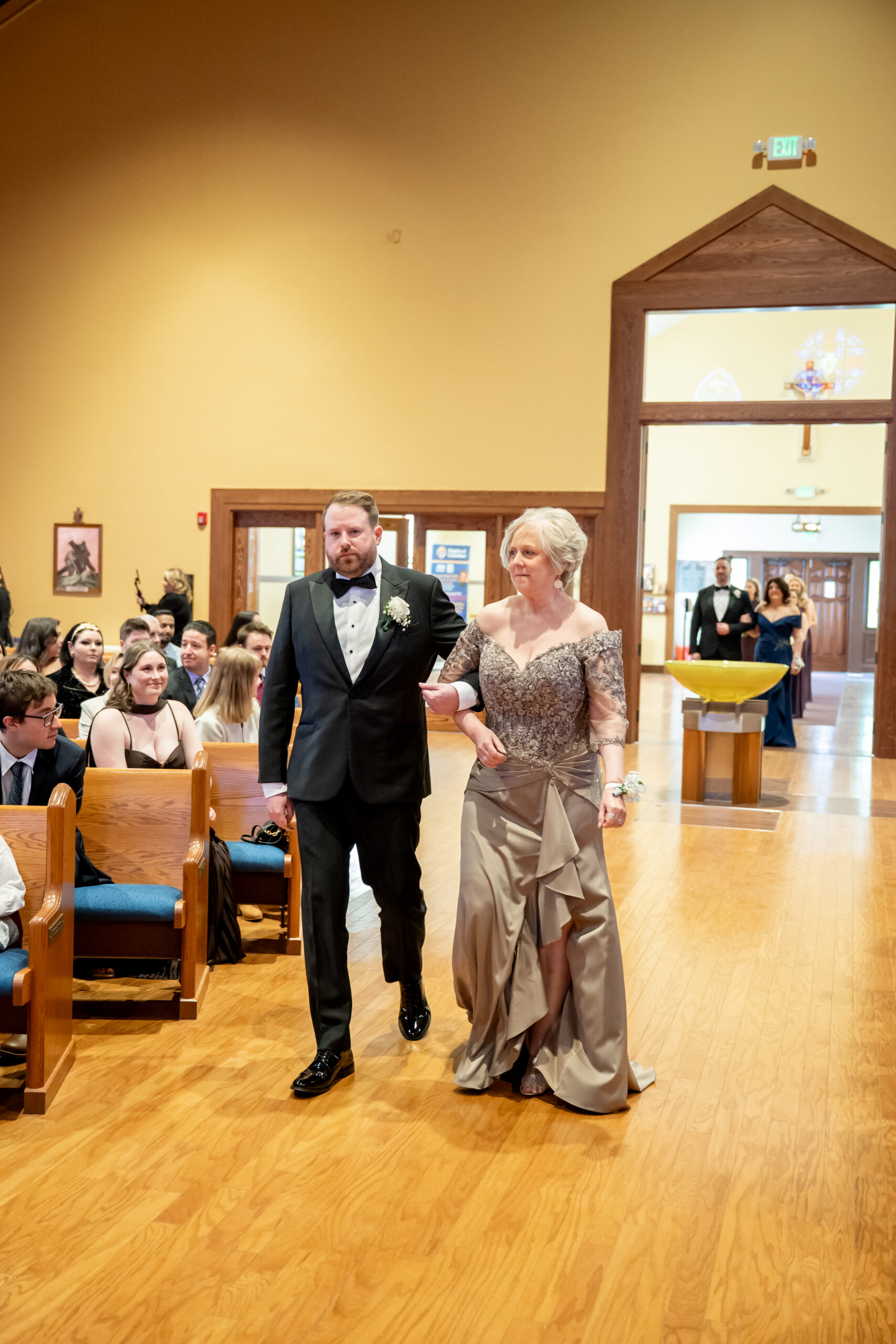Patrick walked down the aisle with his mother, and then it was time. Everyone stood as Michelle appeared through the tall doors. It was a breathtaking sight. As she walked down the aisle, you could see Patrick overcome with emotion. It was such a genuine, heartfelt moment.