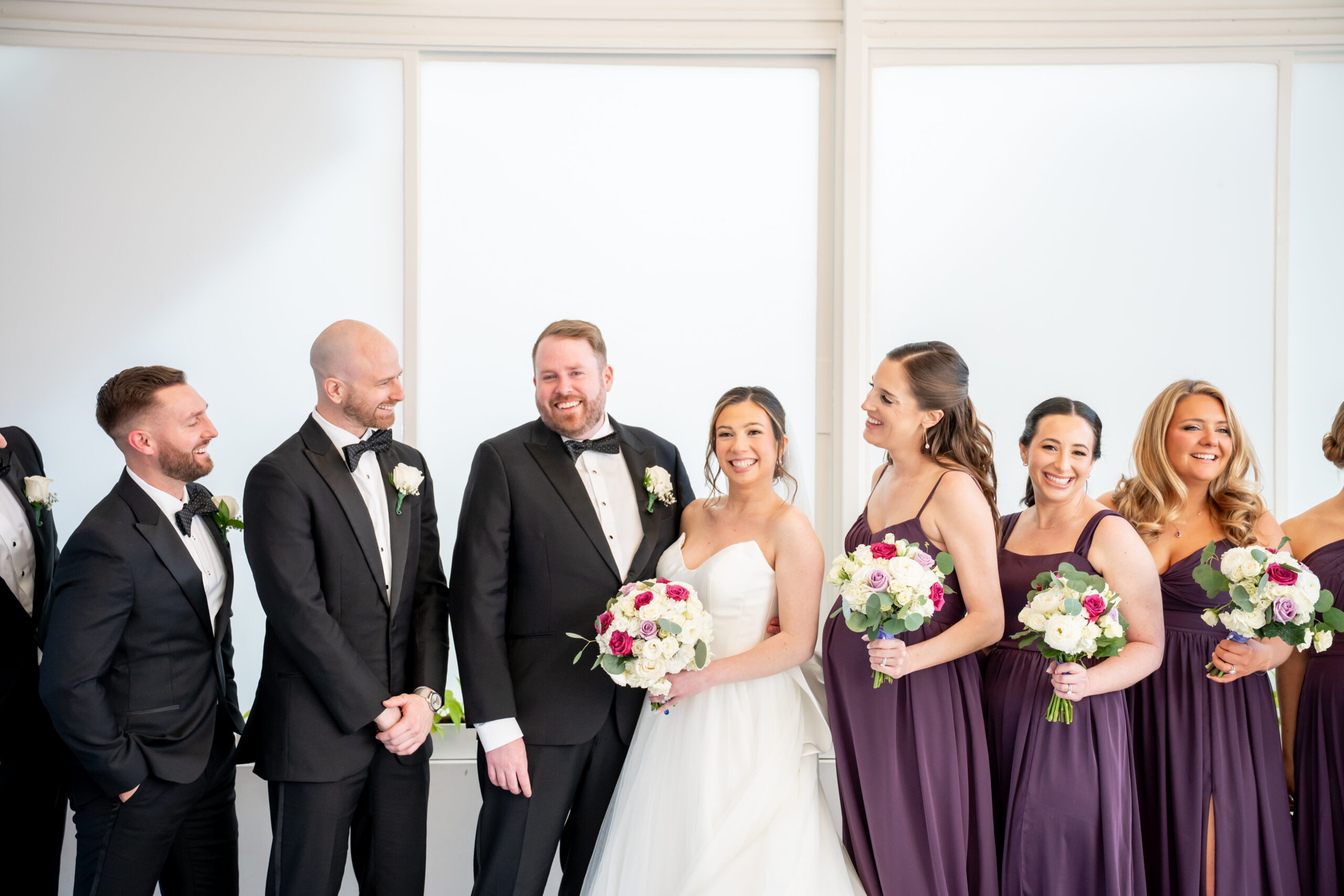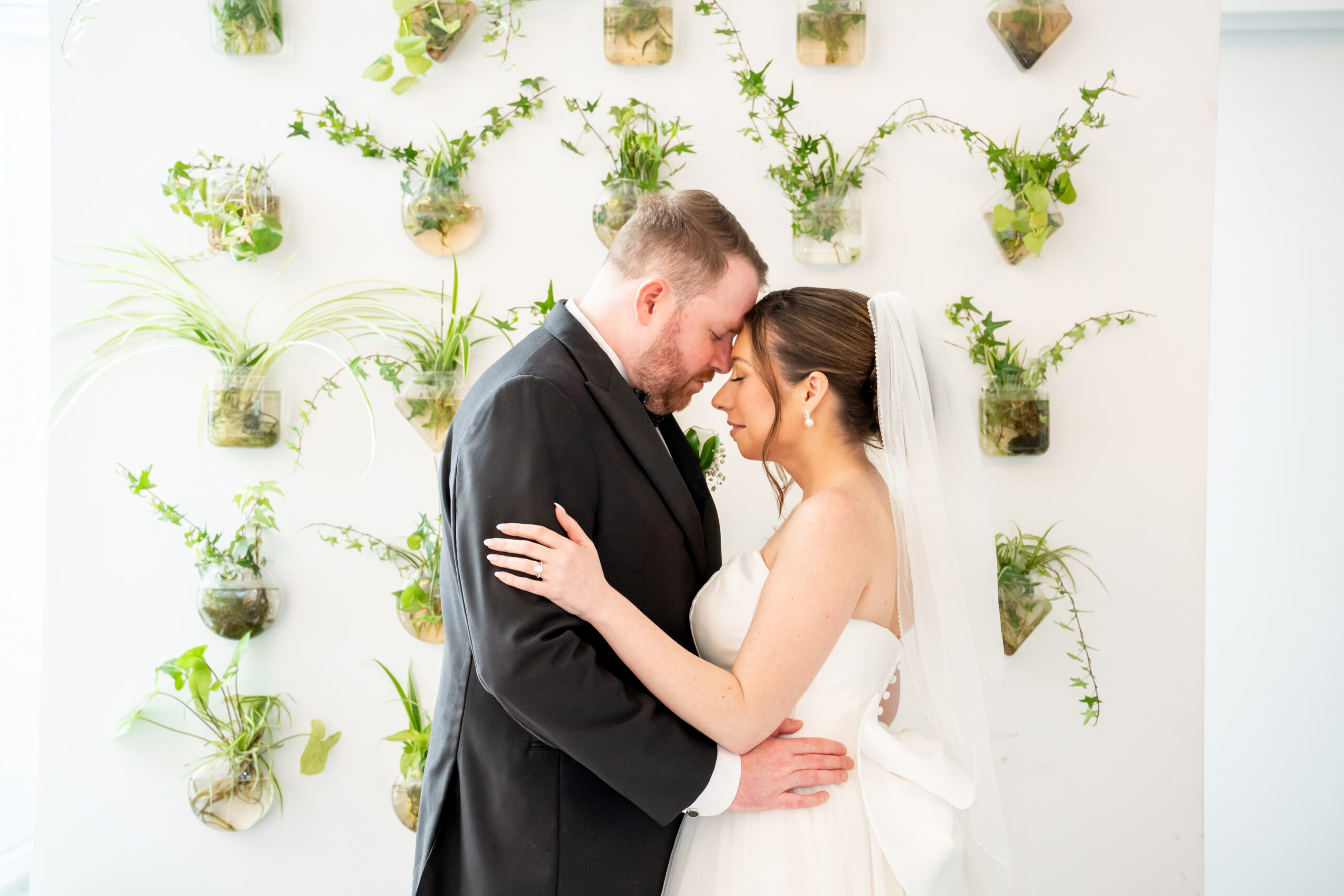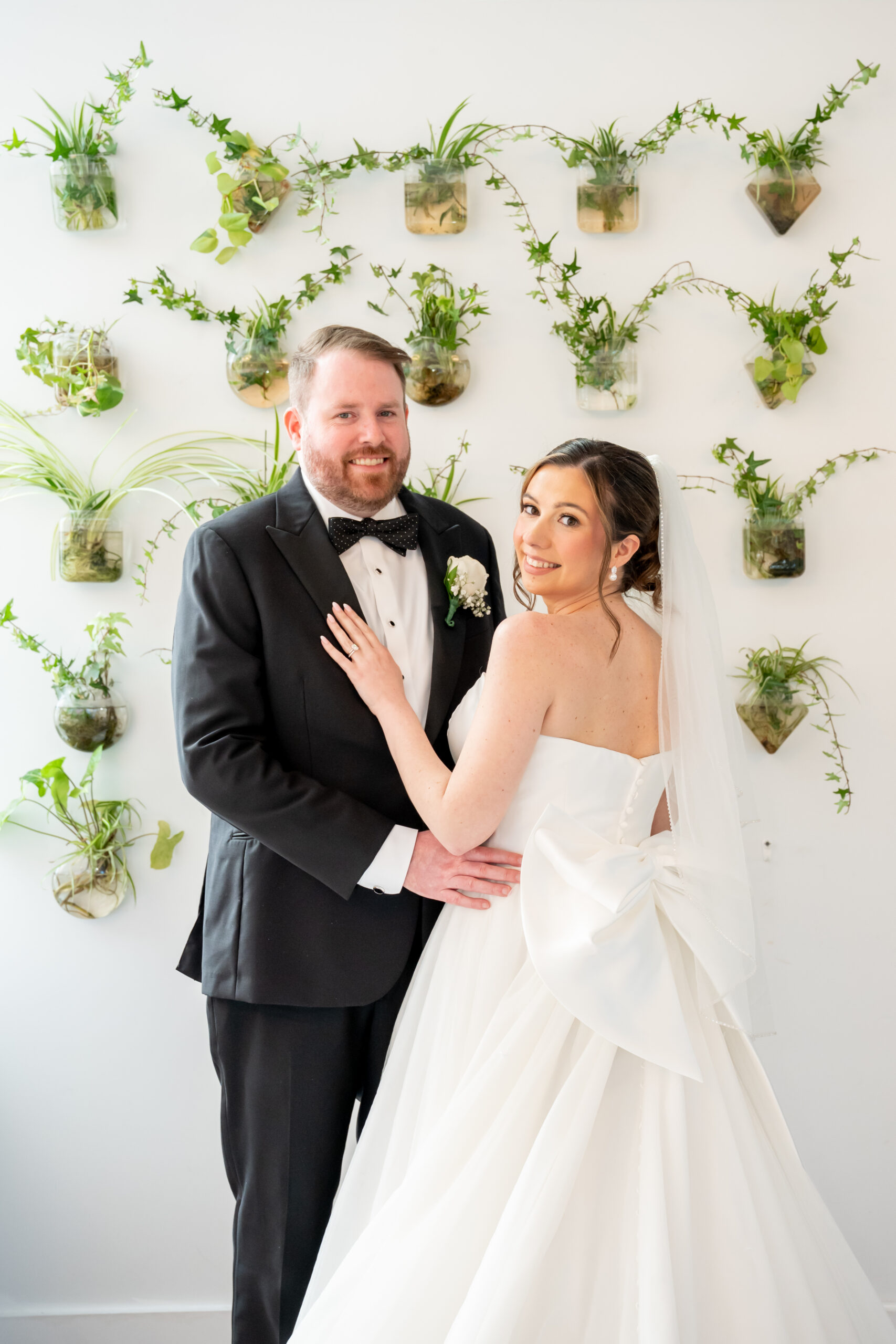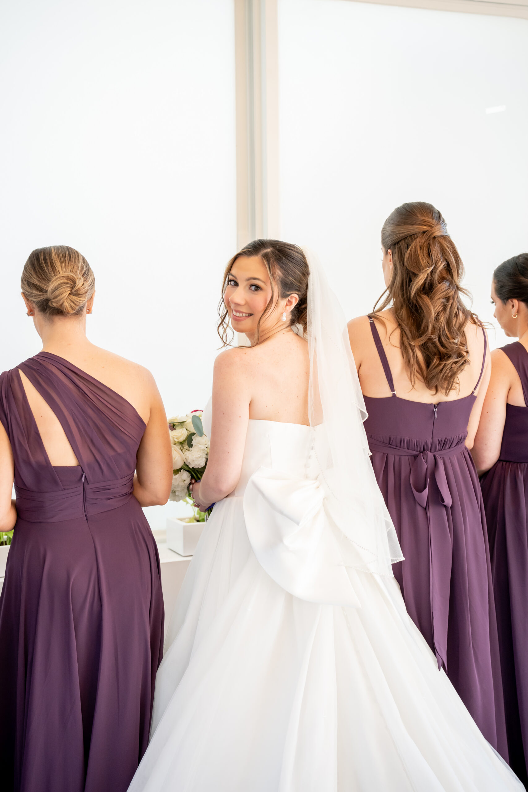 Even though the main conservatory space was occupied, we found another gorgeous room filled with natural light, greenery, and soft white tones. It even had a huge beautiful chandelier. It was the perfect setting for bridal party photos and romantic portraits. This is one of the reasons I love photographing a The Madison Hotel Wedding, there are endless beautiful backdrops no matter the season.