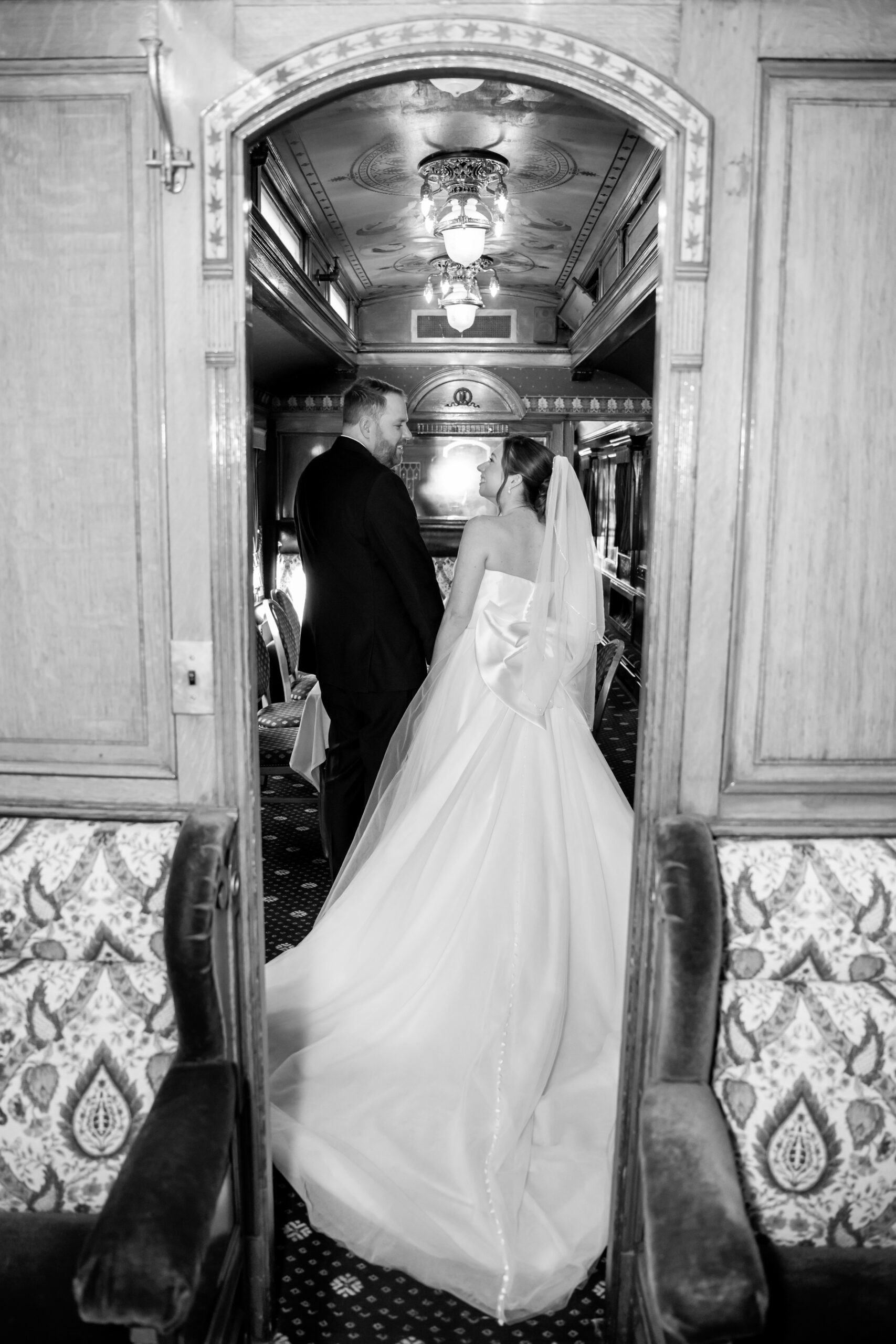 Michelle and Patrick also wanted to explore some of the venue’s more unique spaces, like the restaurant and the train car and I’m so glad they did! We created some really artistic, fun images in those areas. It added such personality to their gallery and made their portraits feel even more special.