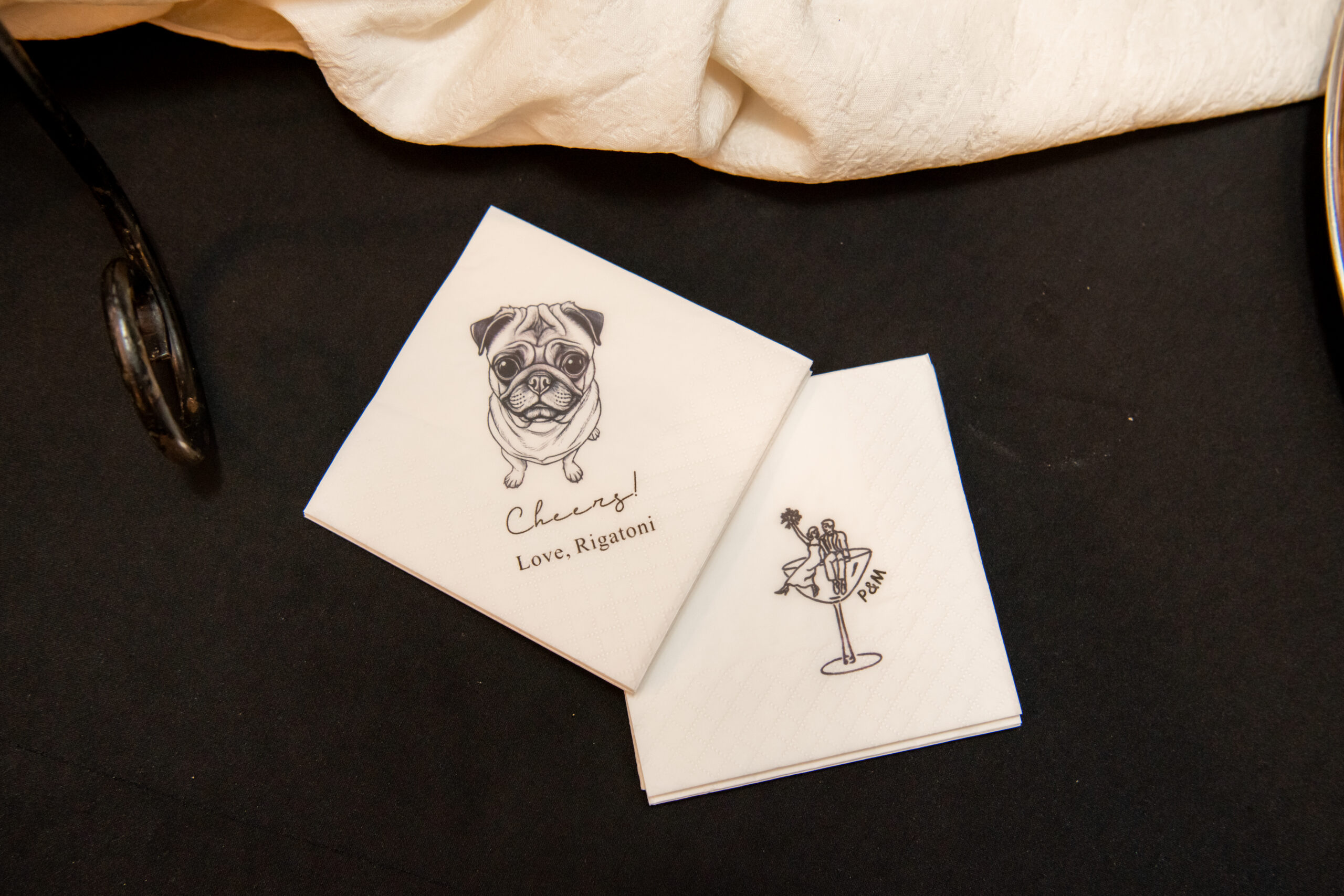 One of my favorite details? Their signature drinks were named after their adorable pug, Rigatoni! They even had custom napkins with his face on them! They got updates and photos of him during the day, which made Michelle so happy. Including your pets in little ways like this is always the sweetest touch.