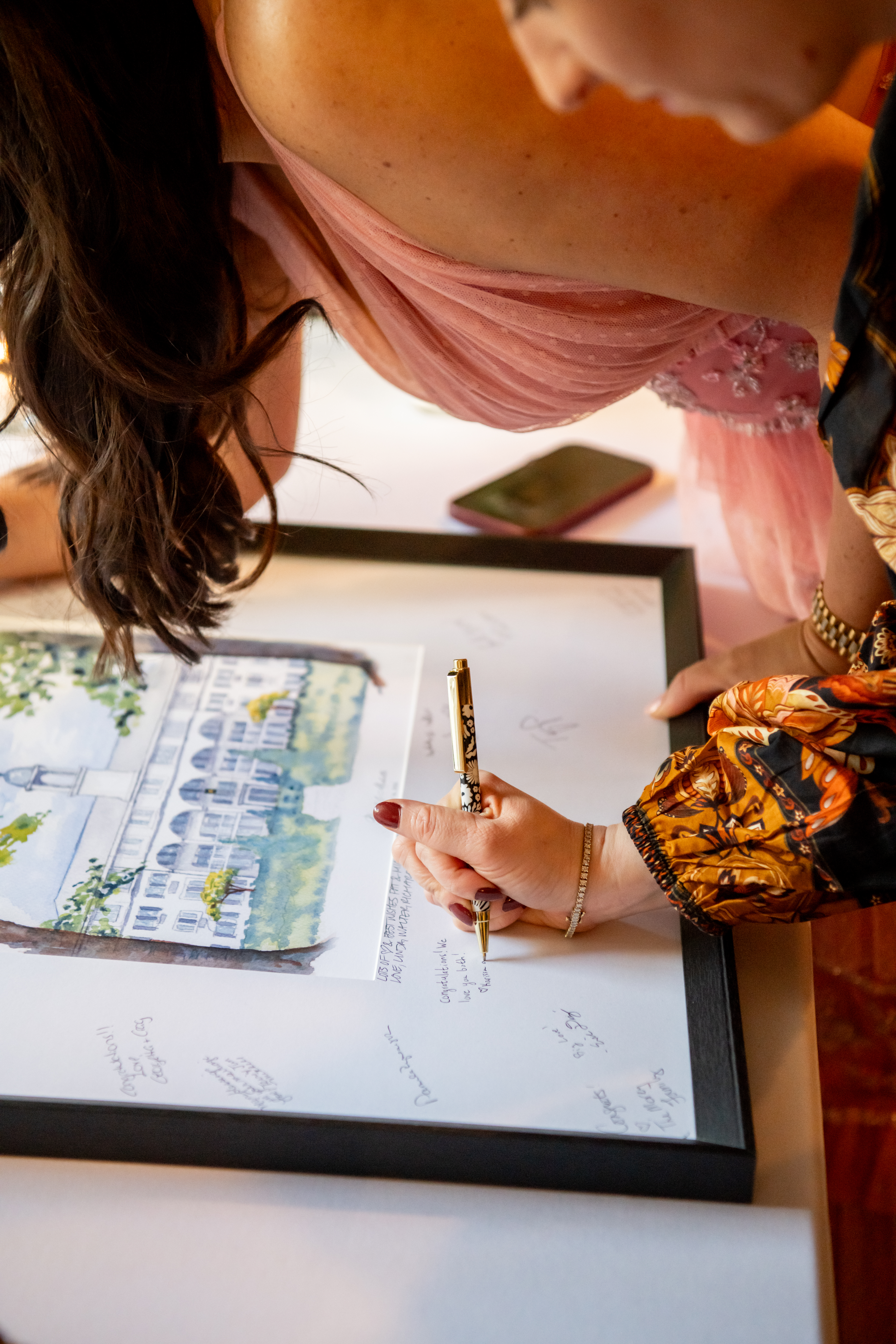 We wrapped portraits just in time for cocktail hour which Michelle and Patrick were so excited about. They really wanted to spend that time relaxing and being present with their guests, and they did exactly that. Guests enjoyed delicious food and signed a beautifully illustrated guest book featuring the venue. It was such a creative keepsake.
