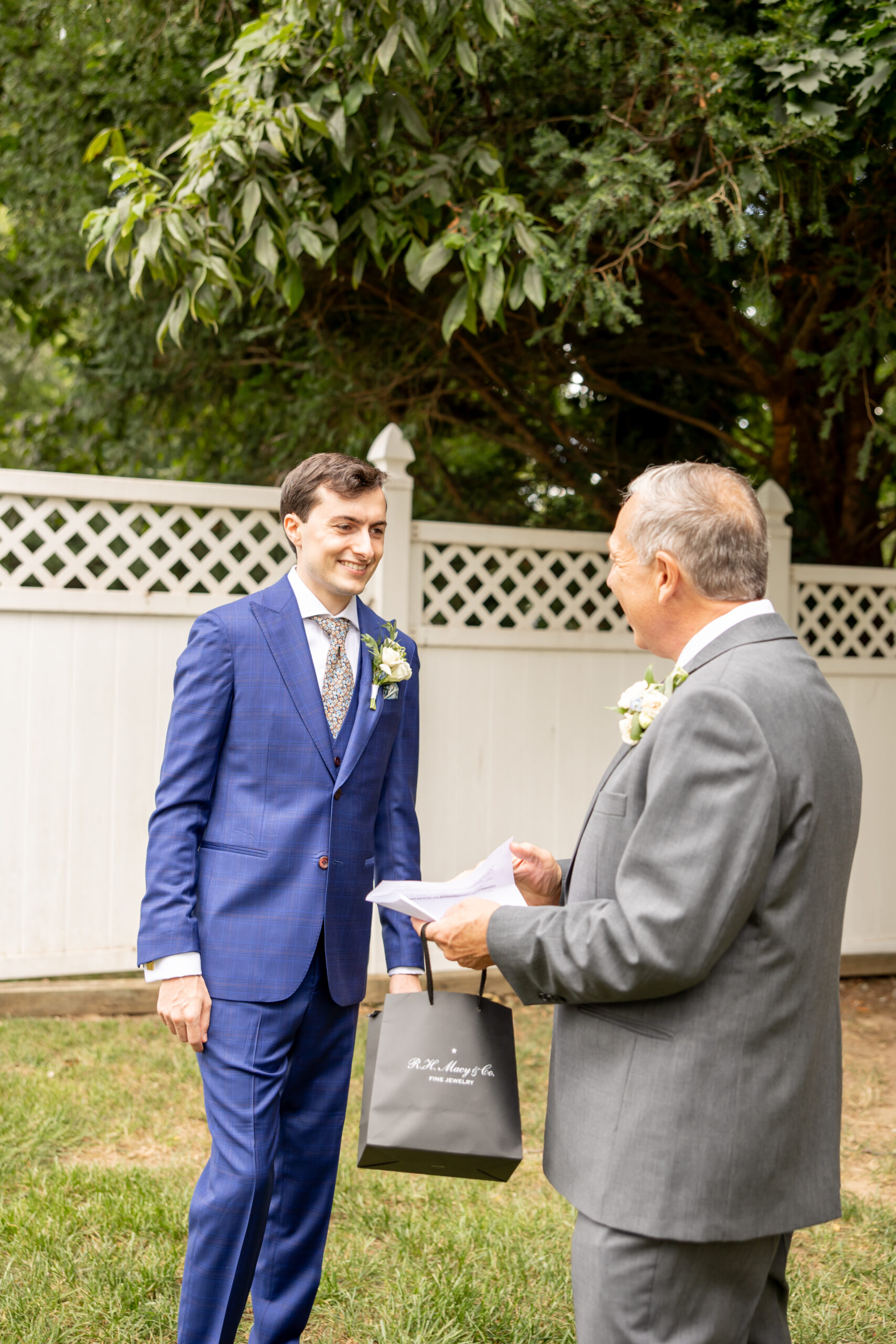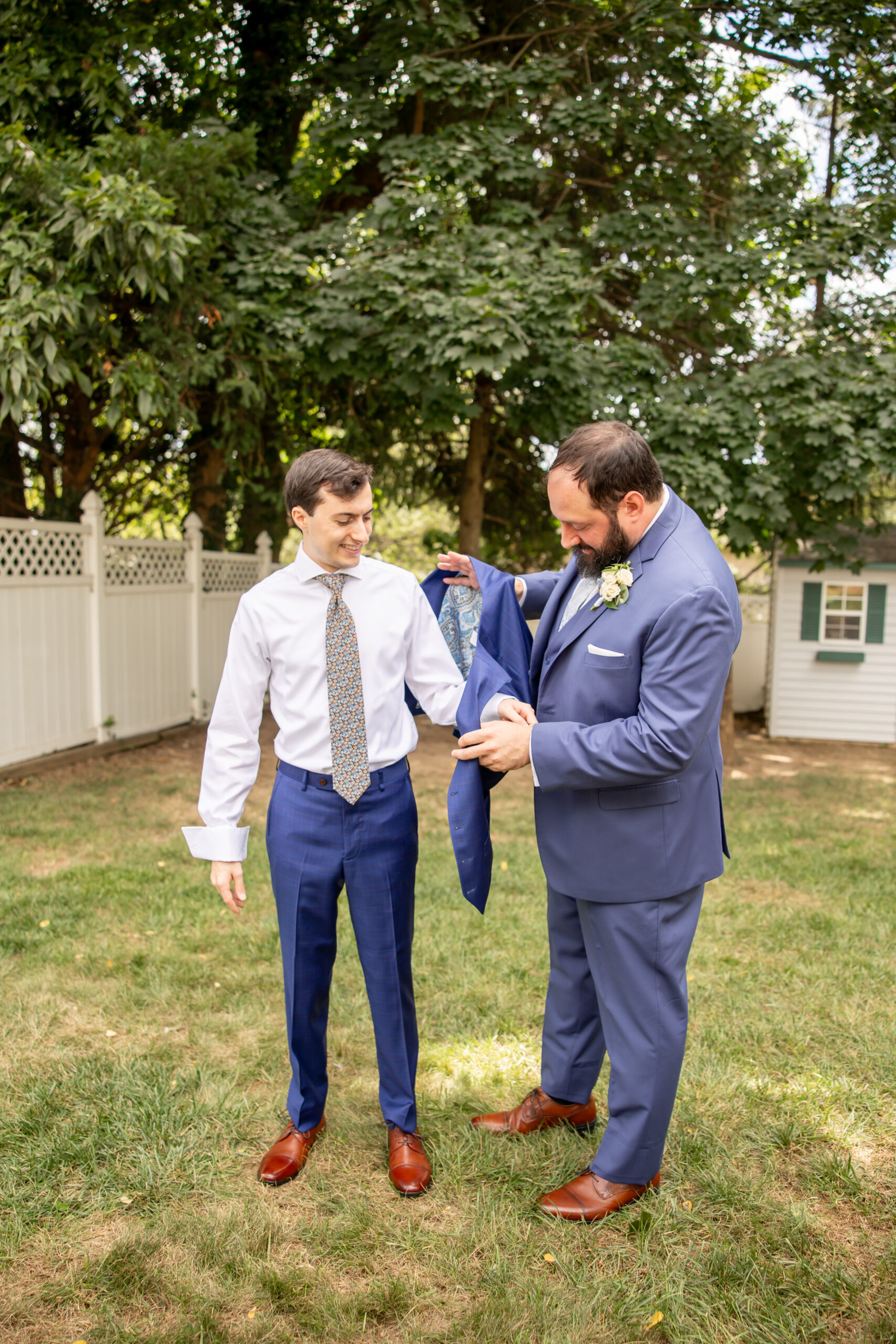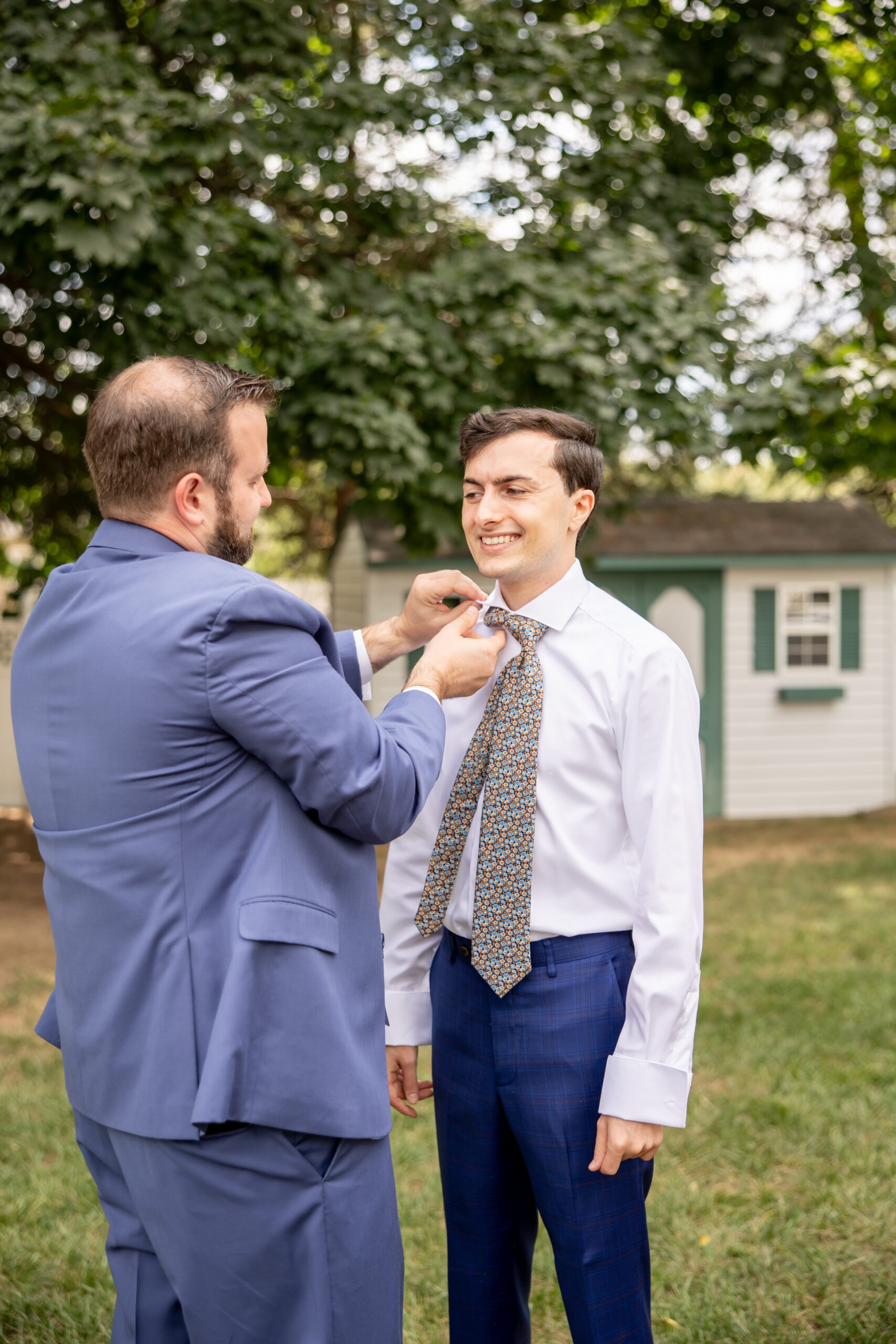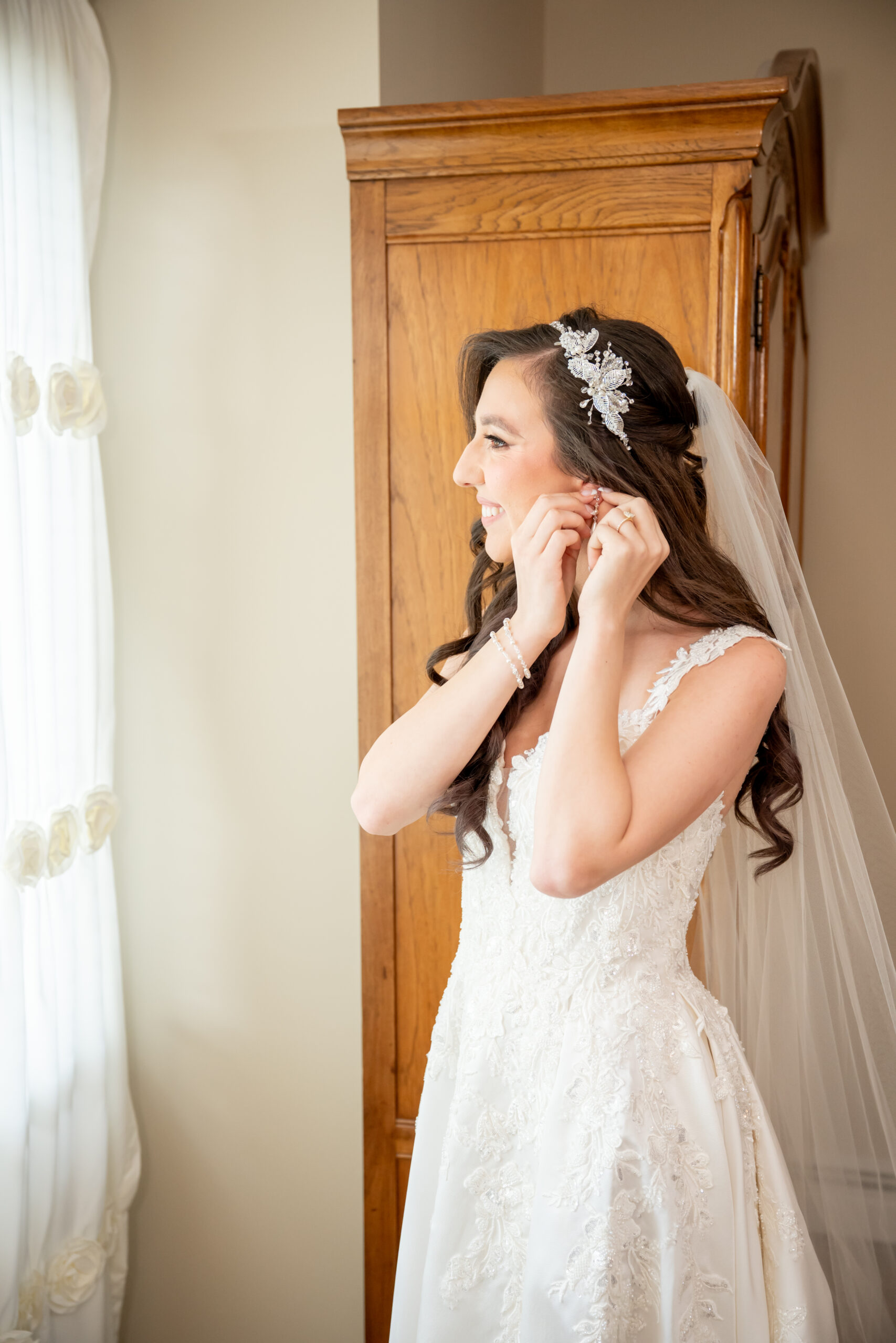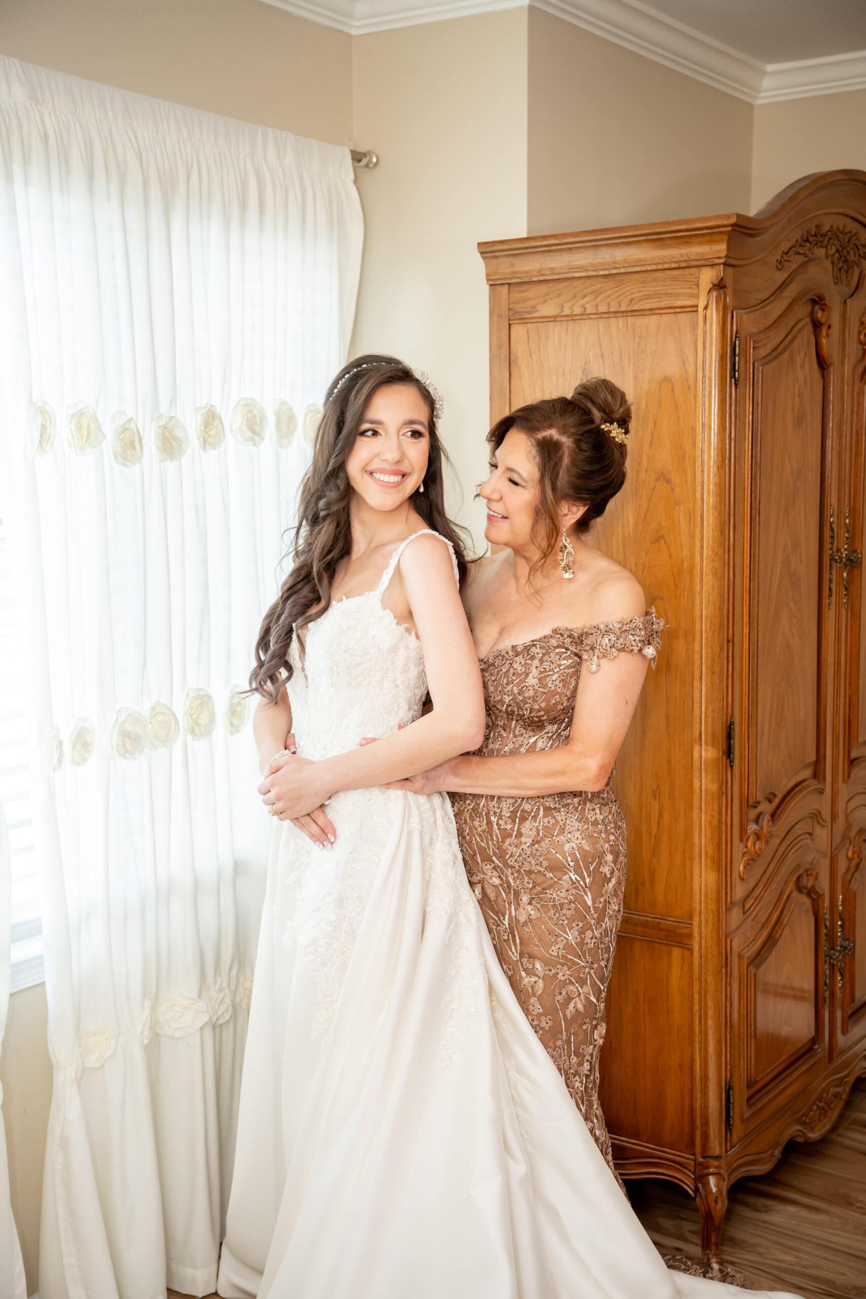 As the morning slowed down, some of the most emotional moments of the day unfolded. Victoriaās mom and sister helped button her dress and gently placed her veil, sharing quiet hugs and happy tears. Meanwhile, Mikeās dad helped straighten his tie and cufflinks, offering words of encouragement and pride.