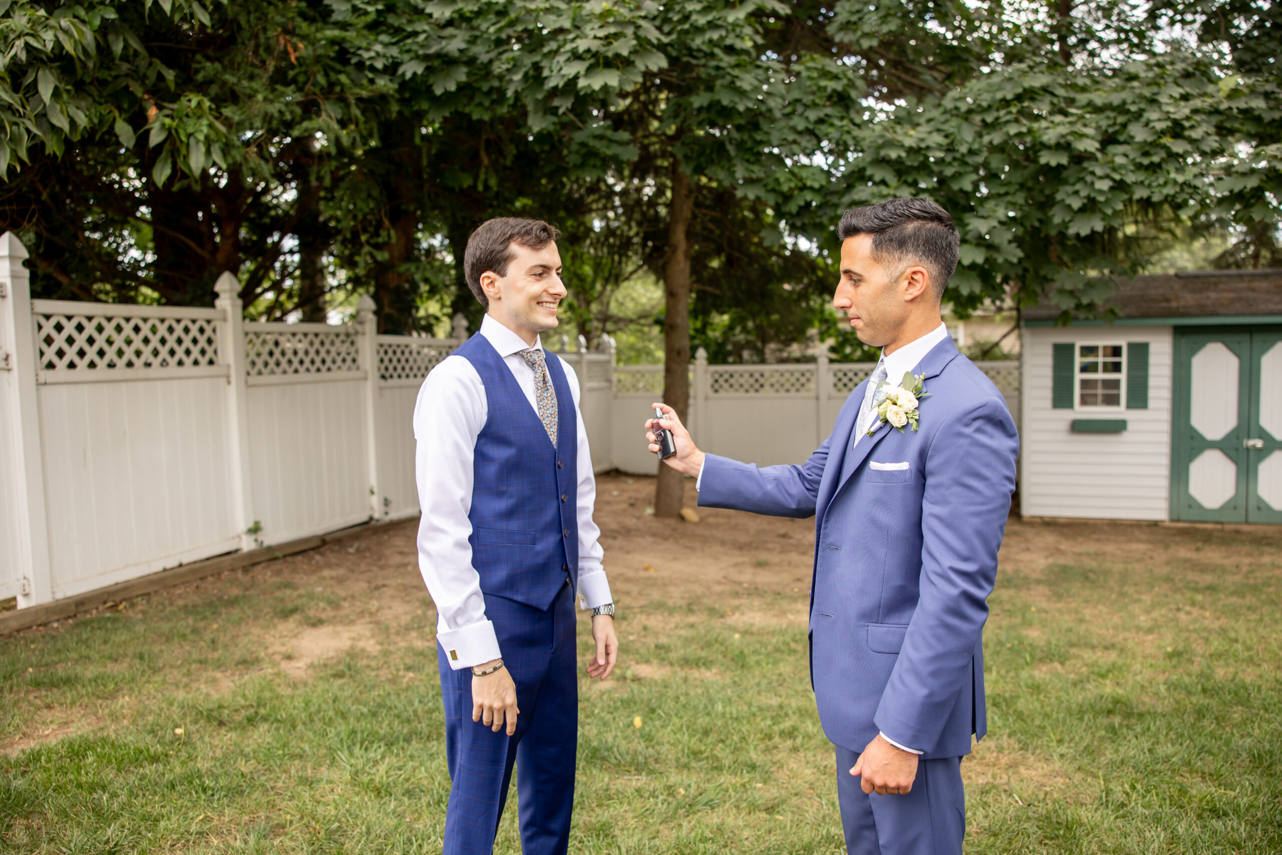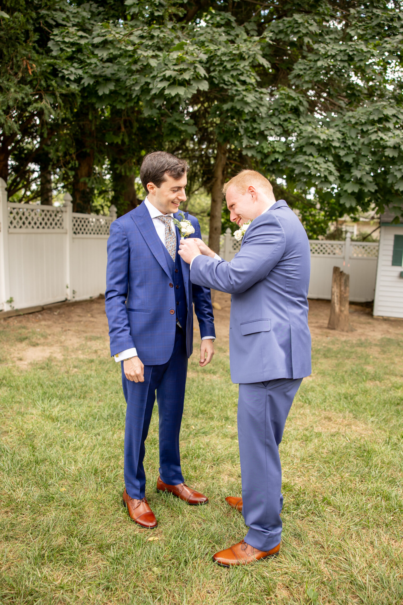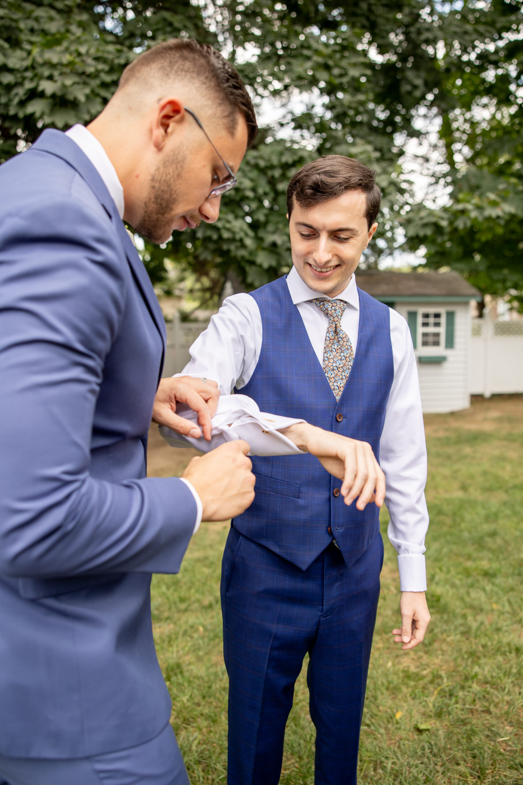 Across town, Mike spent the morning with his closest friends as they helped him get ready for the big day. Each groomsman played a role, sharing laughs, memories, and a celebratory drink together. It was calm, meaningful, and full of love. The perfect way to begin such a special day.