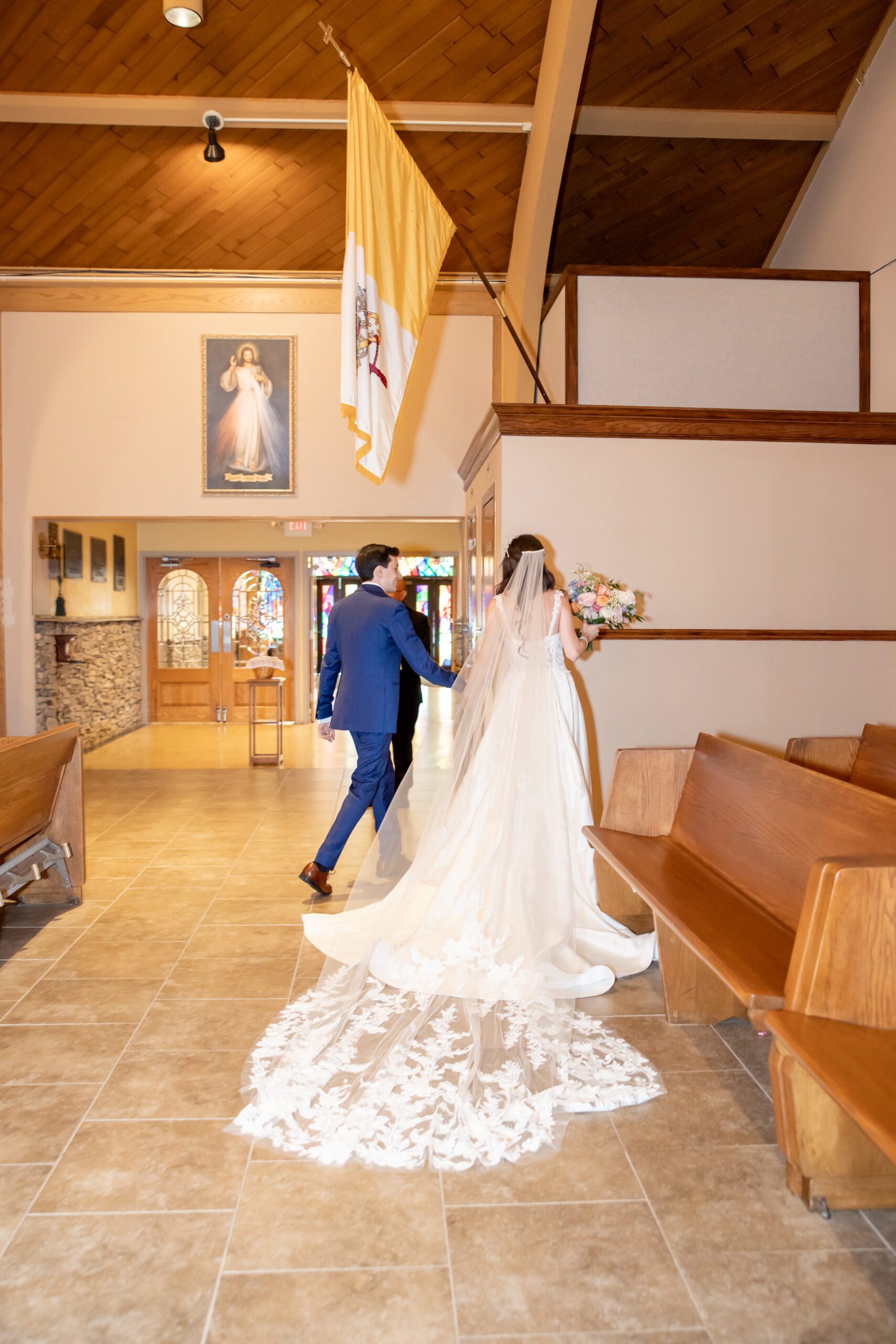 Everyone then made their way to their local church for the ceremony, where the space felt bright, welcoming, and full of anticipation. As Victoria walked down the aisle, Mike instantly teared up, overwhelmed with emotion. Her dad kissed her cheek before guiding her toward the man she was about to marry. They exchanged personal vows in front of family and friends, promising forever to one another. After sealing it with their first kiss, they walked back down the aisle hand in hand as husband and wife, smiling ear to ear.