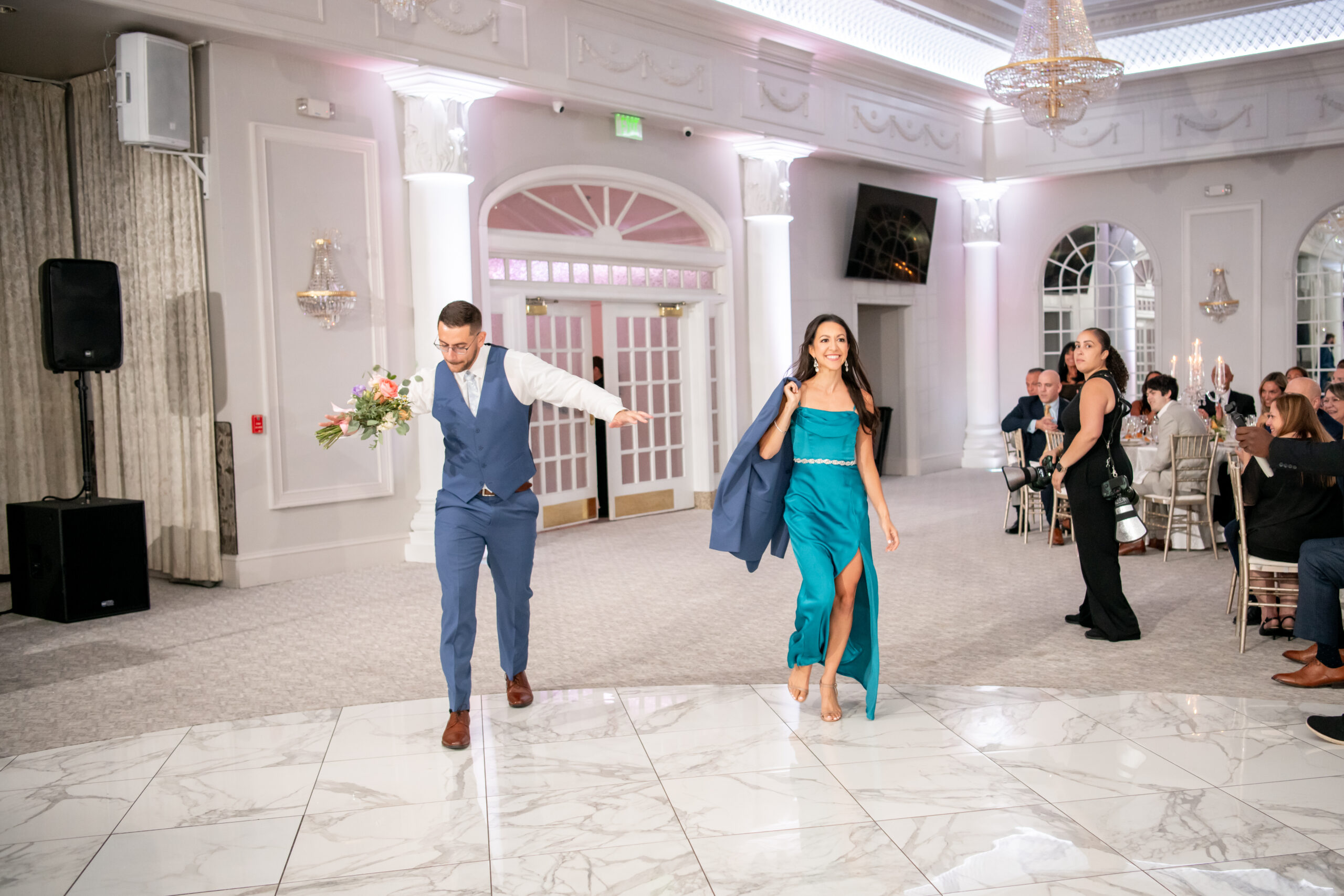 The bridal party made their grand entrance dancing and cheering, followed by the parents and then Victoria and Mike to huge applause. Their choreographed first dance was filled with twirls, dips, and a final lift and kiss that had everyone cheering. From that moment on, the dance floor stayed packed all night with laughter, heartfelt speeches, and nonstop celebration.