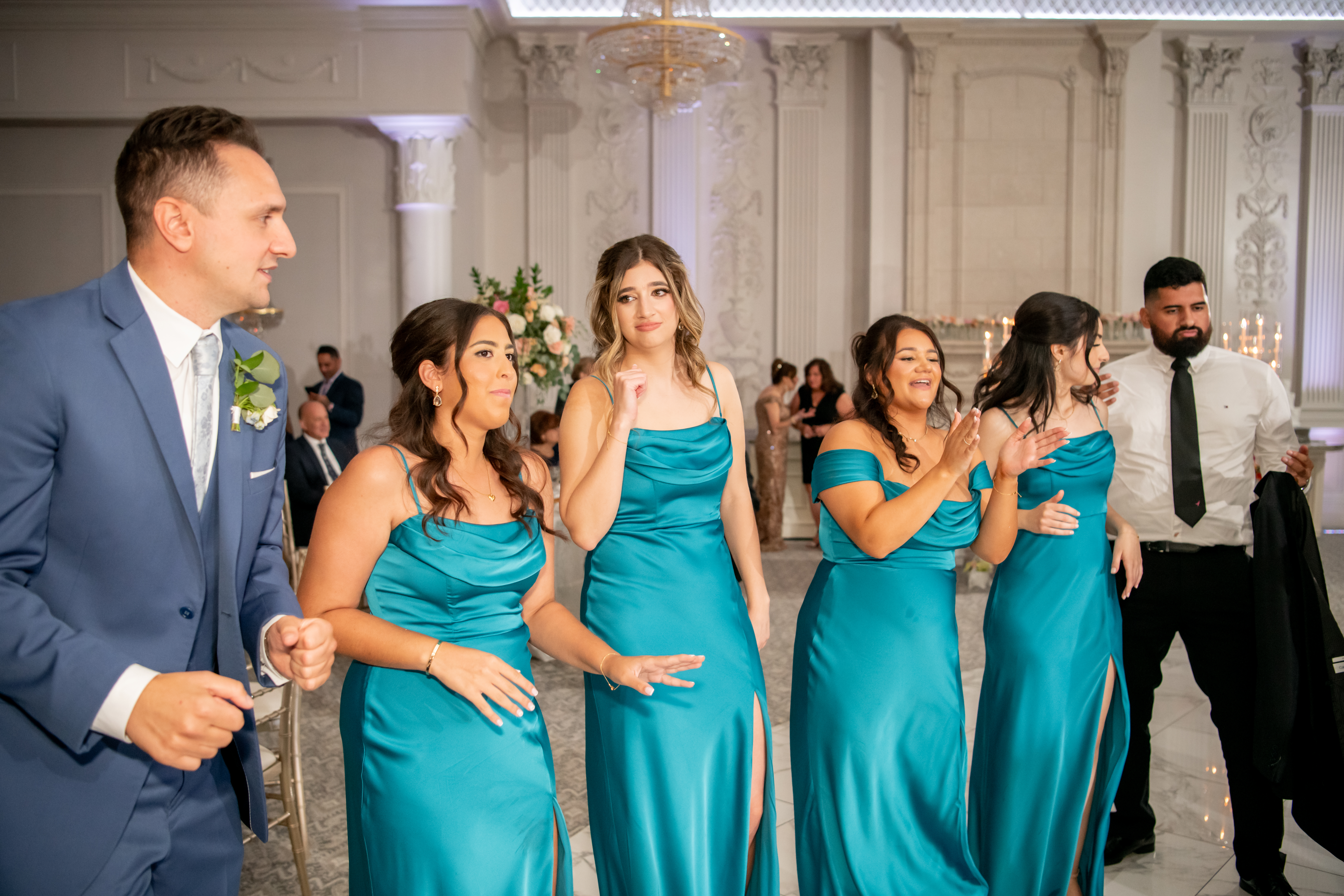 Next, it was time to bring in the bridal party, and the energy instantly skyrocketed. With nine bridesmaids and nine groomsmen, the group was full of excitement, laughter, and nonstop celebration. Every cheer was loud, every smile was bright, and every moment was filled with joy.