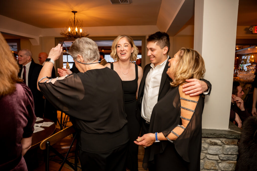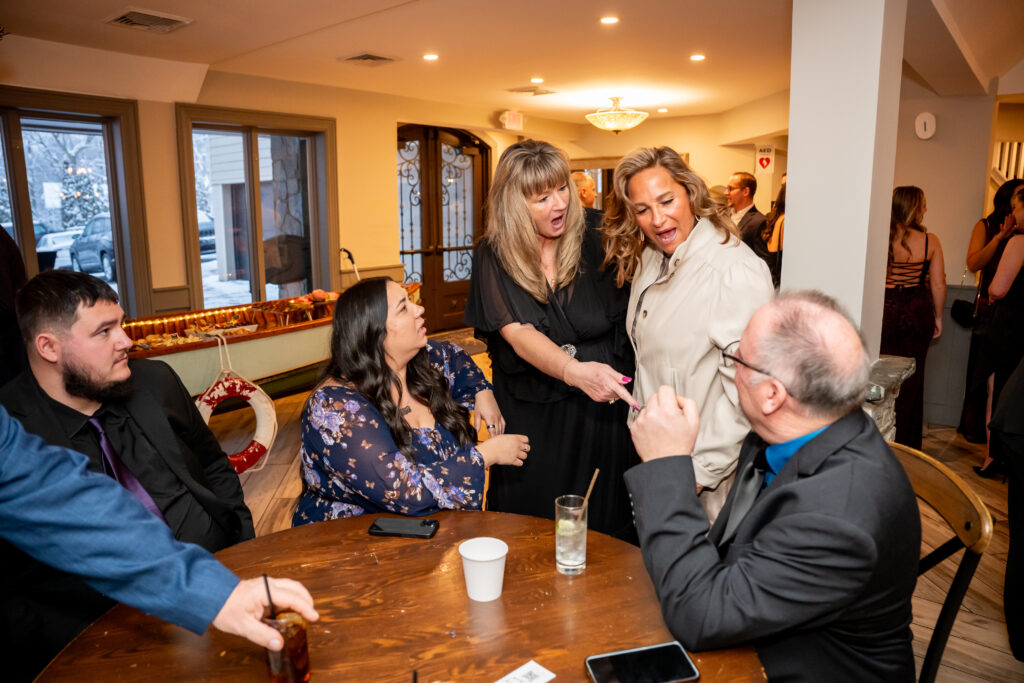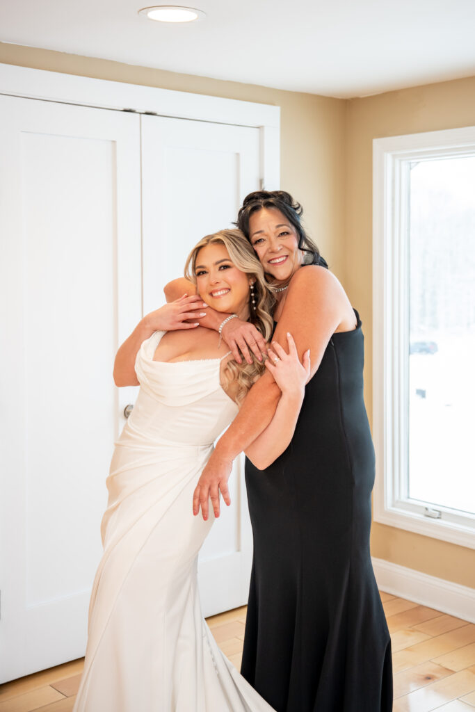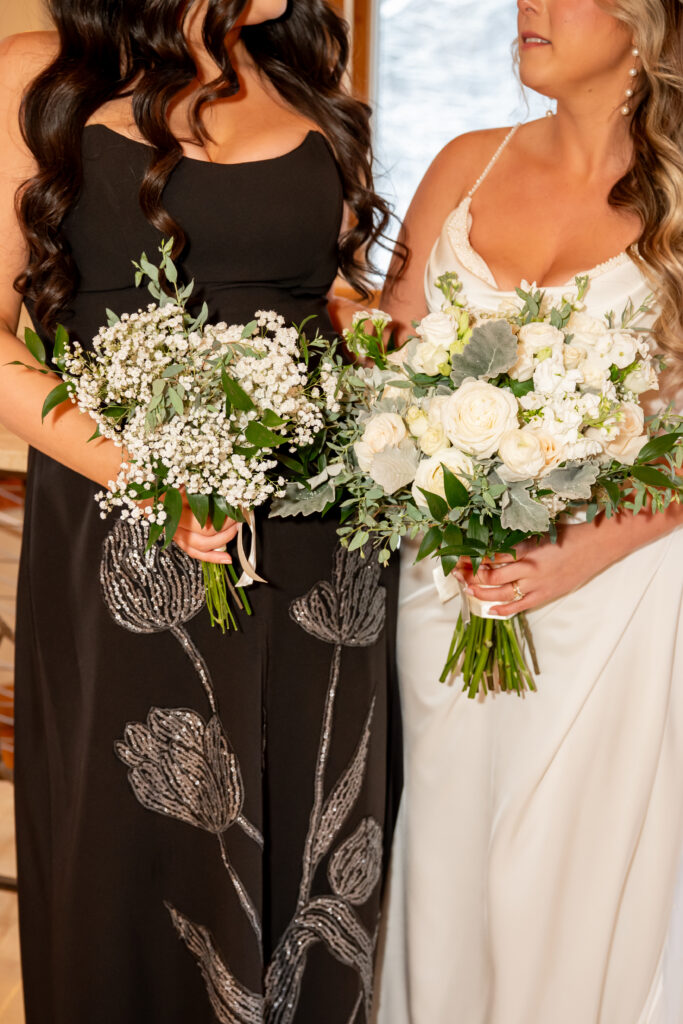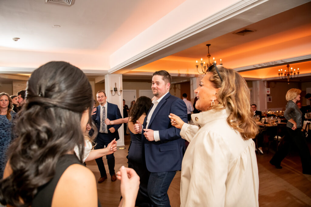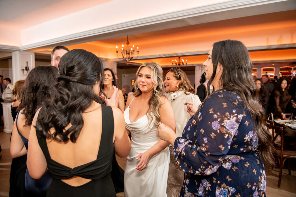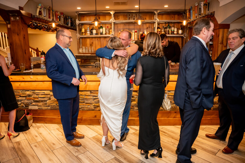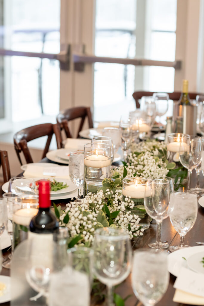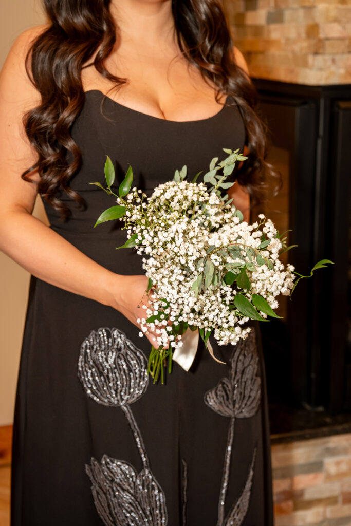 After braving the snow for photos, everyone headed inside to warm up and celebrate. The reception space felt inviting, glowing with soft lights, winter florals, and a cozy atmosphere that matched the season perfectly.