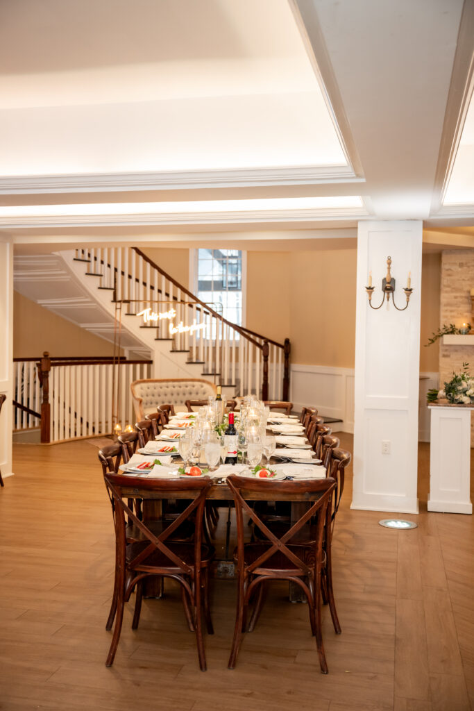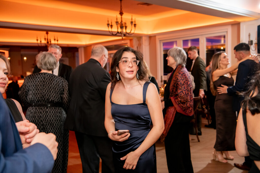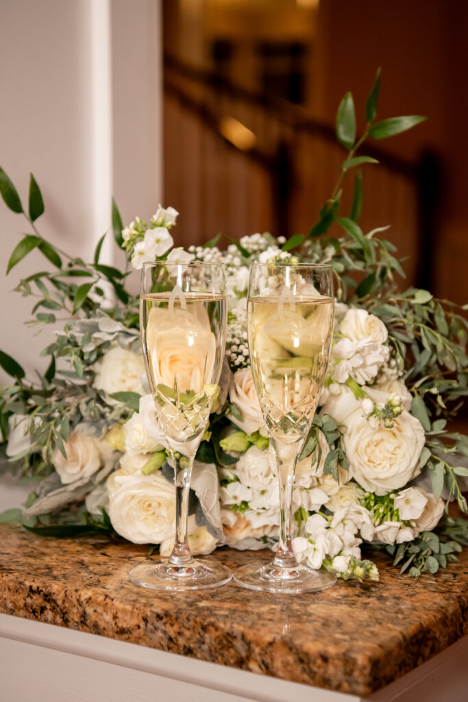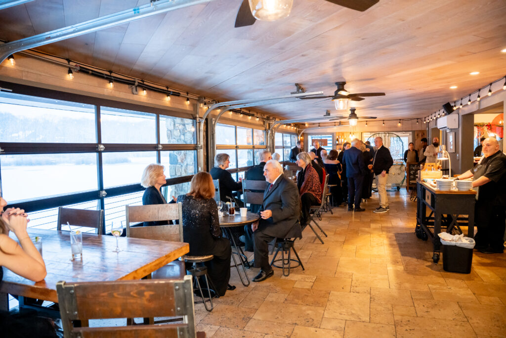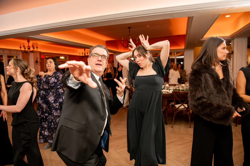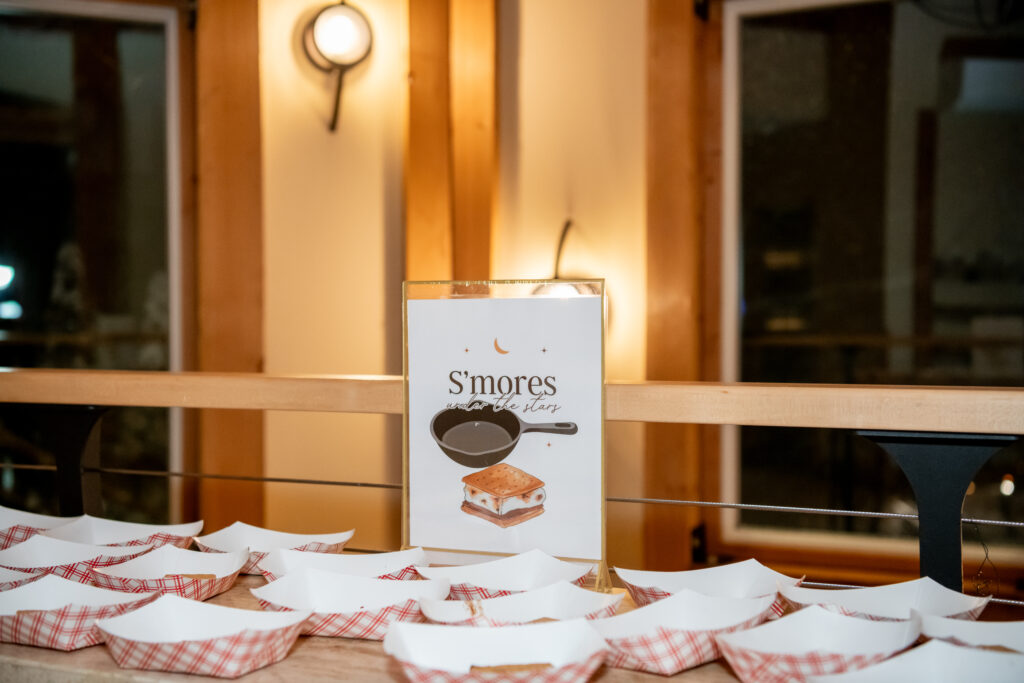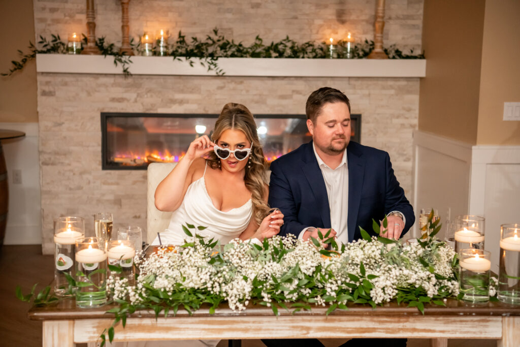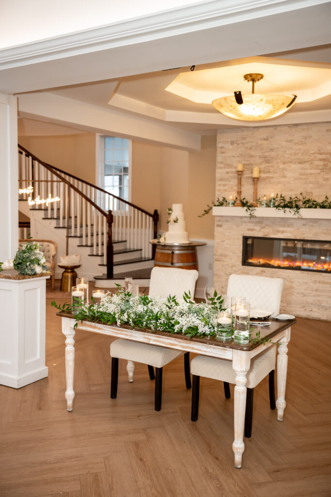 After braving the snow for photos, everyone headed inside to warm up and celebrate. The reception space felt inviting, glowing with soft lights, winter florals, and a cozy atmosphere that matched the season perfectly.