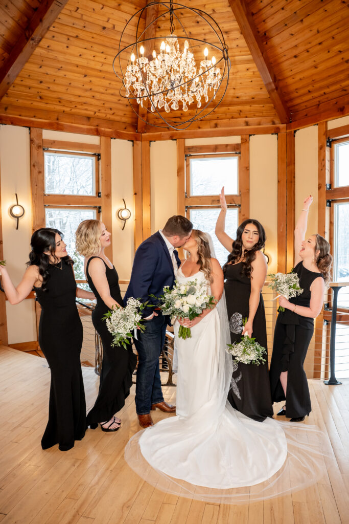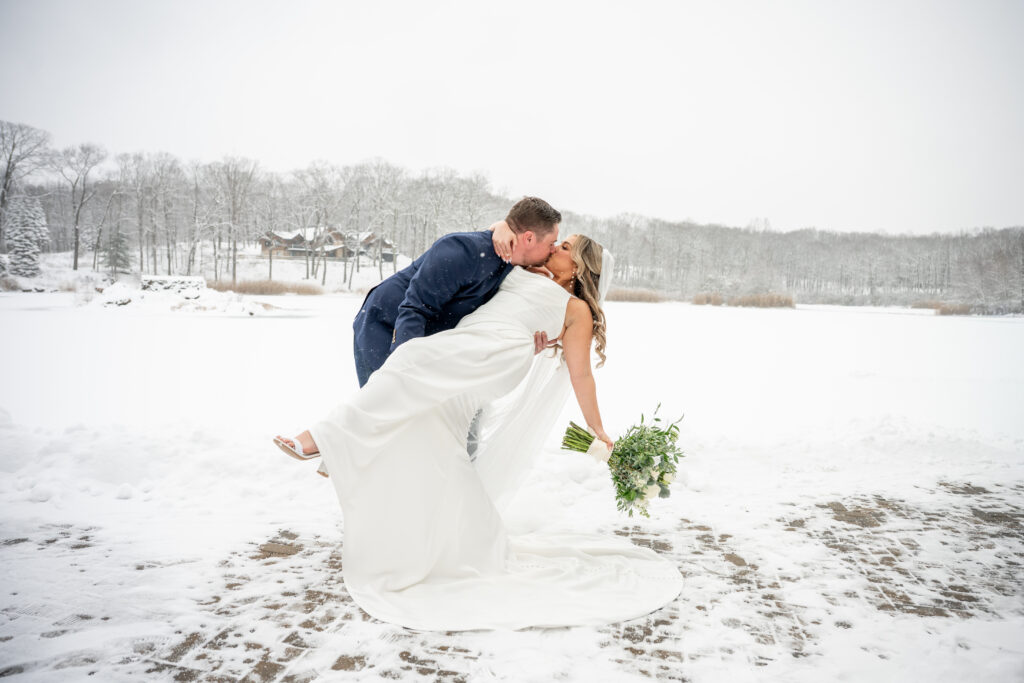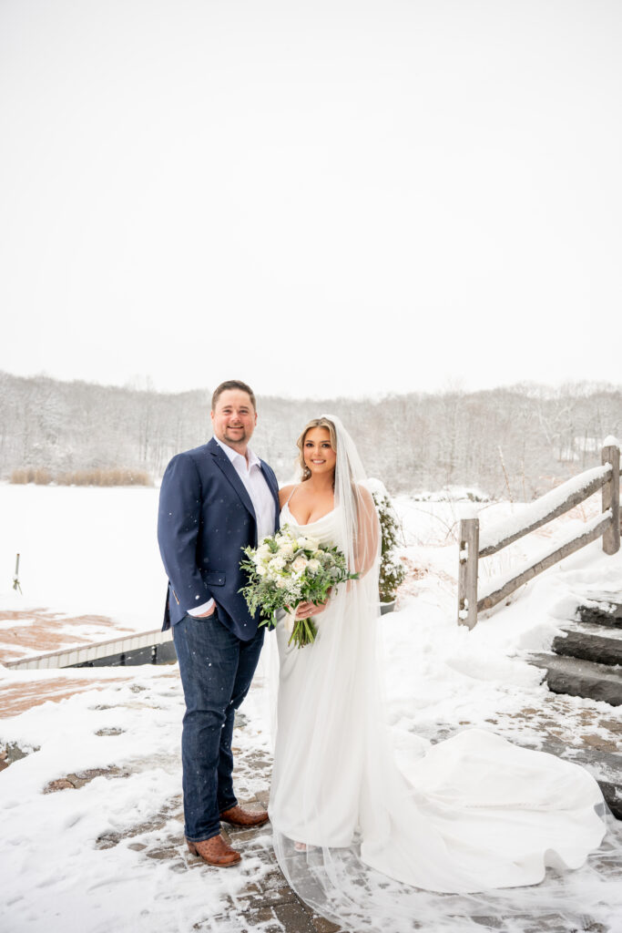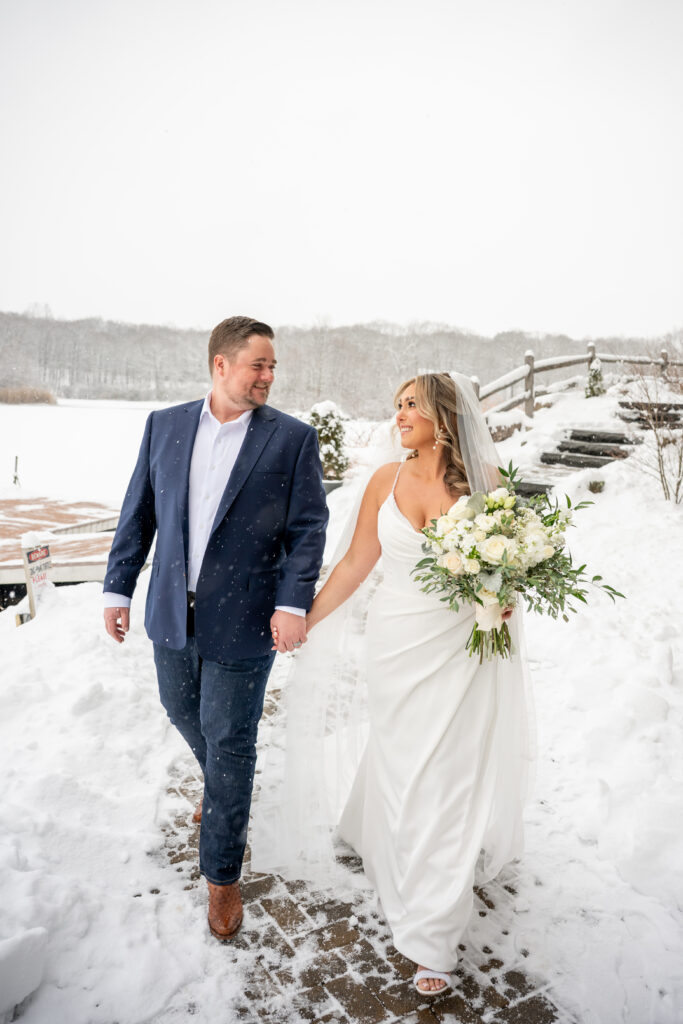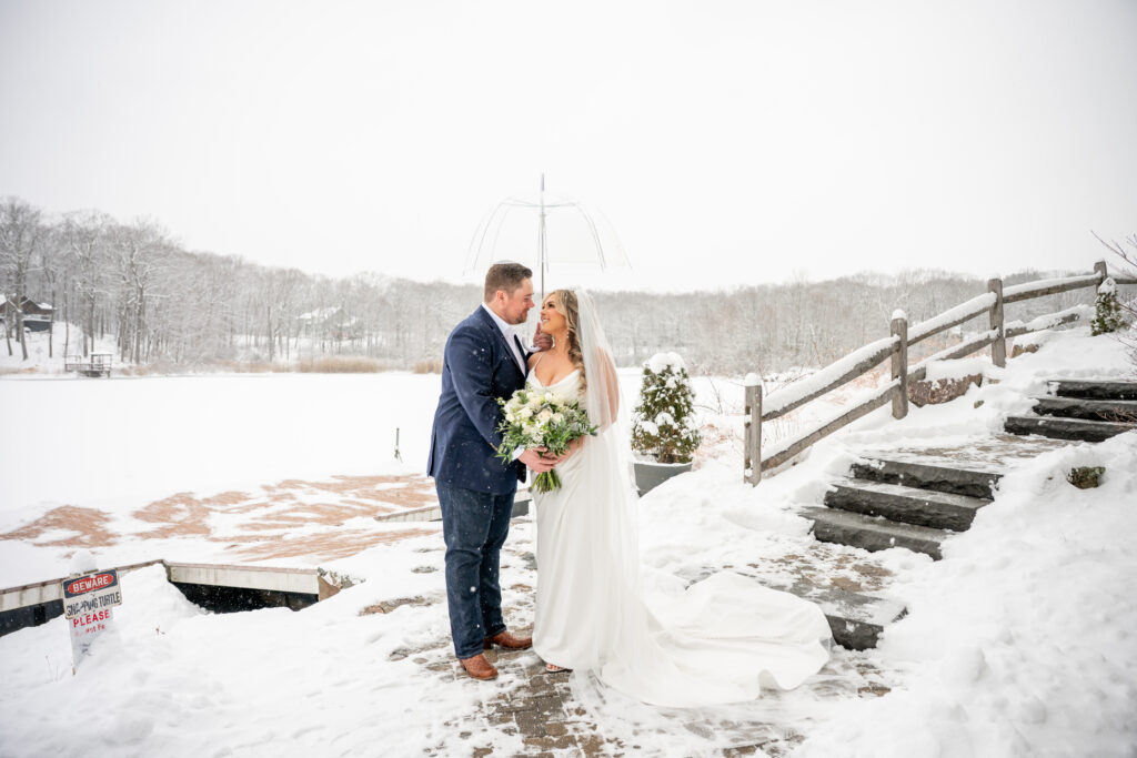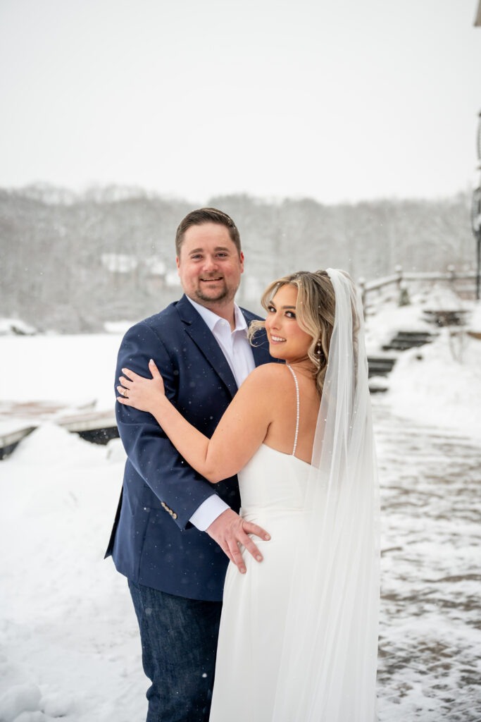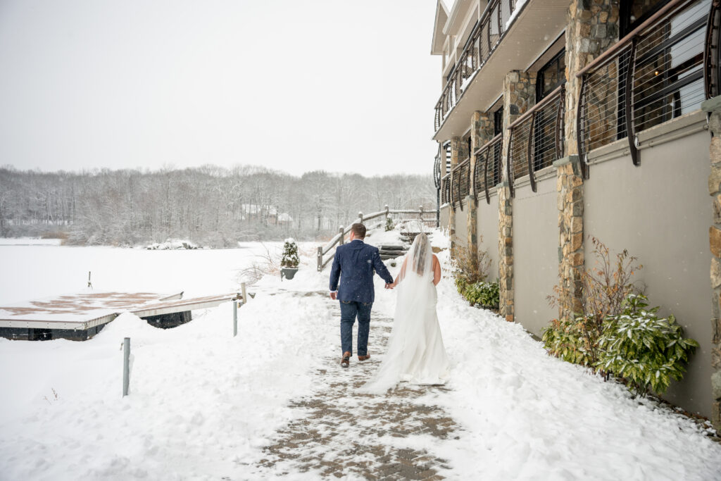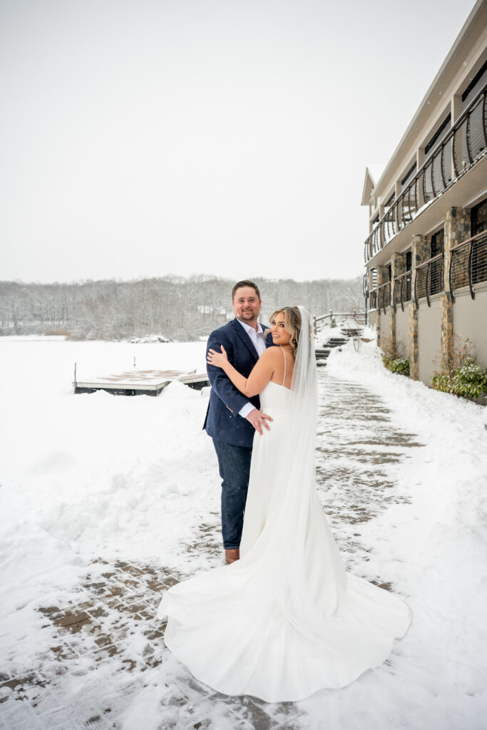One of the sweetest moments was watching them twirl together in the snow, holding hands and laughing as flakes landed softly in their hair and coats. Because of the snowfall, the entire property looked even more romantic than usual, with the lake, trees, and cozy lodge creating the perfect winter backdrop.